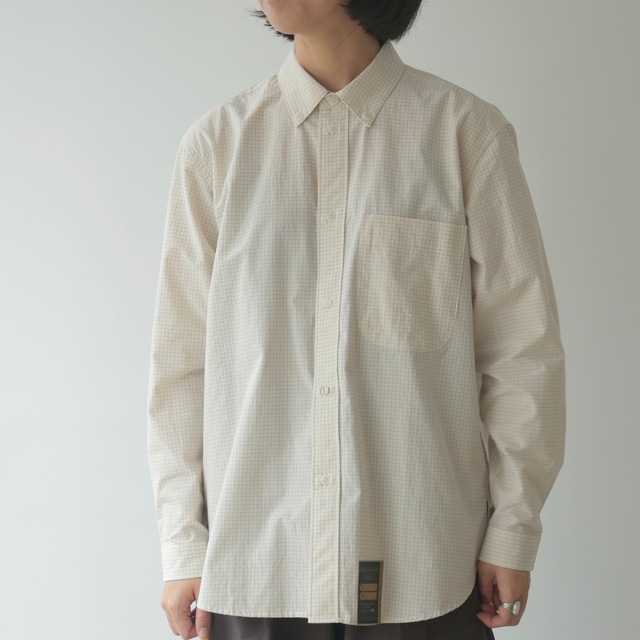 Handwerker ハンドベーカー 252611 ボタンダウンシャツ 10年以上にわたり定番として作り続けている、ベーシックなボタンダウンシャツ。 今季はサイズをわずかに見直し、より自然なシルエットに仕上げています。 第二ボタンを高めに設定することで、開けて着てもだらしなく見えず、 きちんと留めても、少し開けて抜け感を出しても。 タートルネックを重ねてもバランスの良いデザインです。 胸元のポケットはやや大きめに。 その内側には仕切り付きのインポケットを隠し、 ペンや小物を入れられる実用的なディテールを加えています。 柔らかなアイボリーの色味に上品なチェック柄。 生地には独特の凹凸感を表現する洗い加工を施し、 緯糸にボイル糸を用いることでさらりとしたシャリ感のある風合いに仕上げています。 デニムやチノパンツと合わせたスタンダードな着こなしはもちろん、 スカートやボリュームのあるパンツとも好相性。 上からカーディガンやアウターも羽織りやすく、 季節を越えて長く着ていただける一枚です。 【サイズ】S 身幅 57cm 着丈 72/76cm 肩幅 46cm 袖丈 57cm 着用モデル165cm (ユニセックスアイテムとなります) 【素材】コットン100% 【カラー】オフホワイト ——————————— Handwerker(ハンドベーカー) は、ASEEDONCLOUD が展開するワークウェアラインです。ブランド名はドイツ語で「職人」を意味し、日々の暮らしに寄り添う“道具としての服”をテーマにしています。 普遍的で長く愛用できるデザインを大切にし、素材には耐久性と快適さを兼ね備えた上質な生地を採用。シンプルで機能的なディテールは、働く人の姿を想起させつつ、現代の日常着としても自然に馴染みます。 ジャケットやシャツ、パンツなど、どのアイテムも着る人の生活を支えるパートナーのような存在。ユニセックスで楽しめるワークウェアとして、性別や体型を問わず幅広い方に愉しまれているブランドです。