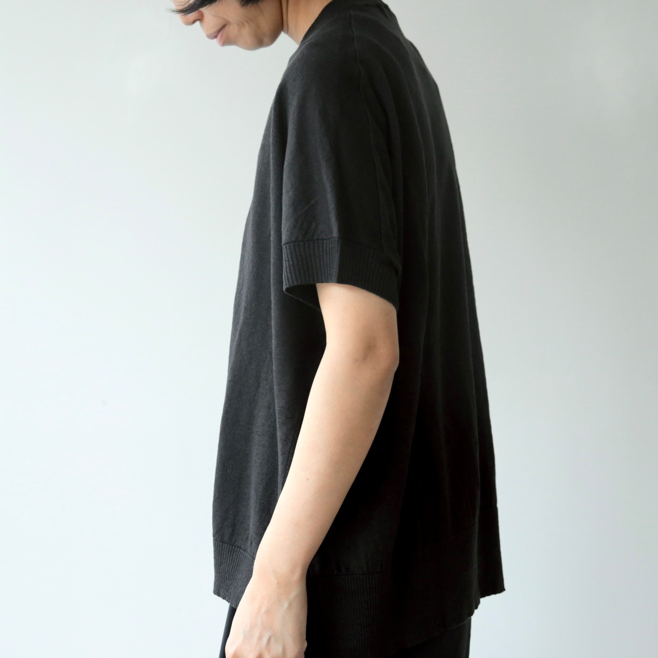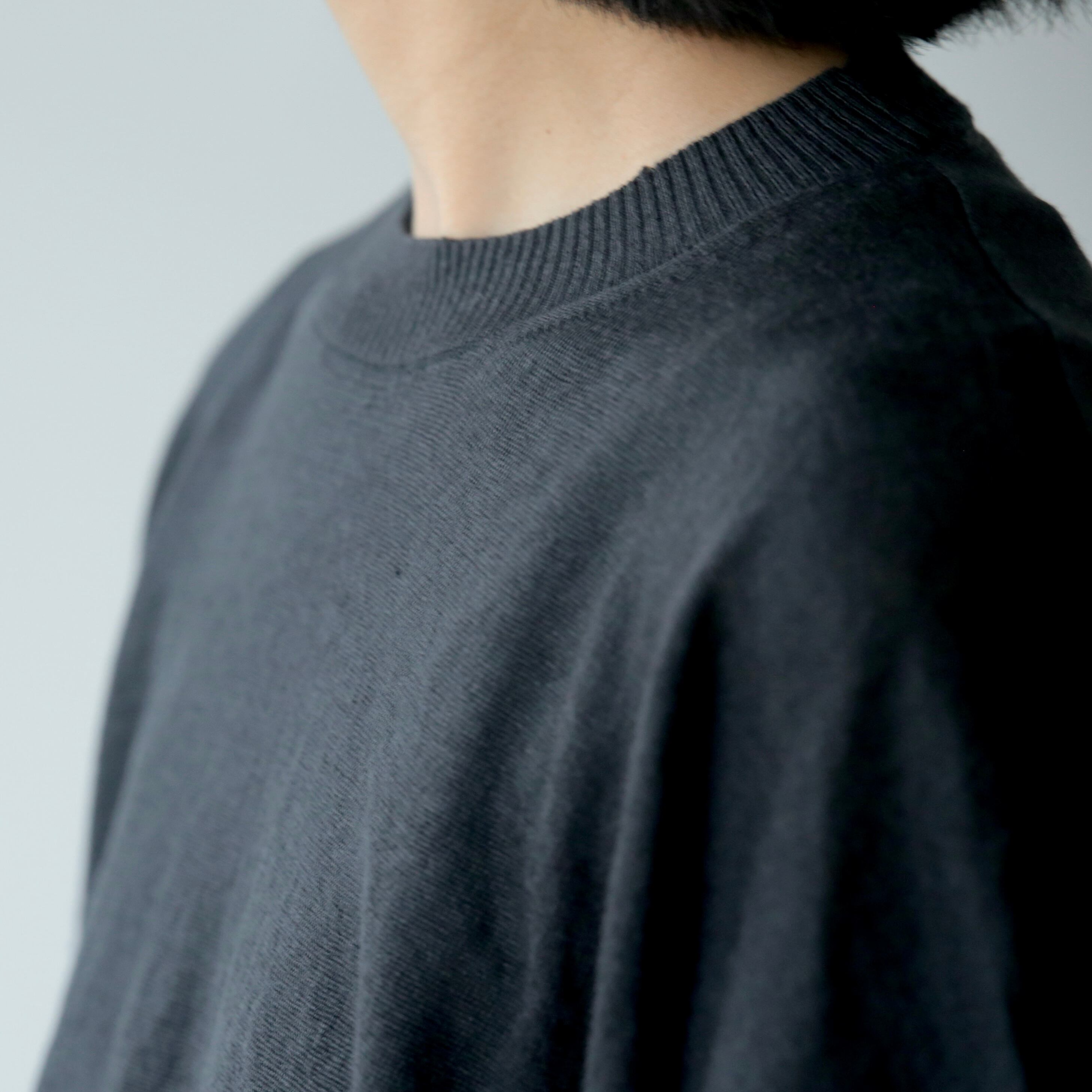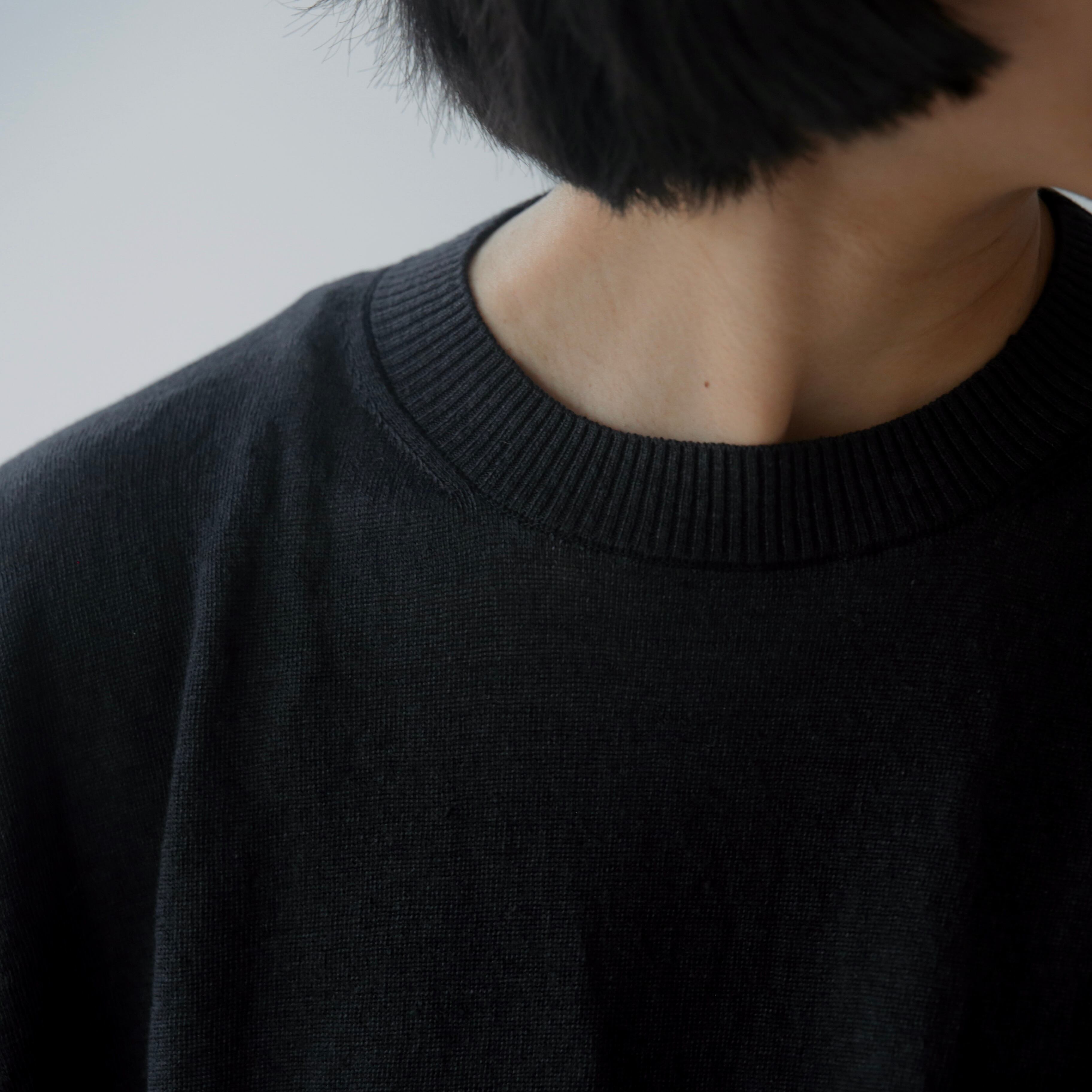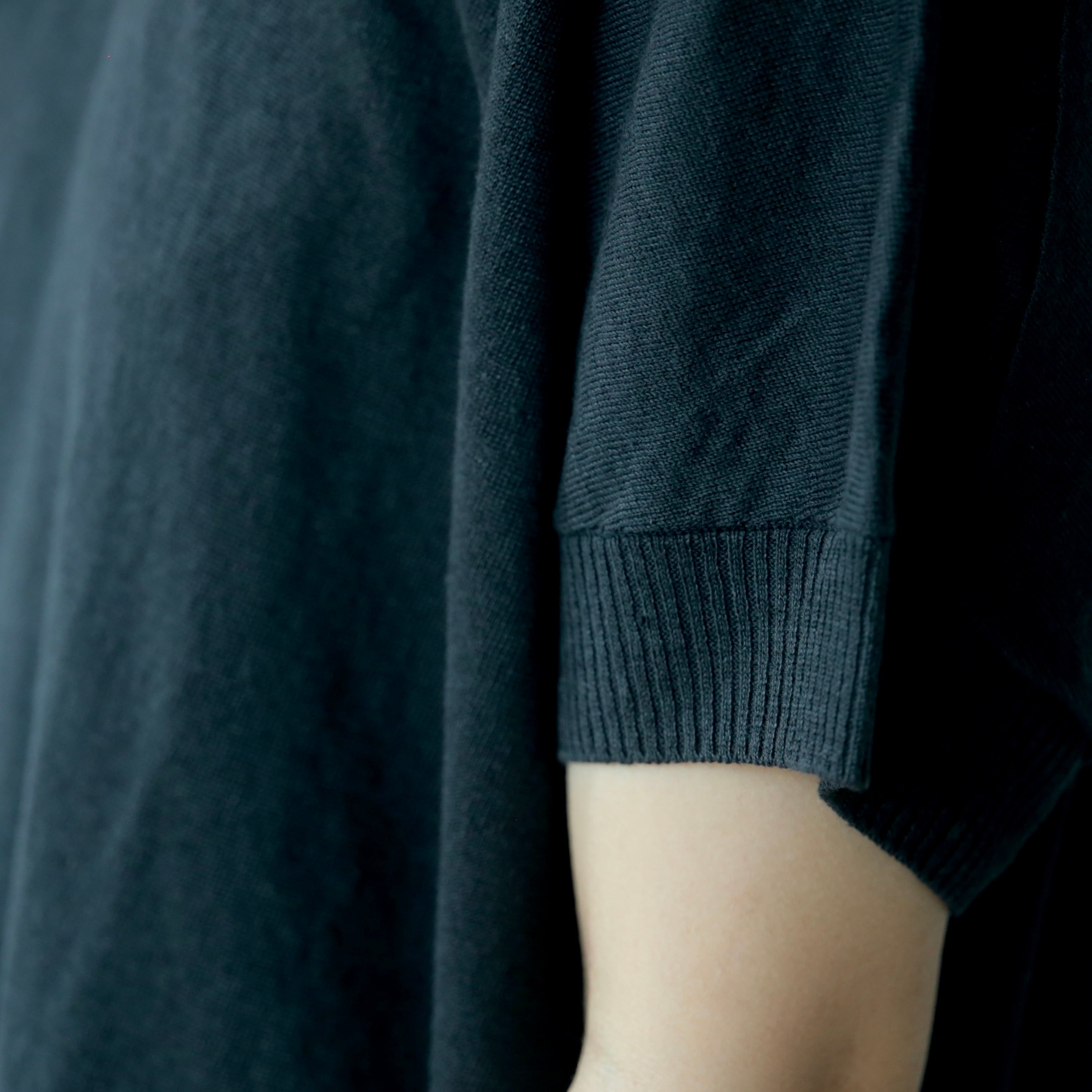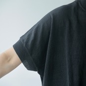 ややドロップした肩のラインと、袖口から裾にかけて施されたリブの切り替えが、さりげないアクセントに。肩まわりや腕を自然にカバーしてくれる絶妙な袖丈は、安心感がありながらも見た目に重さを感じさせることなく着て頂けます。
