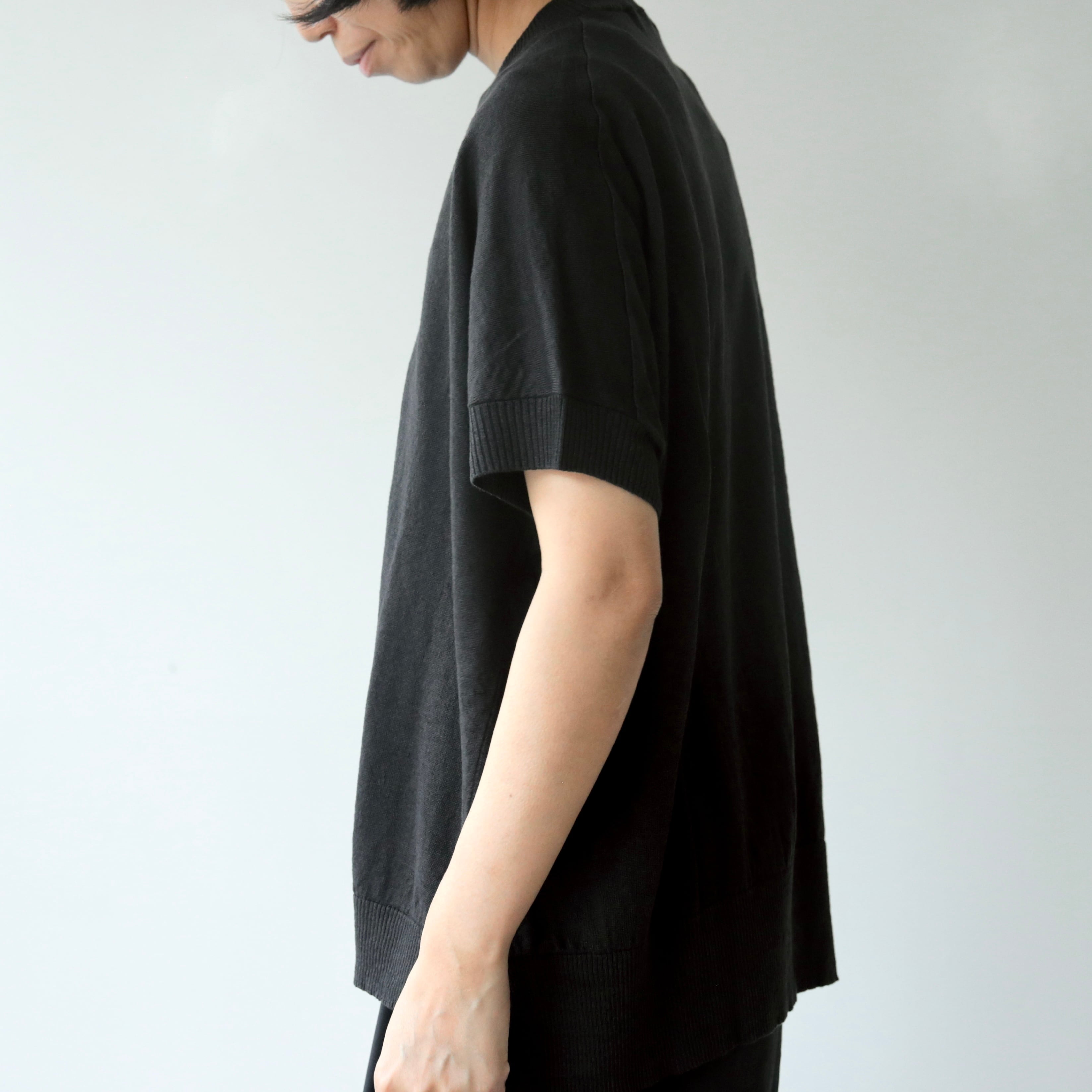 フランス・ノルマンディー地方の上質なリネンを、丁寧に揉み込むことで引き出された、柔らかでしなやかな風合いのリネンニット。薄手で通気性に優れた生地は、リネン特有のさらりとした肌ざわりが心地よく、盛夏にも軽やかに、涼やかな印象です。