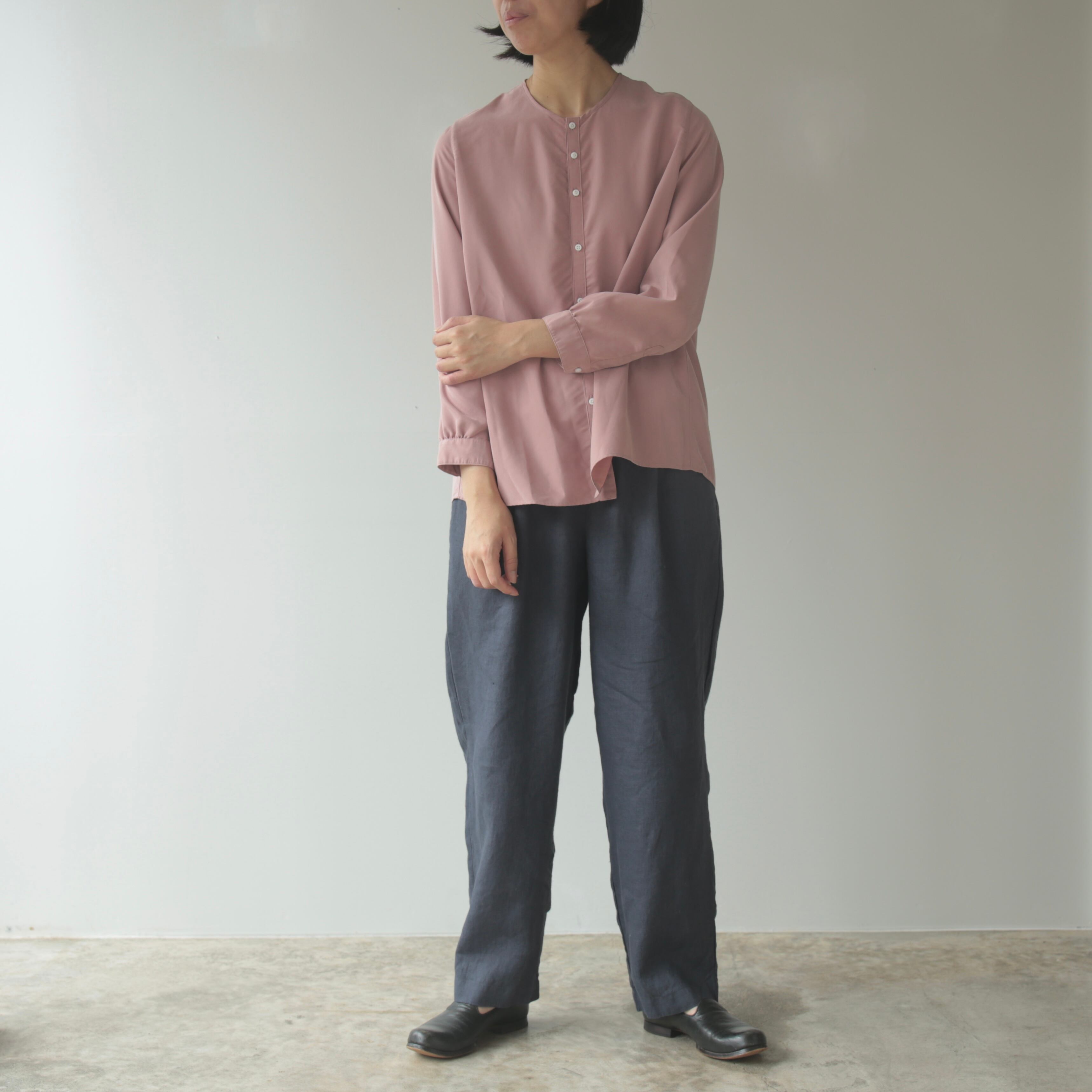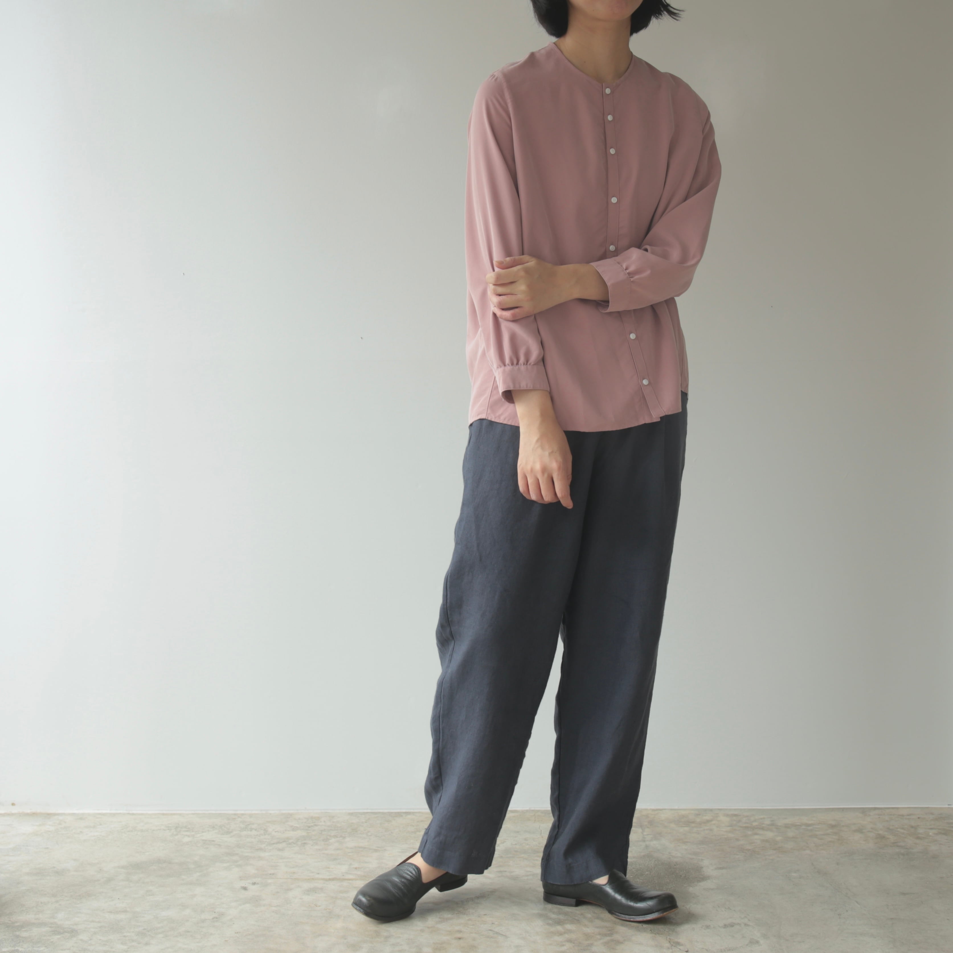 ポリエステルとの混紡により、扱いやすさやイージーケア性も兼ね備えており、毎日の装いに気負いなく取り入れていただける一枚です。身幅にはゆとりをもたせながらも、全体はすっきりとしたシルエットに。小さめの襟がほどよくアクセントになり、シャツ特有のかたさを感じさせません。