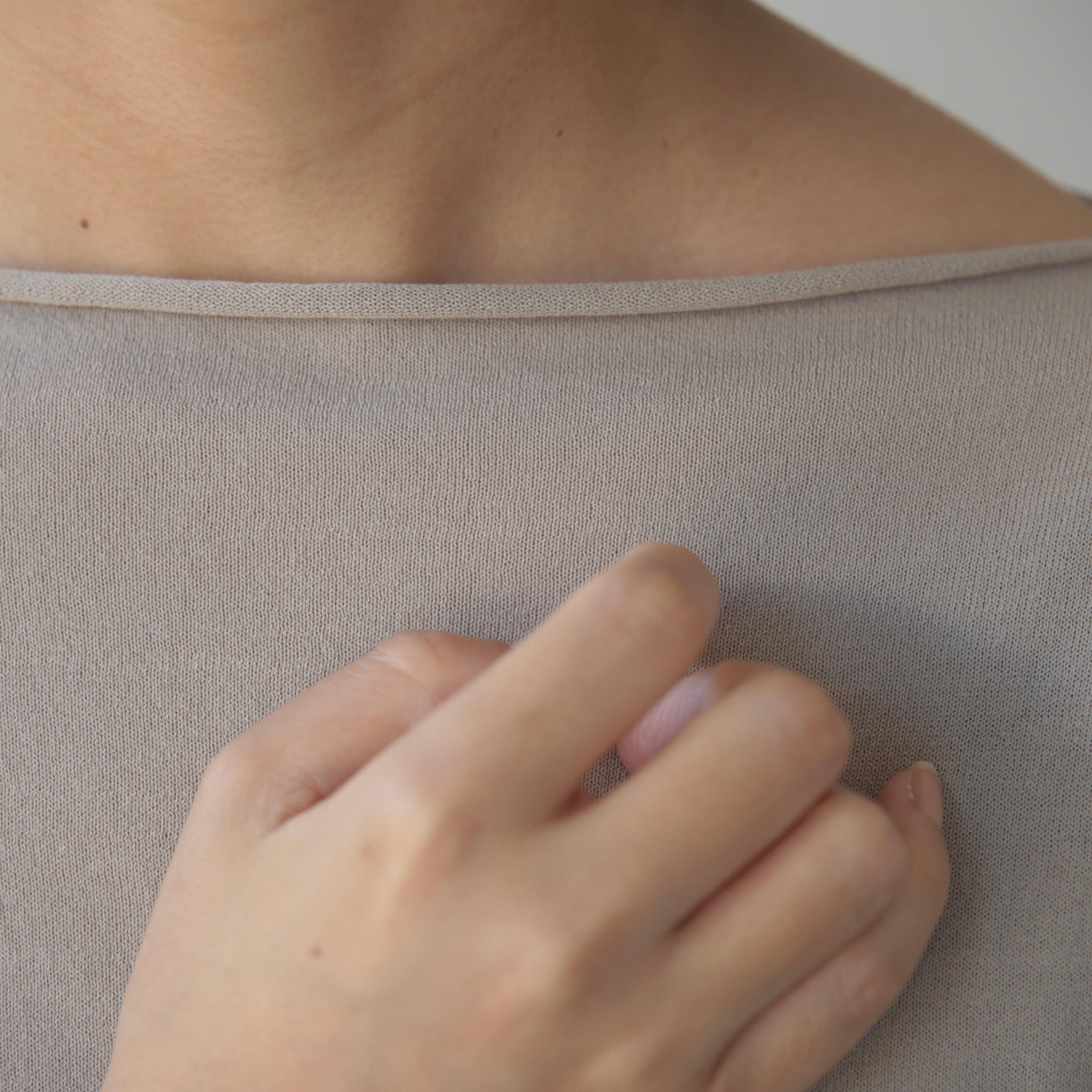 超長綿を使用した薄手のニットは、やさしい肌触りとさらりとした質感。