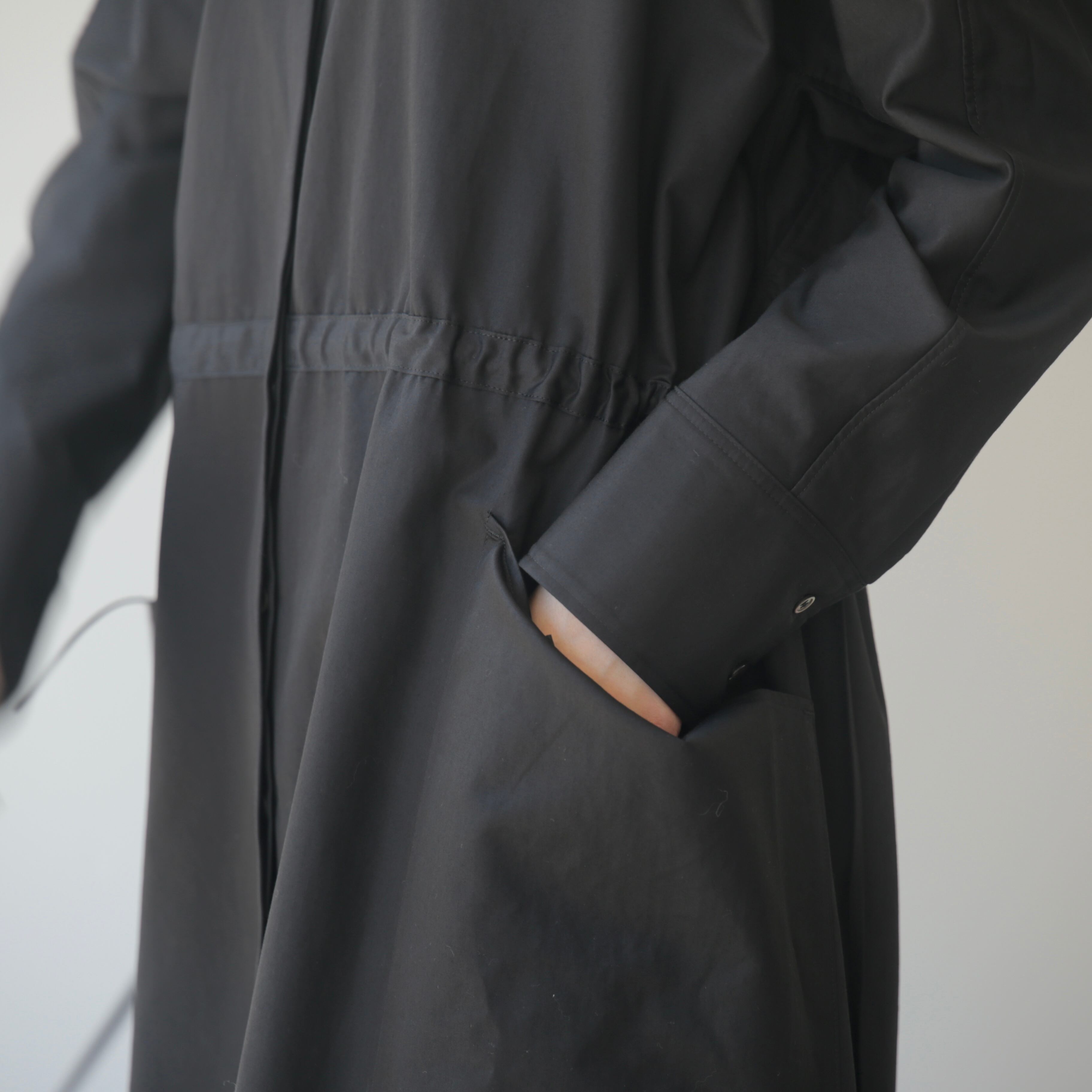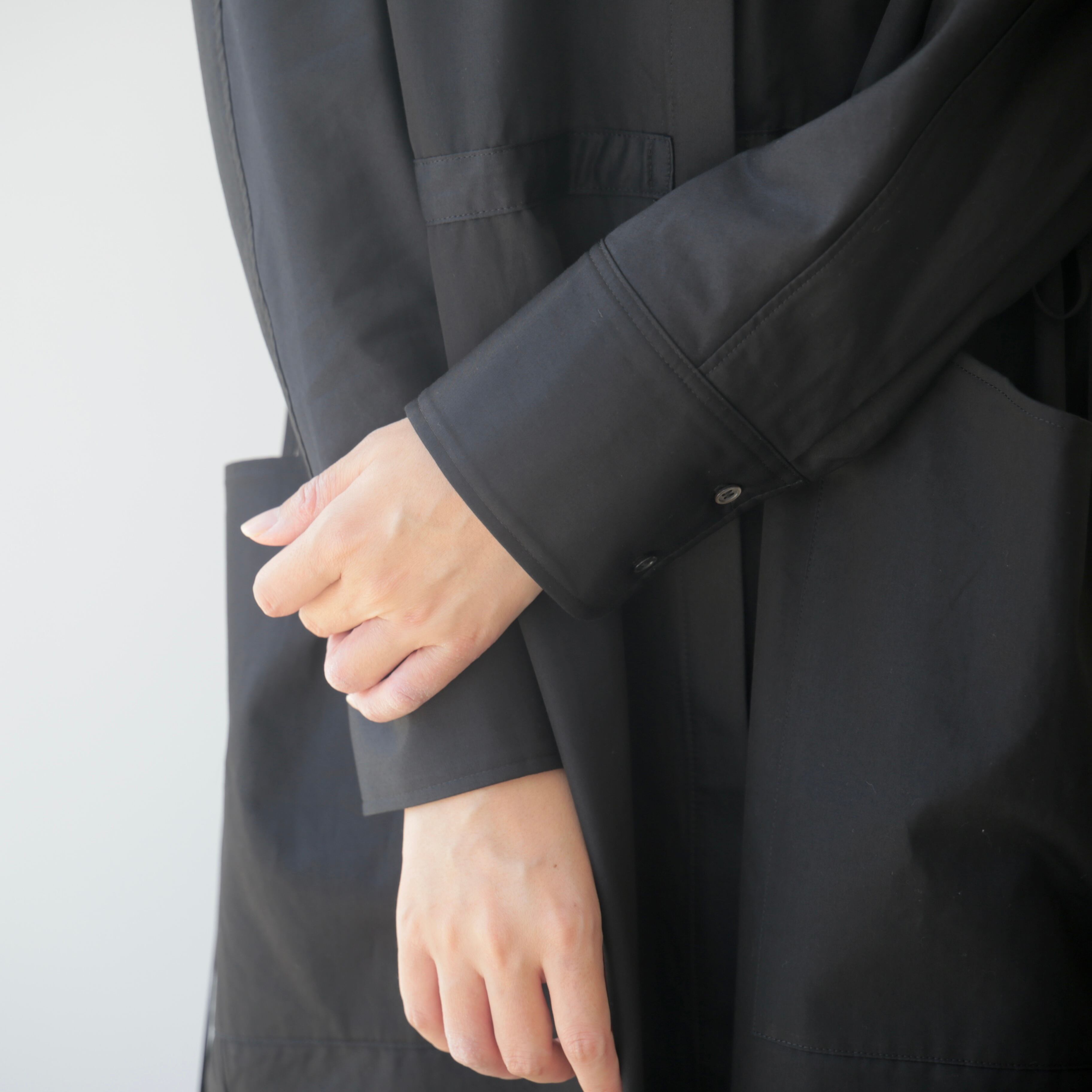 前開きは比翼仕立てで、控えめなボタンが上品な印象に。大きめのポケットやサイドのリボンには可愛らしさとブランドらしさが詰まっています。