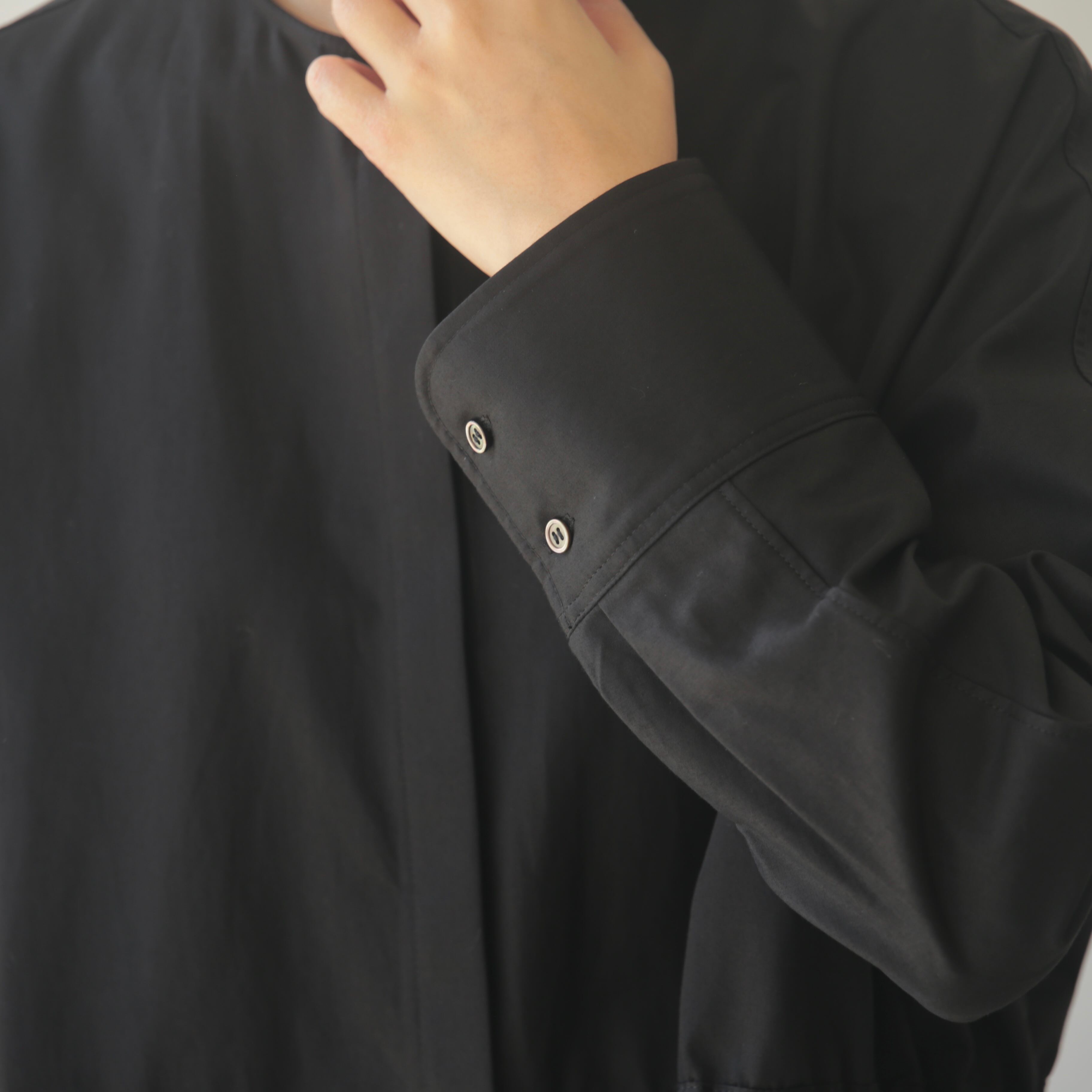 袖には切り替えが入っており、腕を通すと自然な立体感が生まれる仕様に。