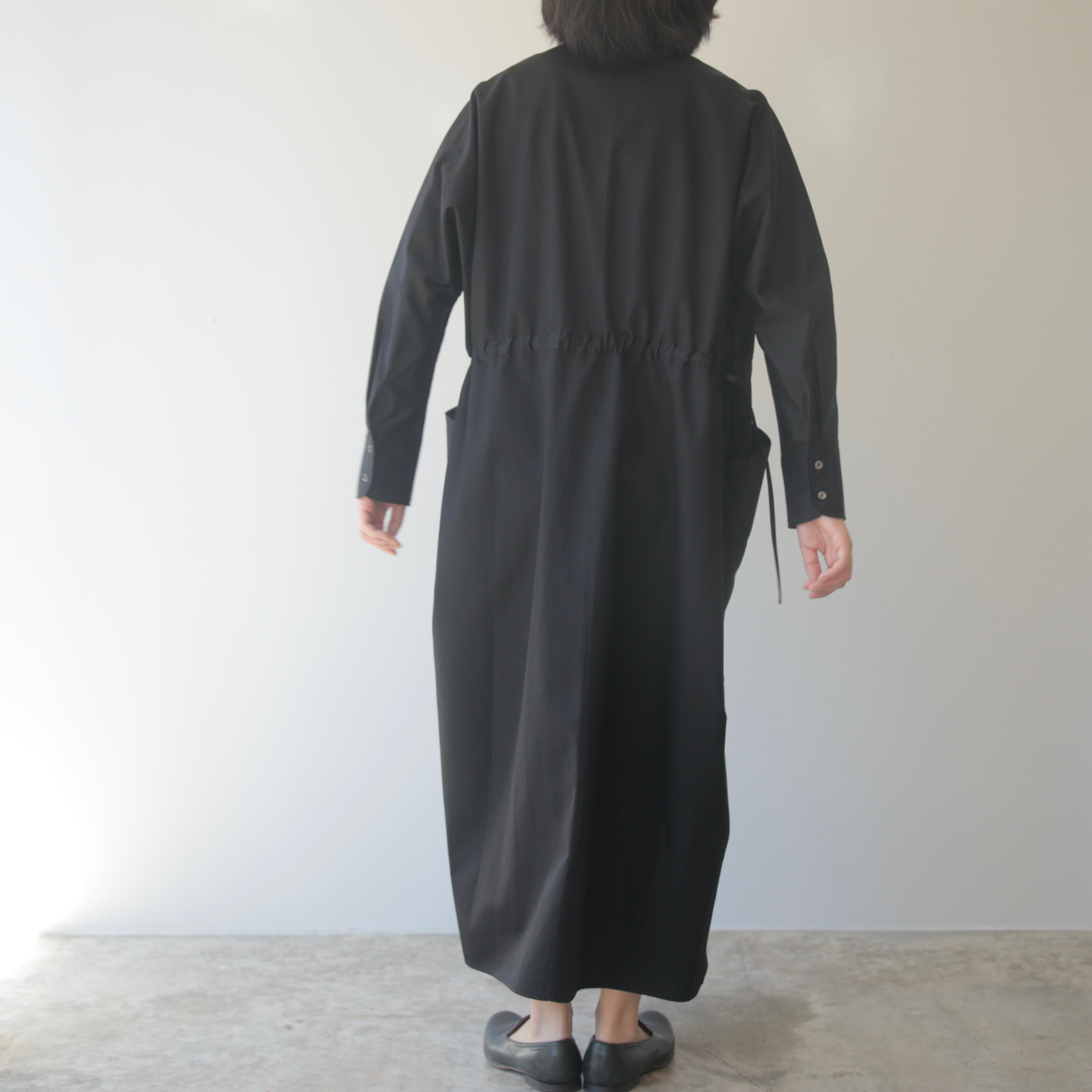 光沢と滑らかさのあるコットンで仕立てた、新作のドローストリングワンピース。