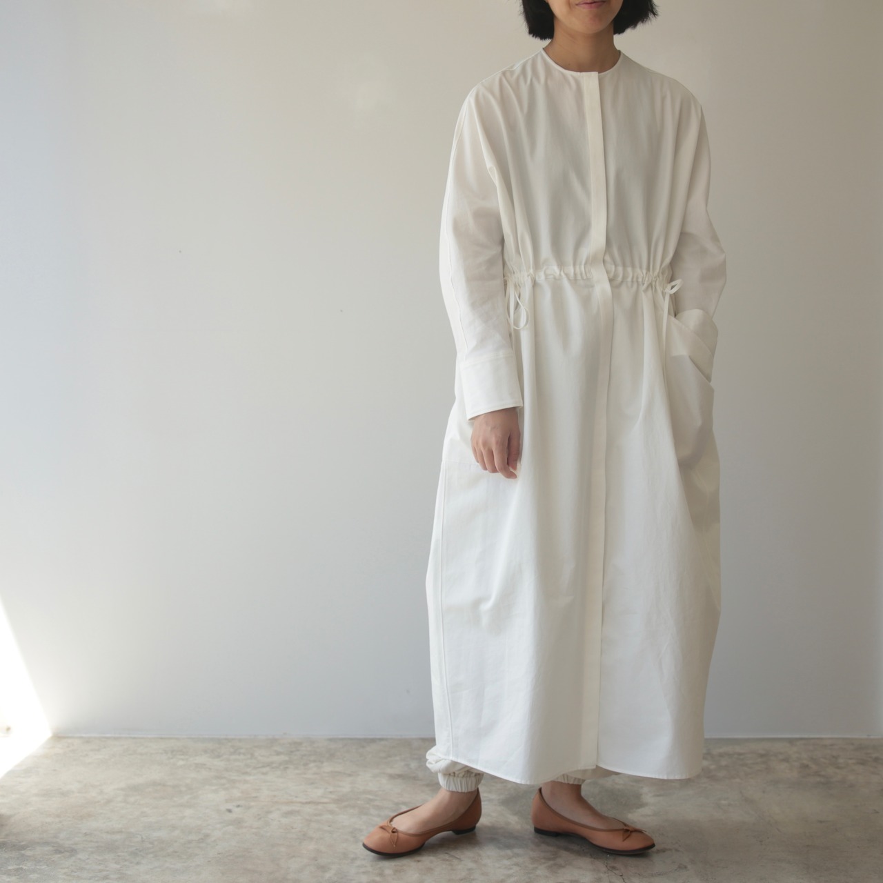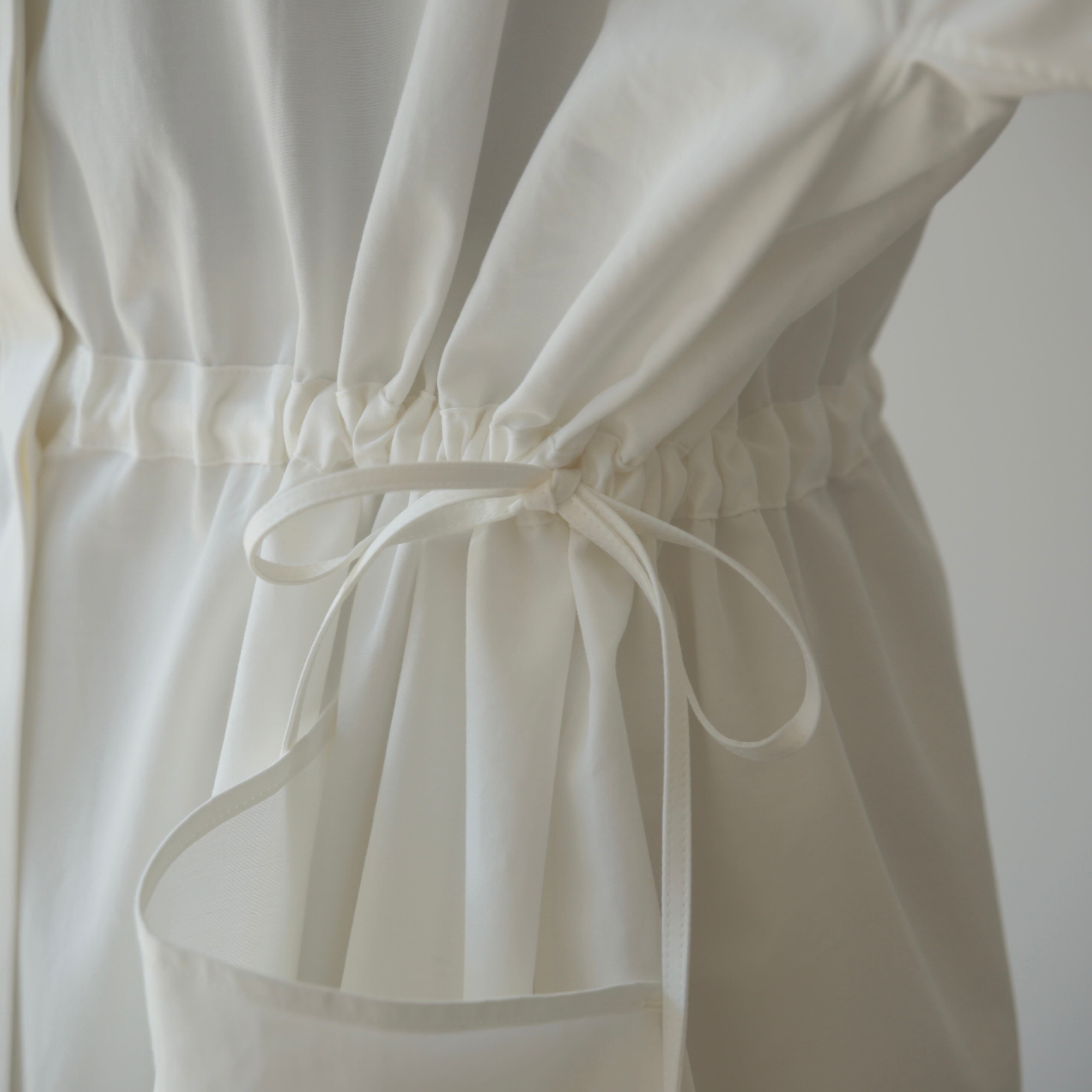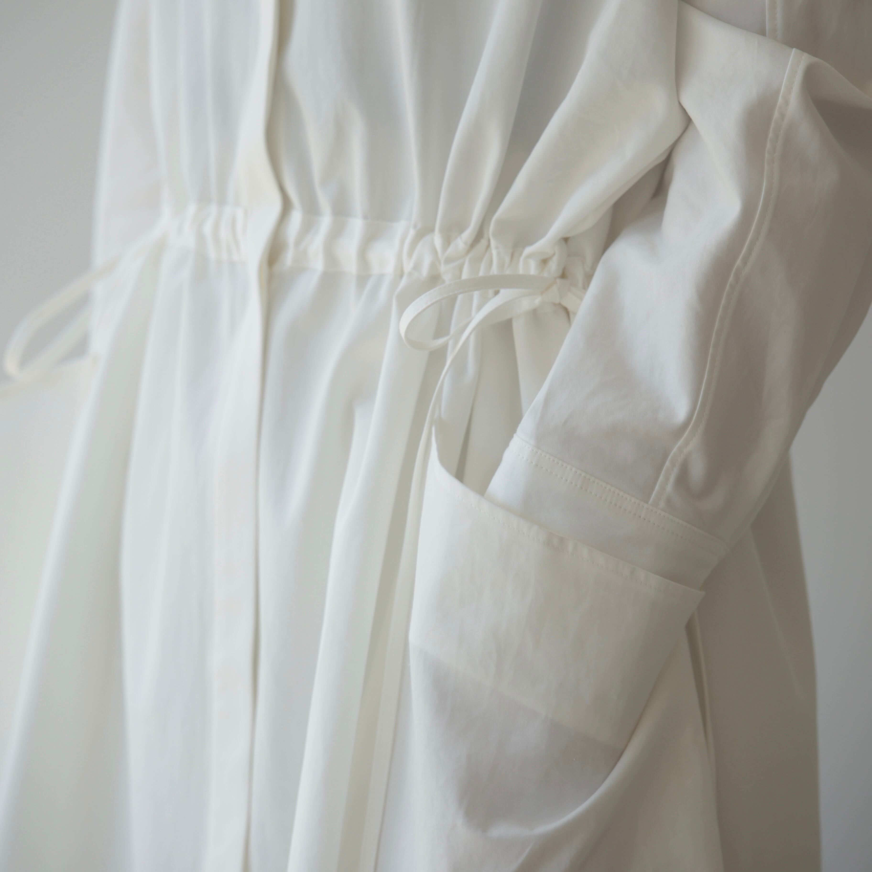 光沢と滑らかさのあるコットンで仕立てた、新作のドローストリングワンピース。