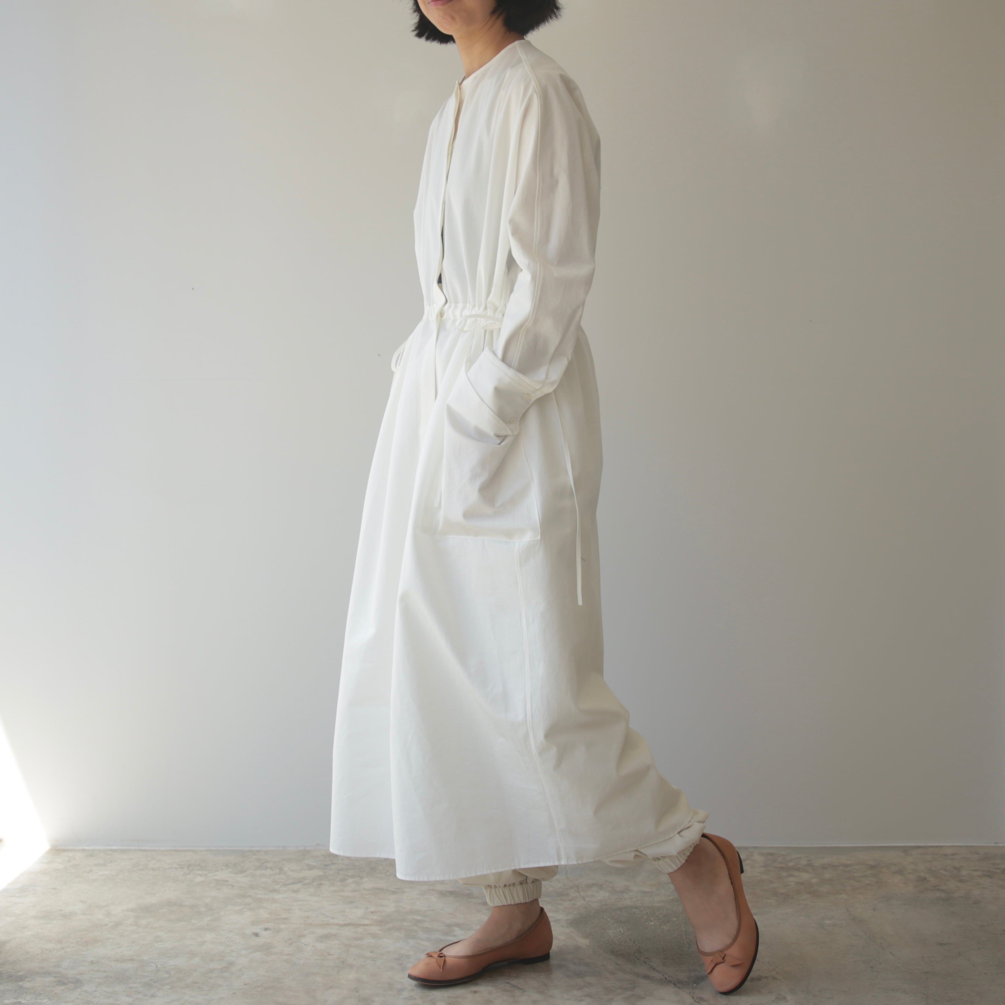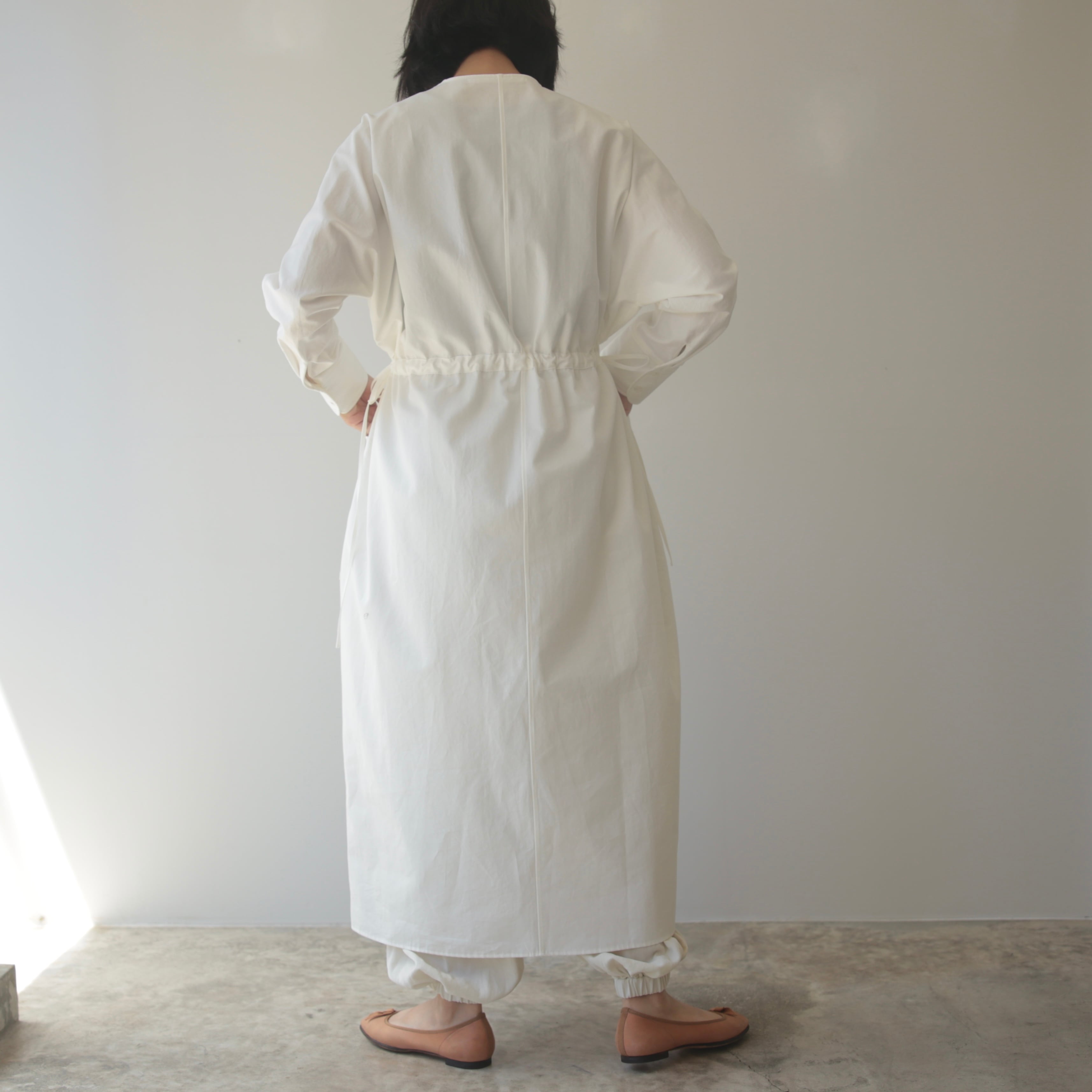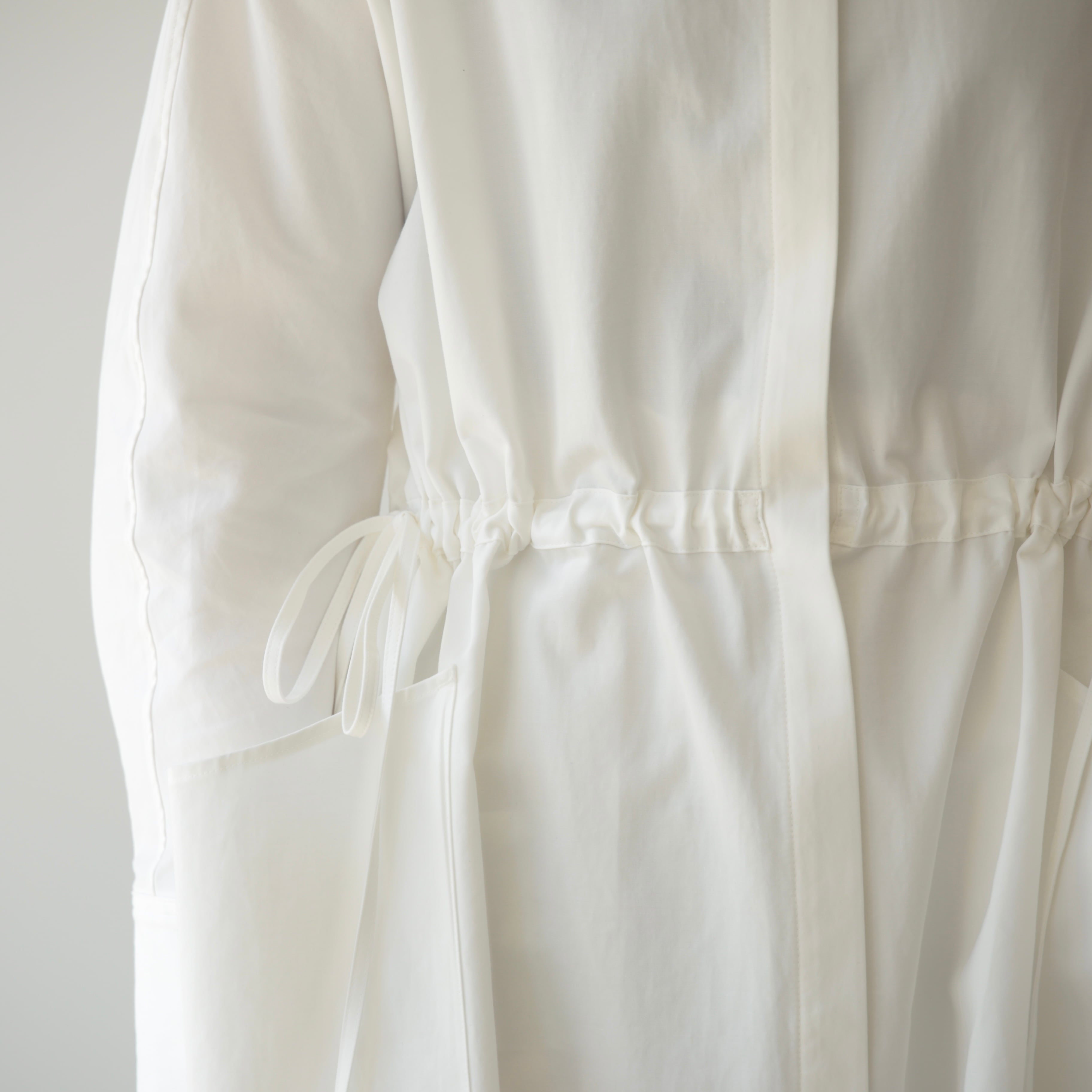 光沢と滑らかさのあるコットンで仕立てた、新作のドローストリングワンピース。