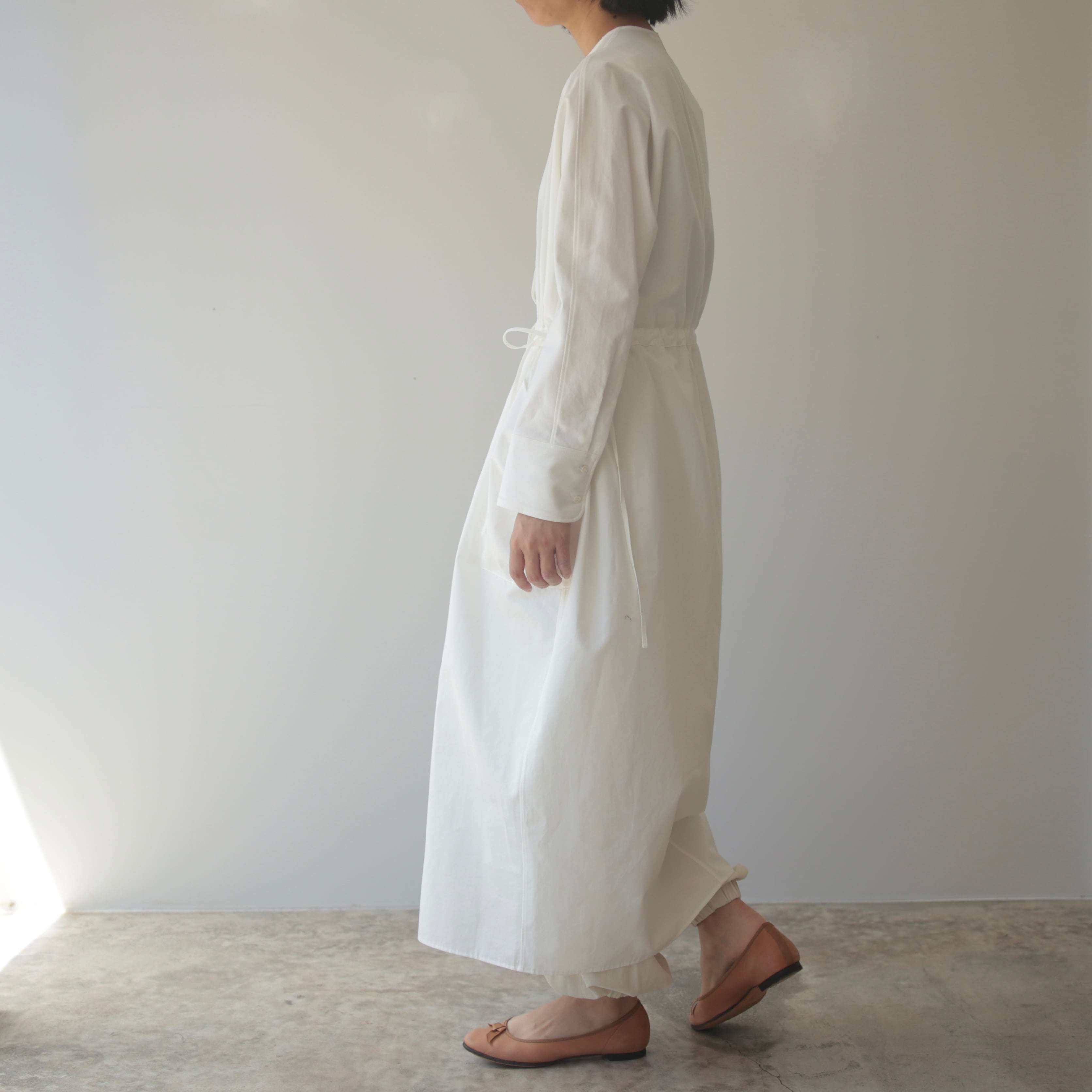 ウエストの紐を絞ることで、ふんわりと広がるシルエットからすっきりとしたラインまで、自在にアレンジできます。