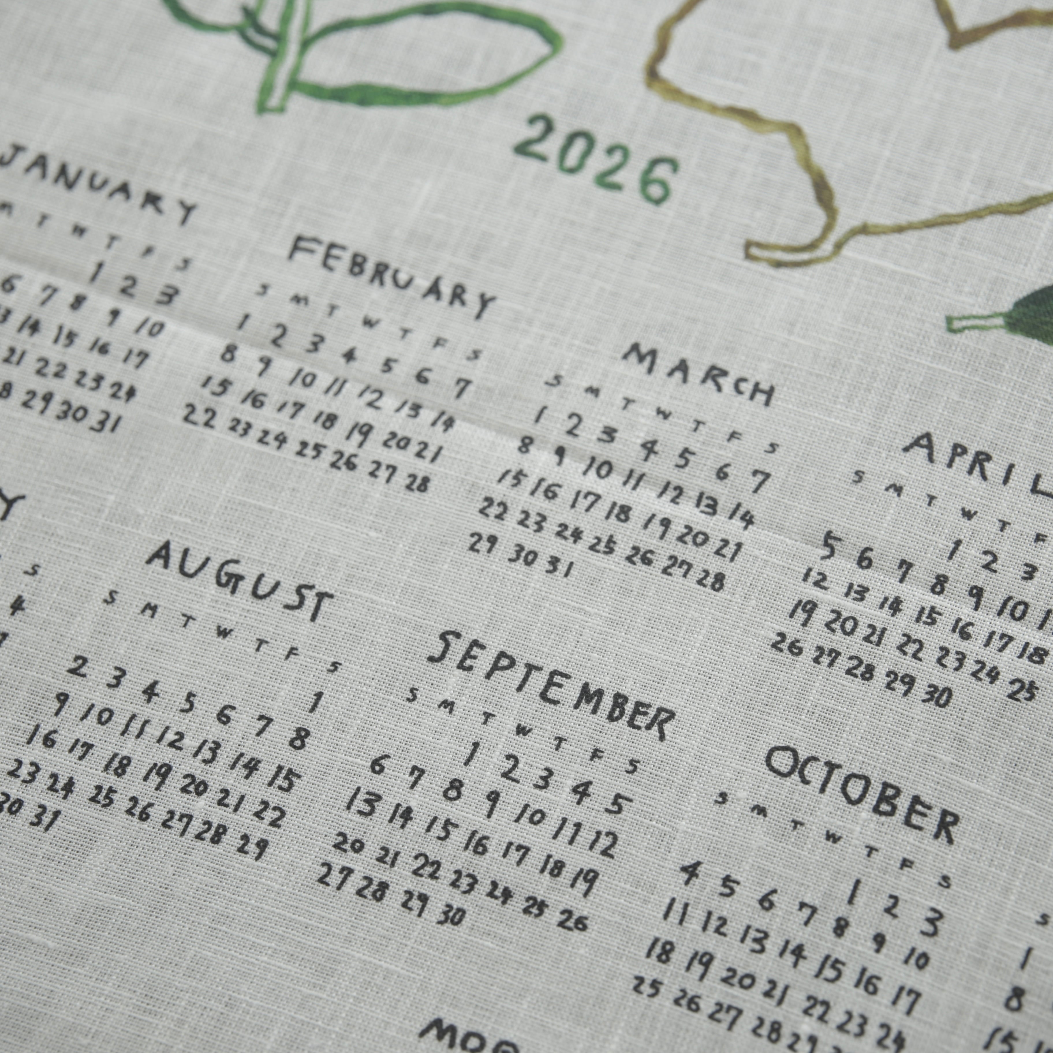 2026年版は、アーティスト・Mogu Takahashi(モグ・タカハシ)さんが描く、ユーモラスでプレイフルな世界がはじめてリネンカレンダーになって登場しました。