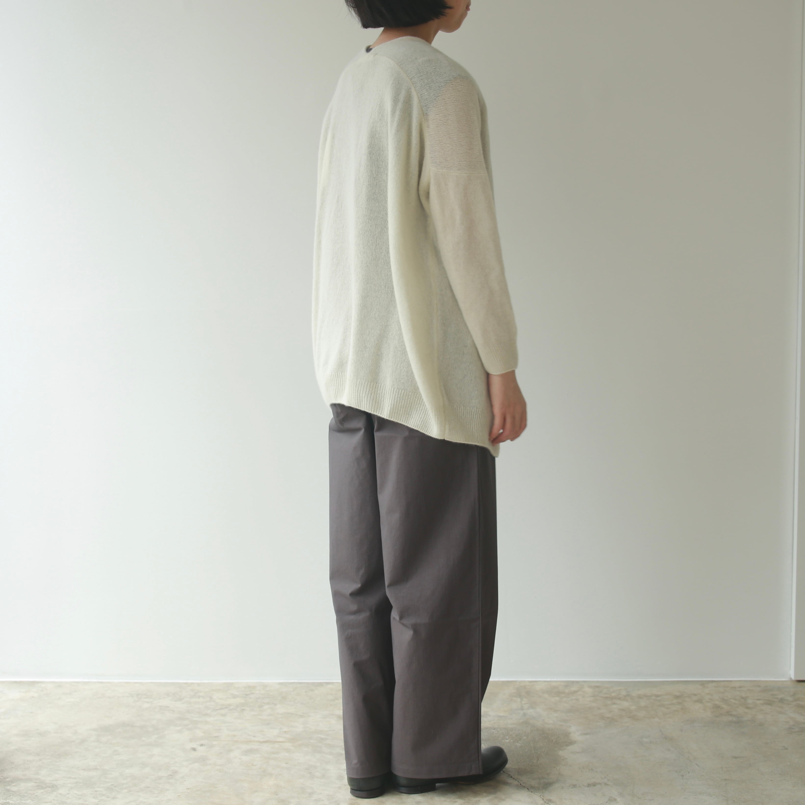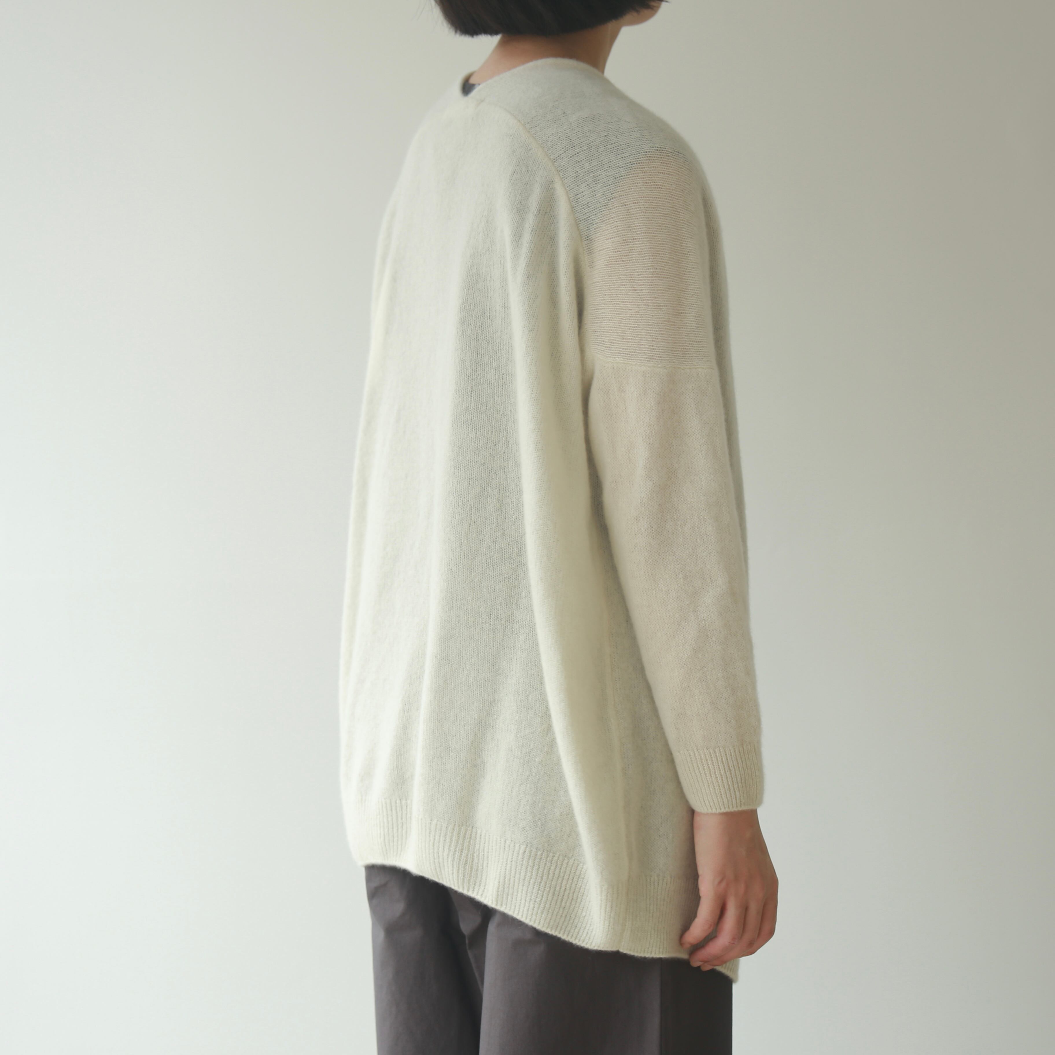 カシミヤならではのやわらかな空気を含み、軽やかで優しい着心地を楽しめます。程よい透け感と心地よい肌触りが、日常を少し贅沢にしてくれる一枚です。