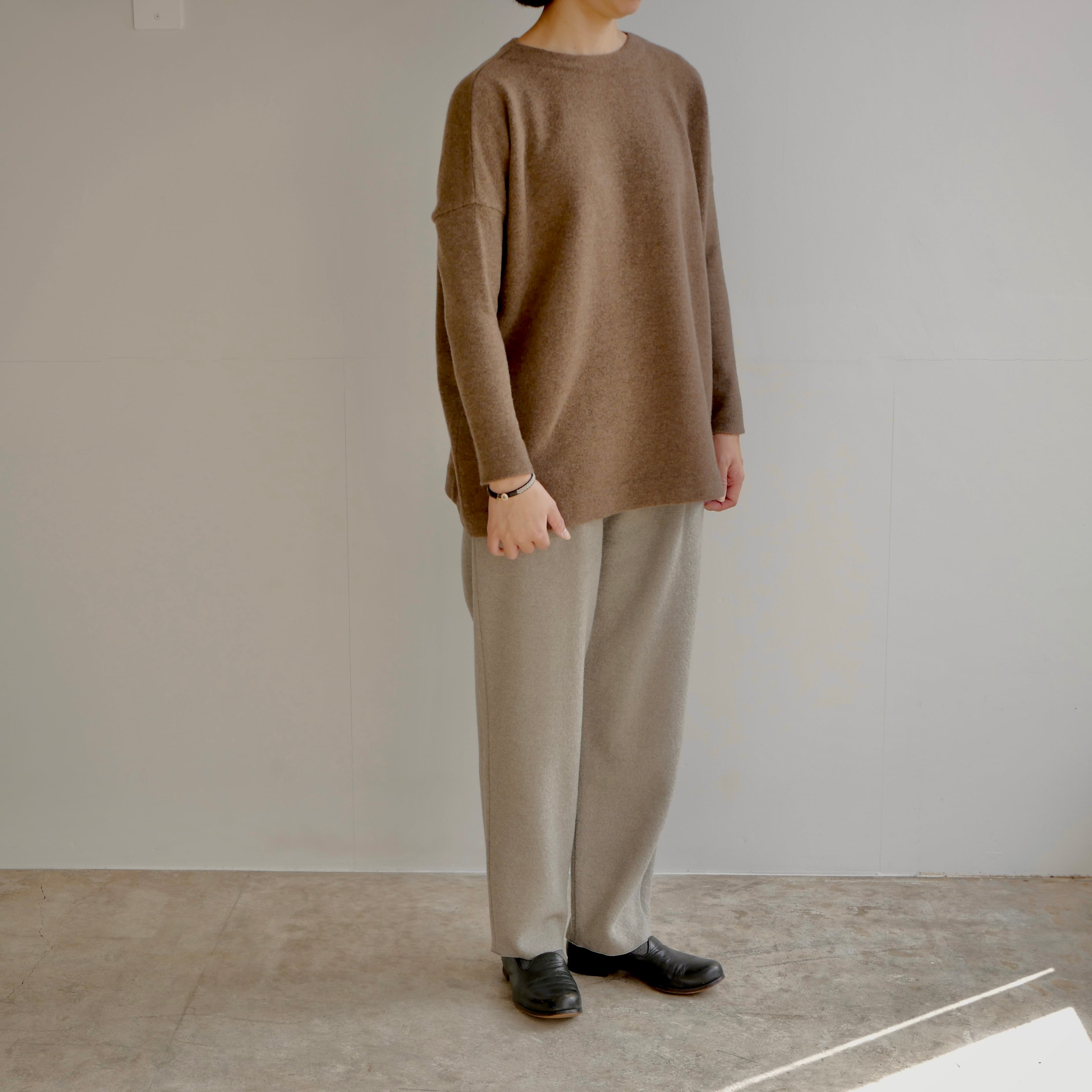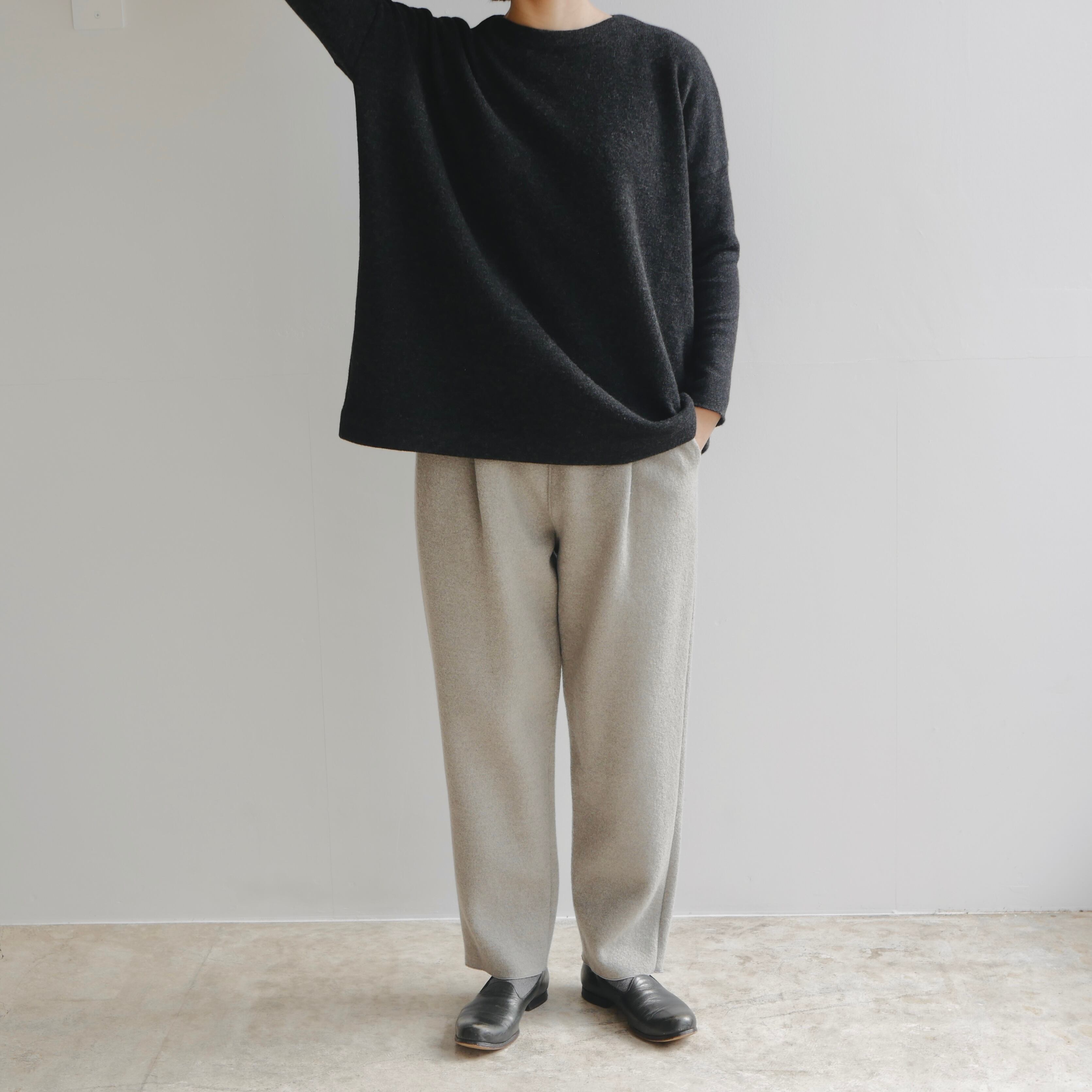 厚手のニットやざっくりとしたカーディガンと合わせても重たくならず、冬の装いを軽やかにまとめてくれる一本。日常の中で気負わずに穿けて、可愛らしさと心地よさを同時に楽しめるパンツです。
