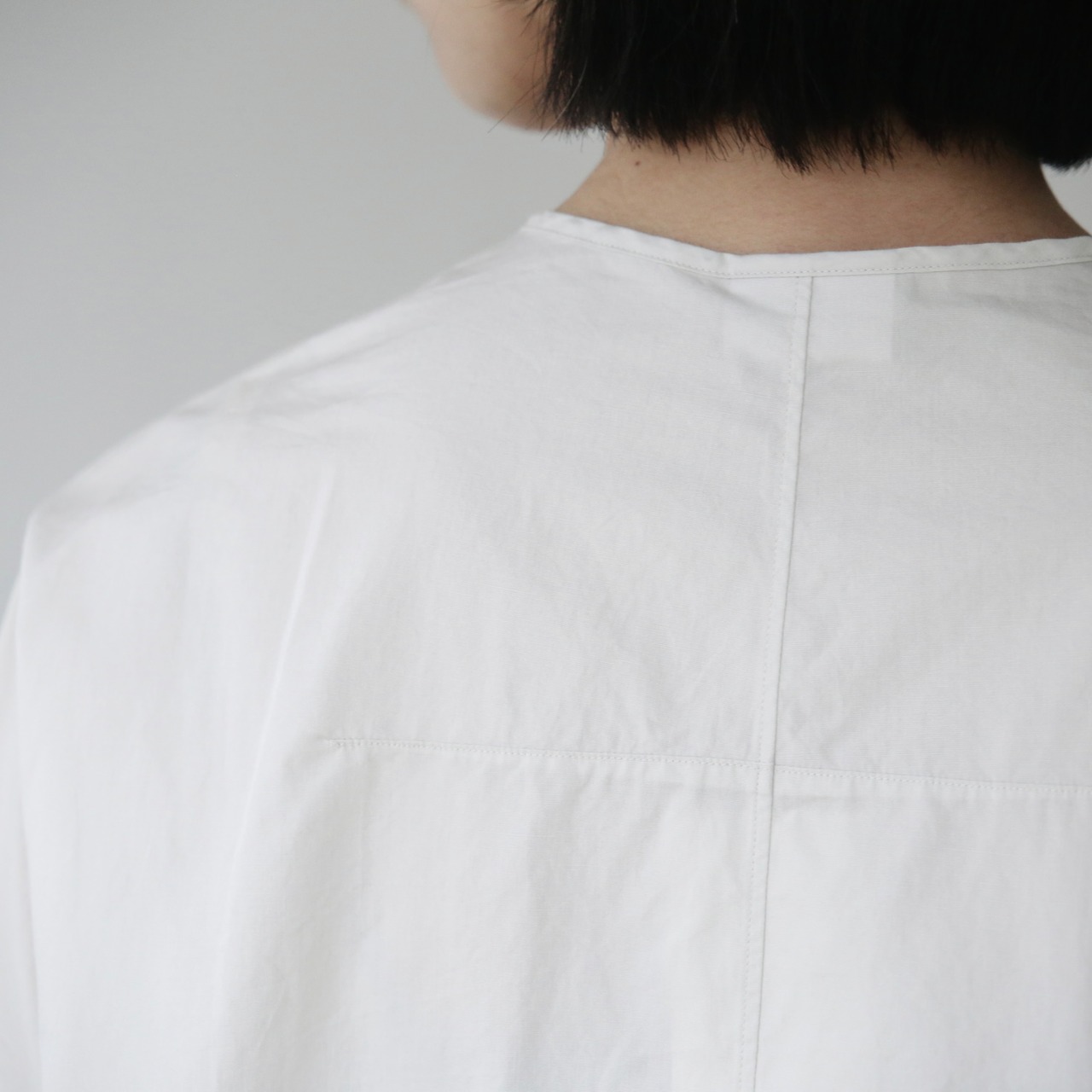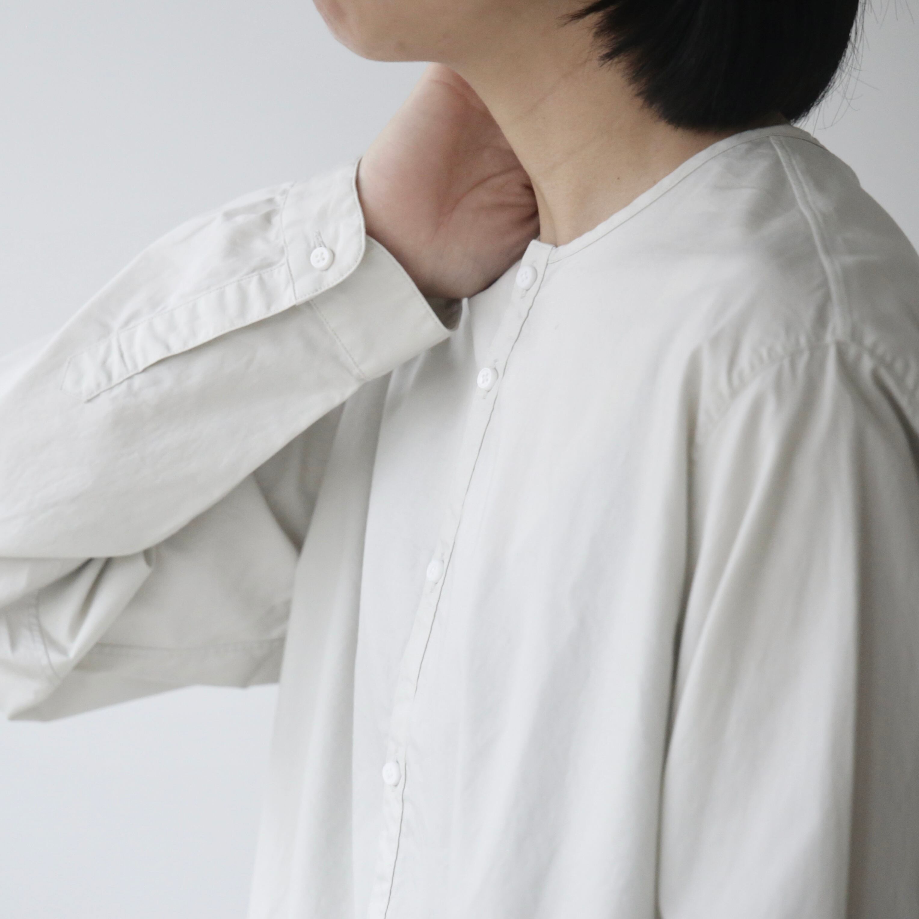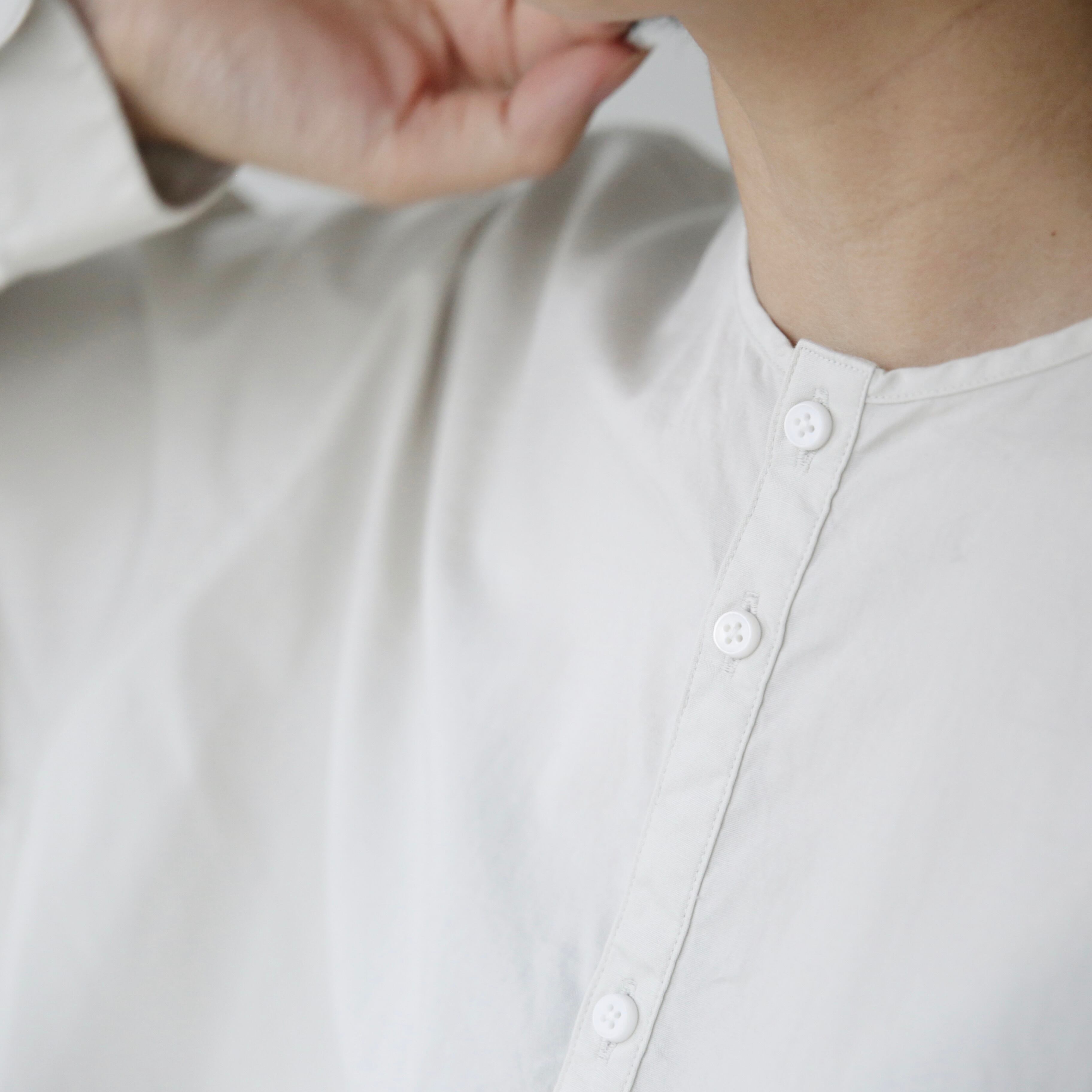 生地にはやや高密度のブロードを使用。滑らかな表面と上品な光沢を持ち、清潔感と使いやすさのバランスに優れた素材です。通年で活躍し、季節の変わり目には一枚で、