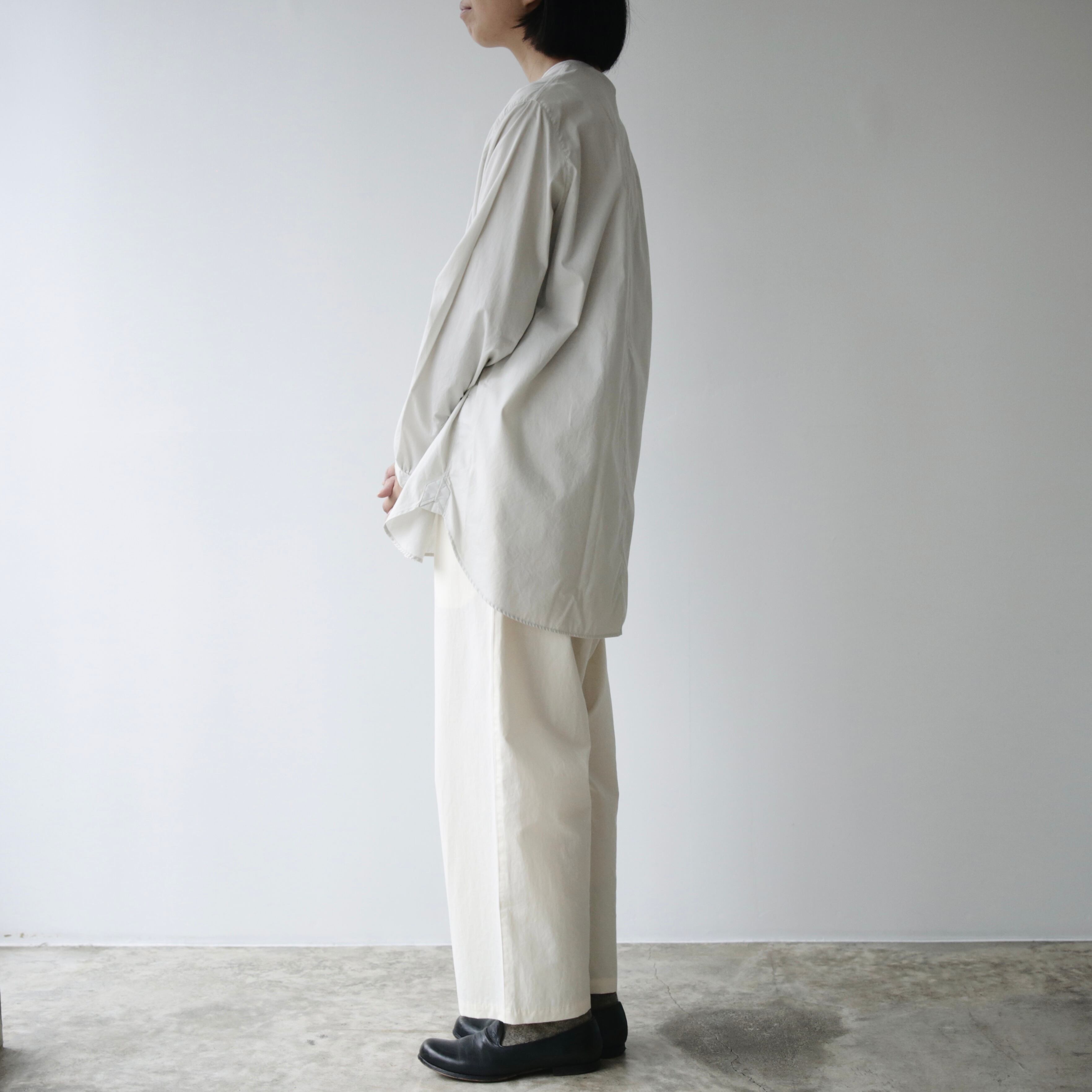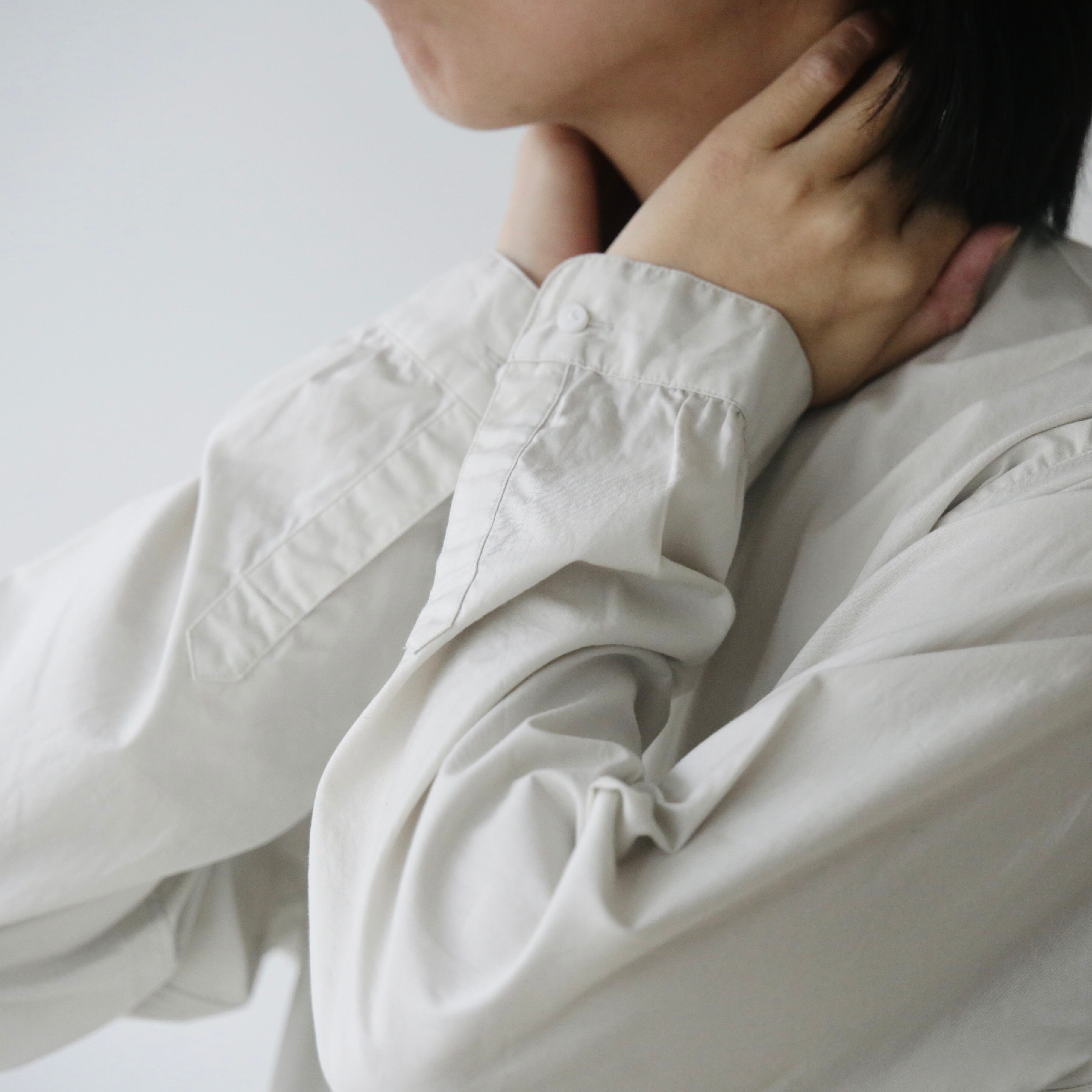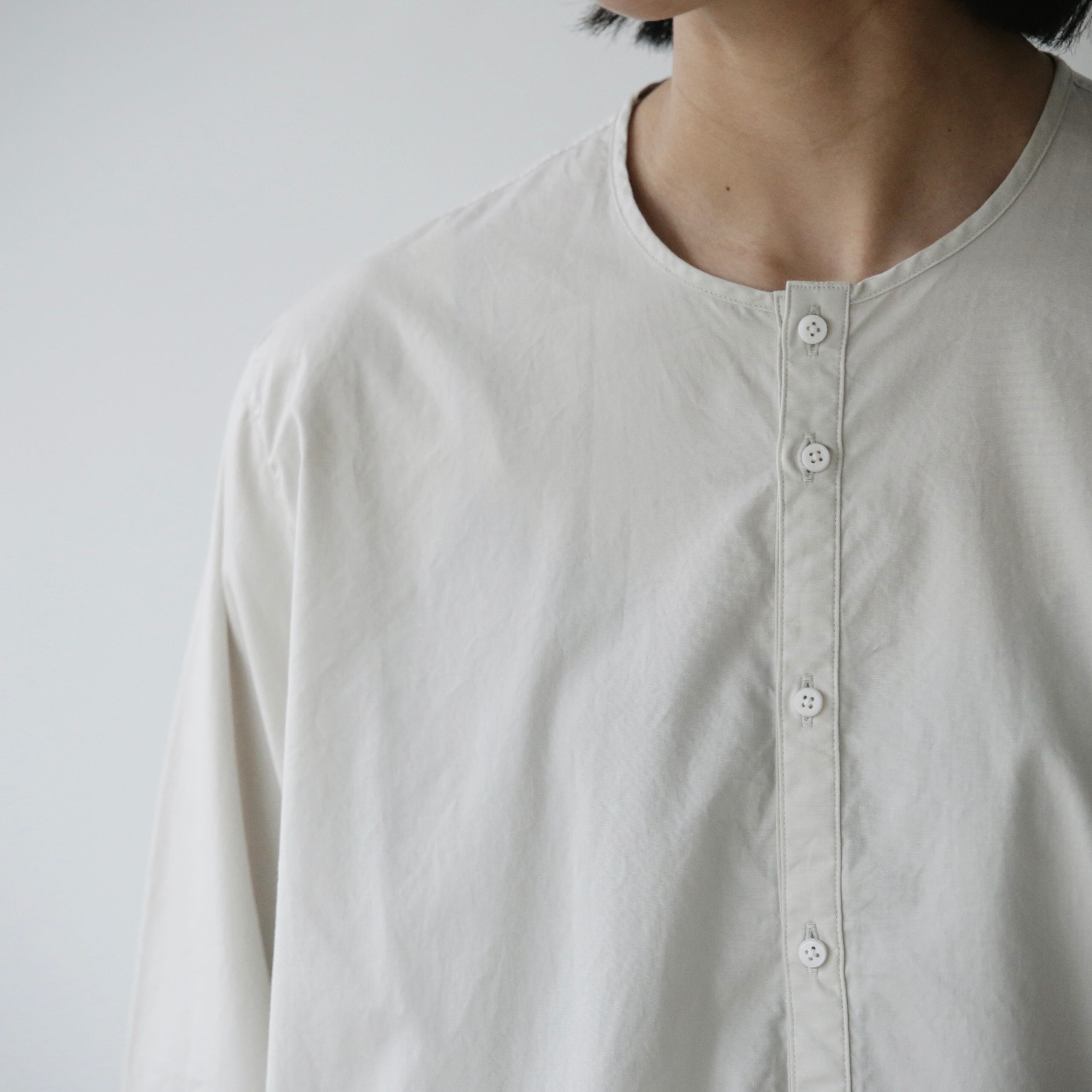 生地にはやや高密度のブロードを使用。滑らかな表面と上品な光沢を持ち、清潔感と使いやすさのバランスに優れた素材です。通年で活躍し、季節の変わり目には一枚で、