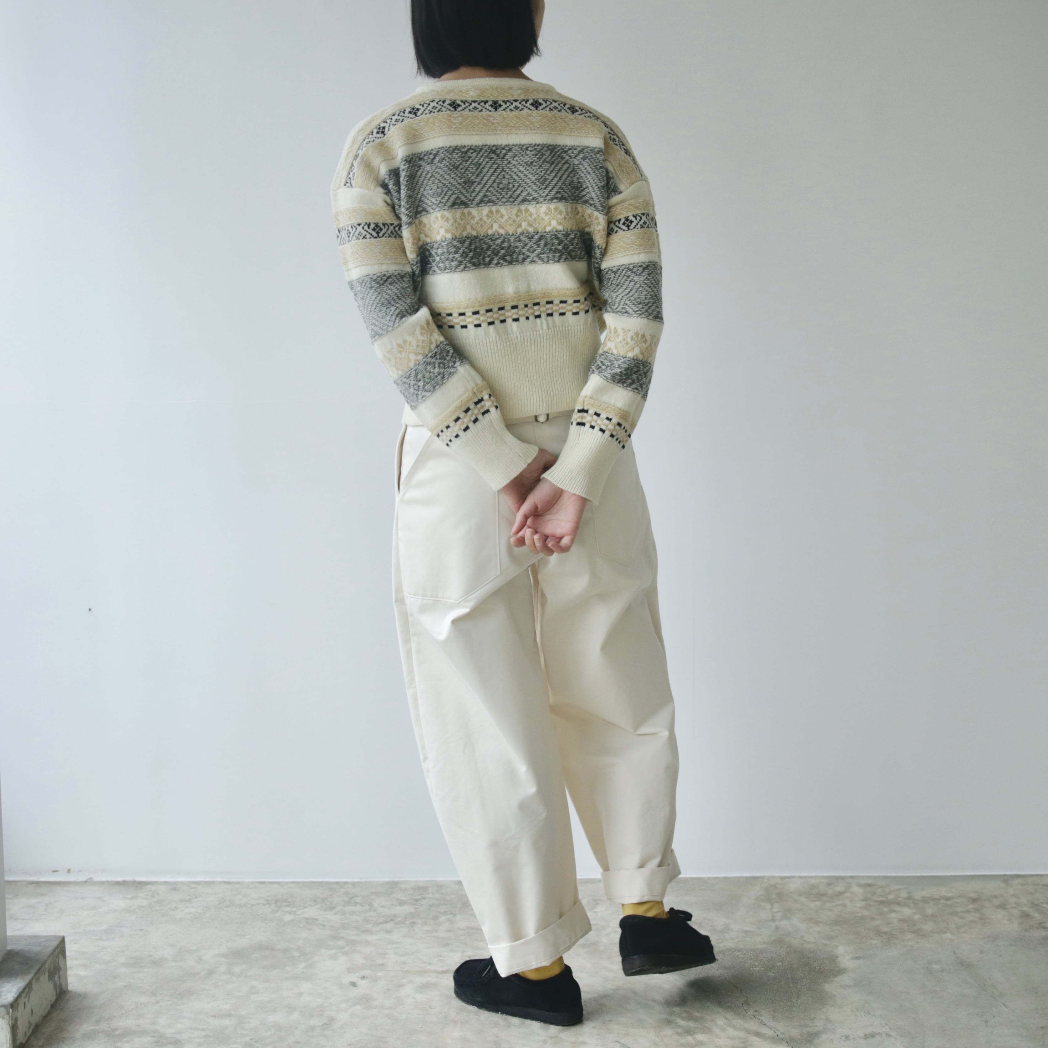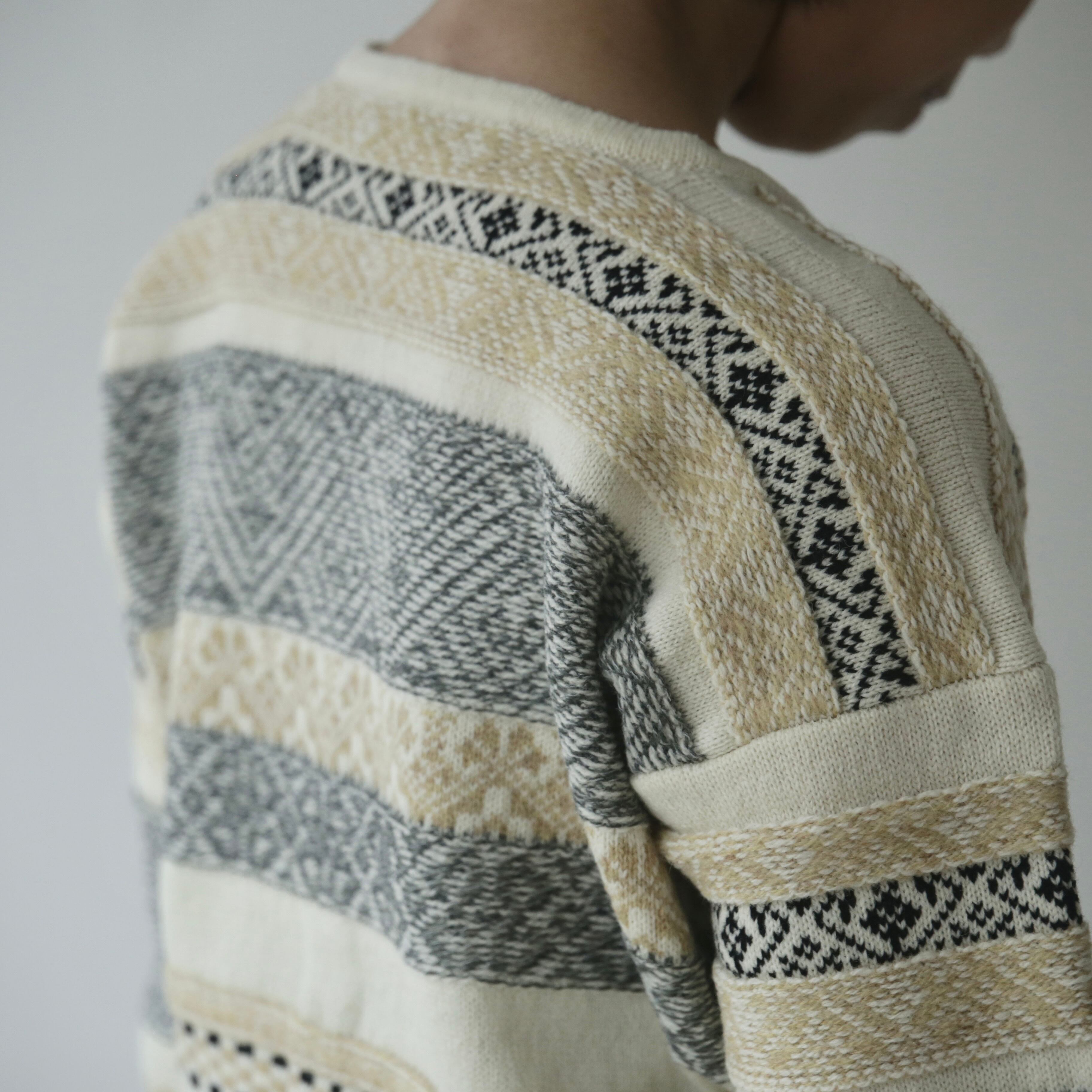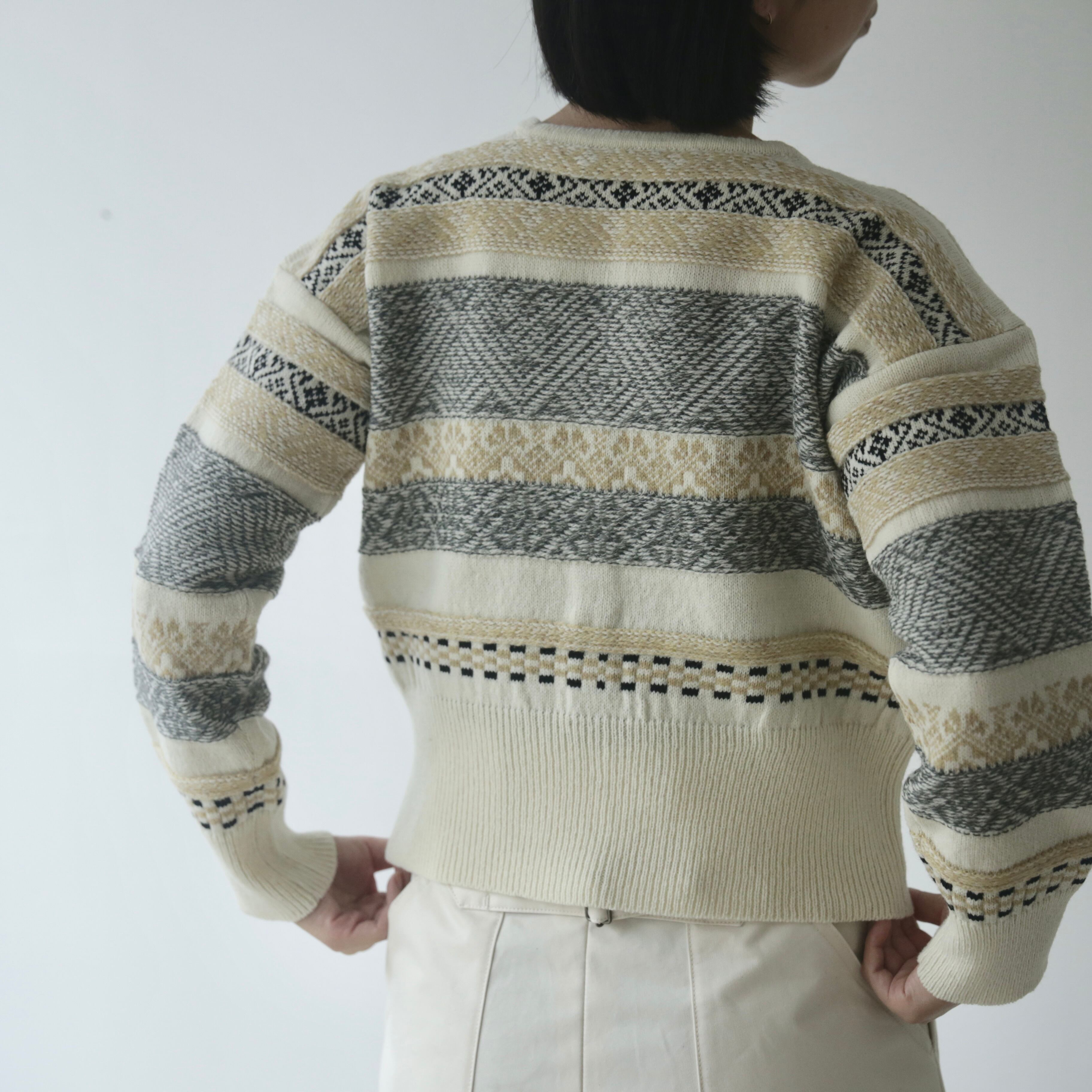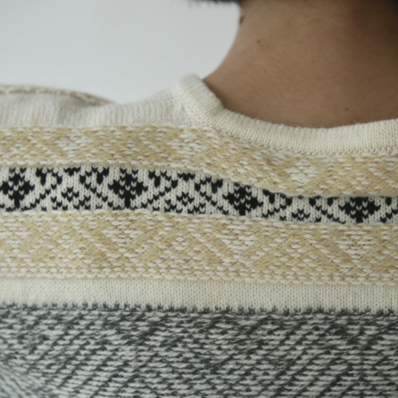 サーミ民族の装飾文化に着想を得た、ノルディック柄のカーディガン。オーストラリア産のラムズウールを贅沢に使用し、ふんわりと軽く、包み込まれるような温もりがあります。