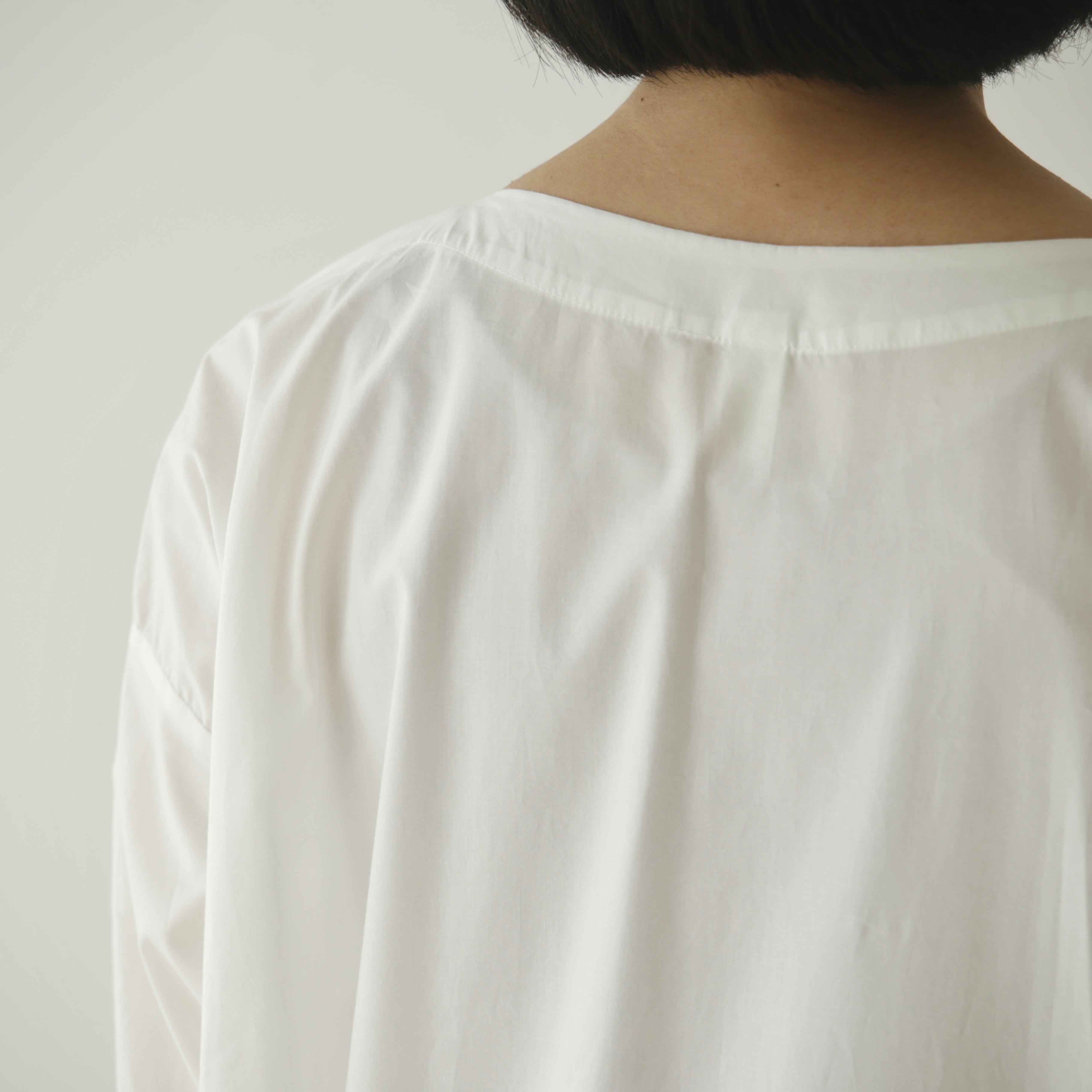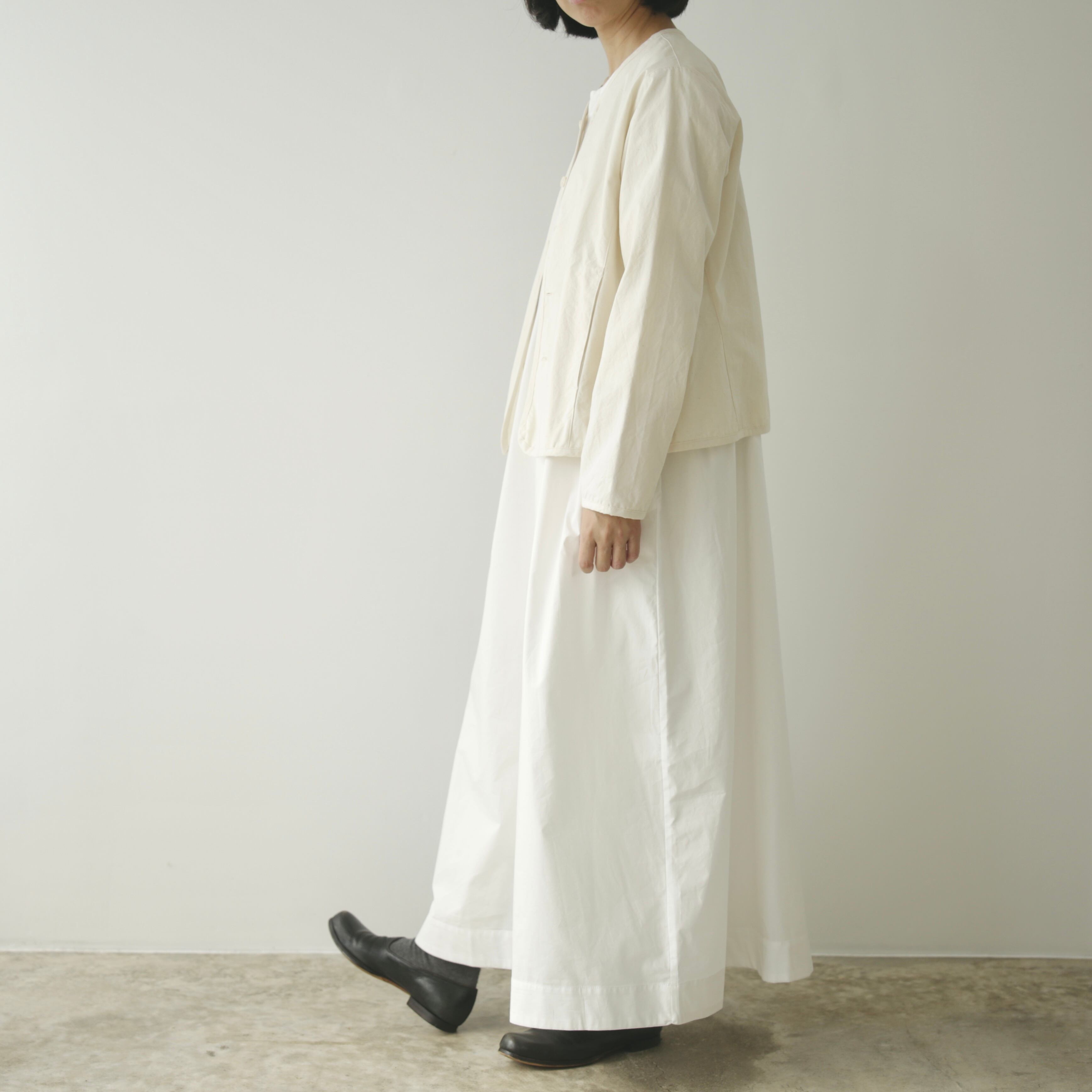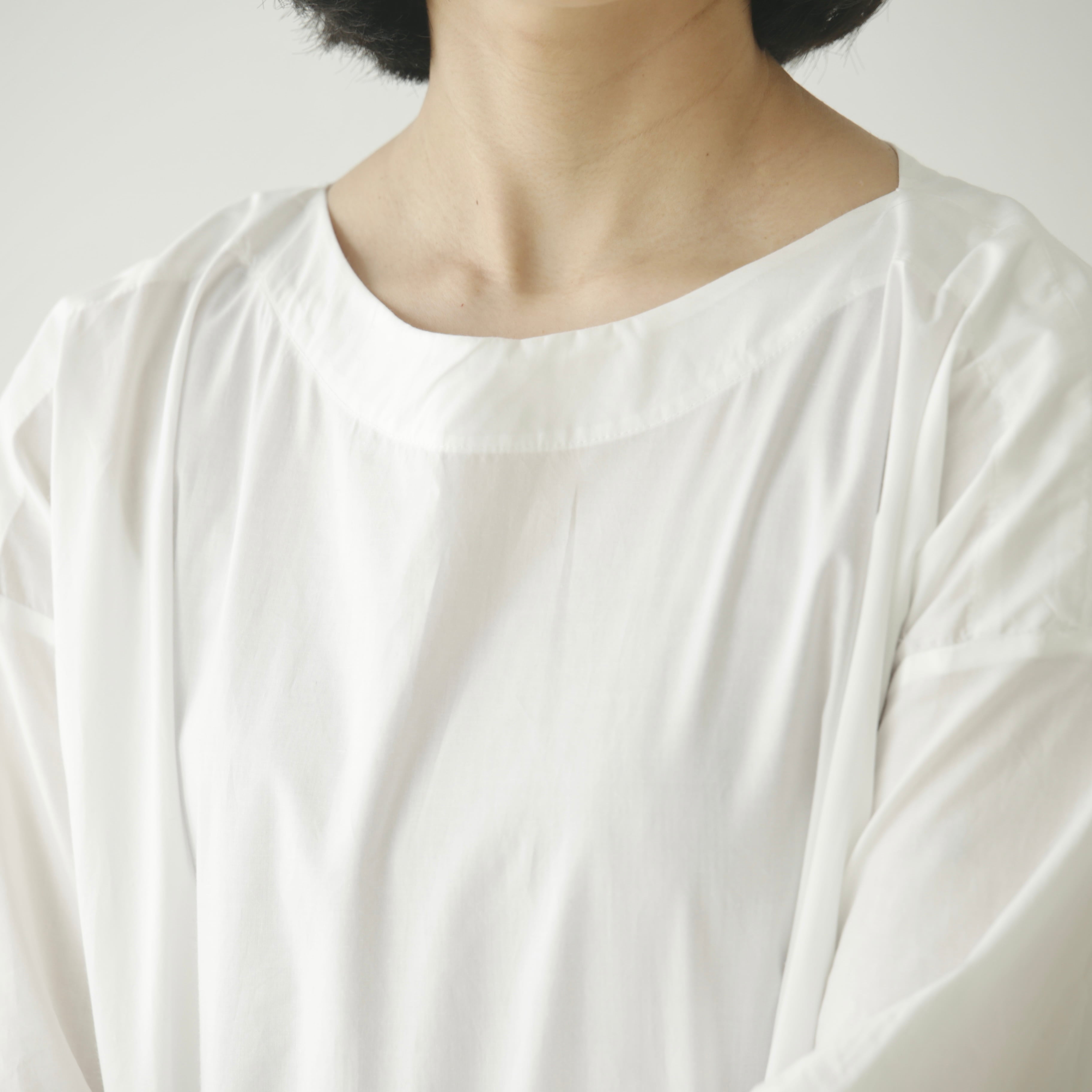 しっかりと分量を使いながらも、驚くほど軽い生地感で、着ていても体に負担がなく心地よく過ごせます。ボリュームのあるシルエットに、すっきりと開いた首元がバランスよく、軽やかで可憐な印象に。