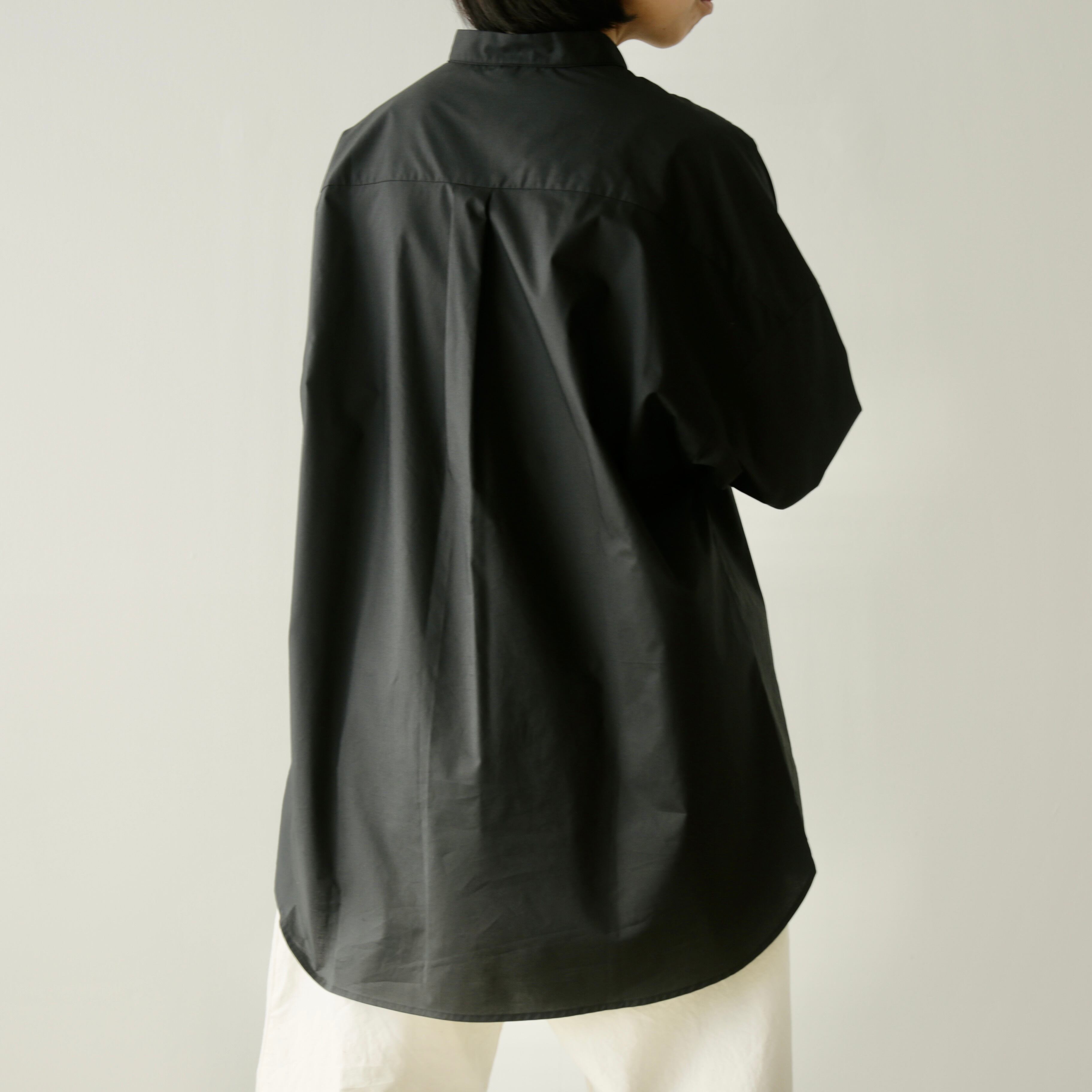 高密度に織り上げたタイプライター生地は、さらりとした手触りで、袖を通すと、空気をはらむような軽やかさがあります。