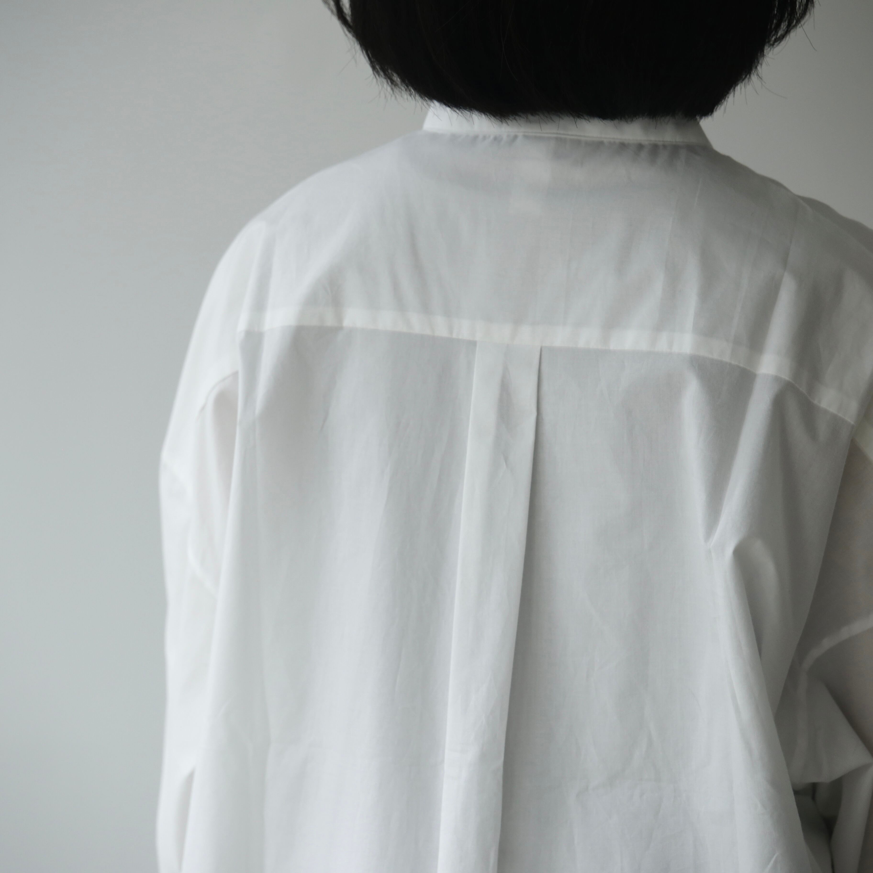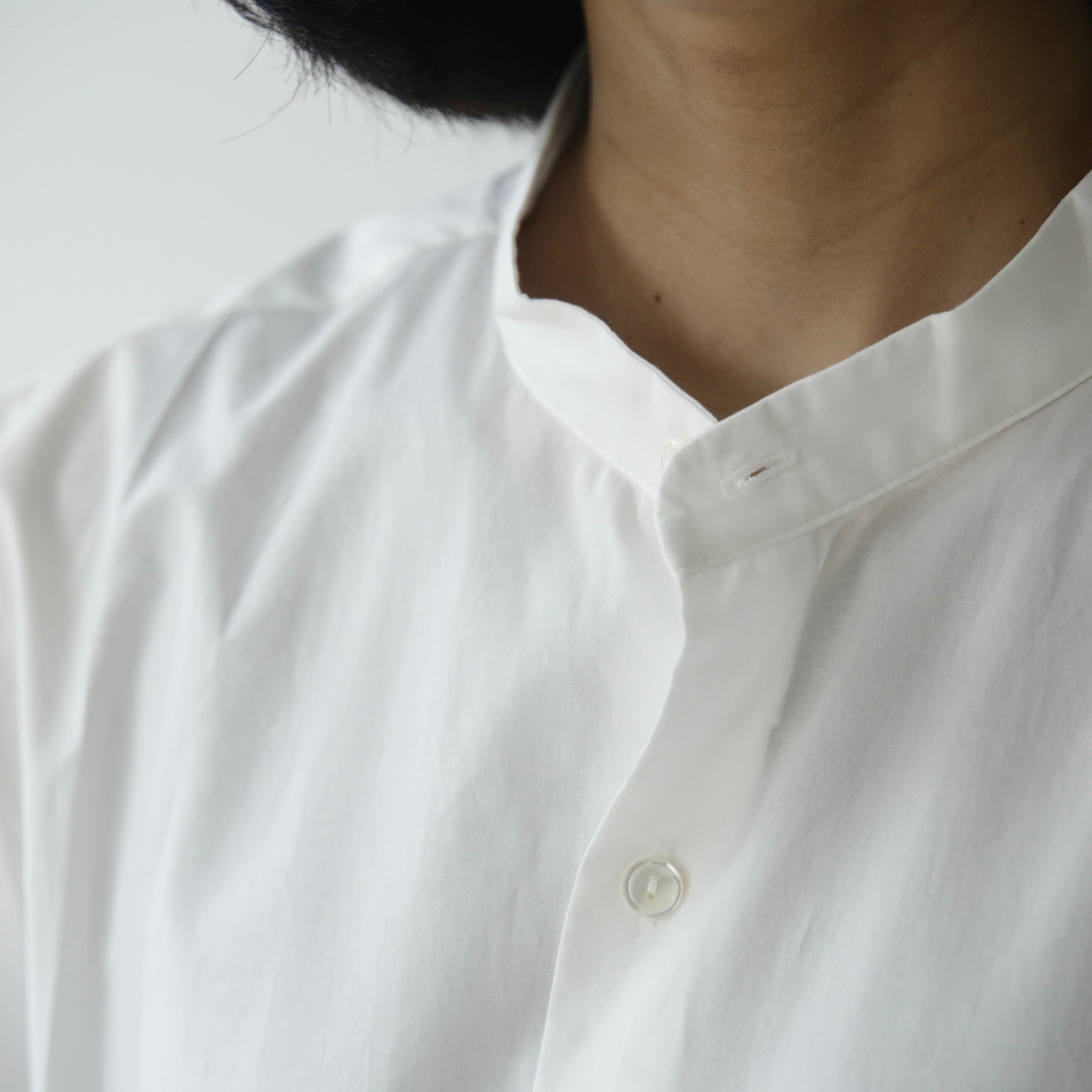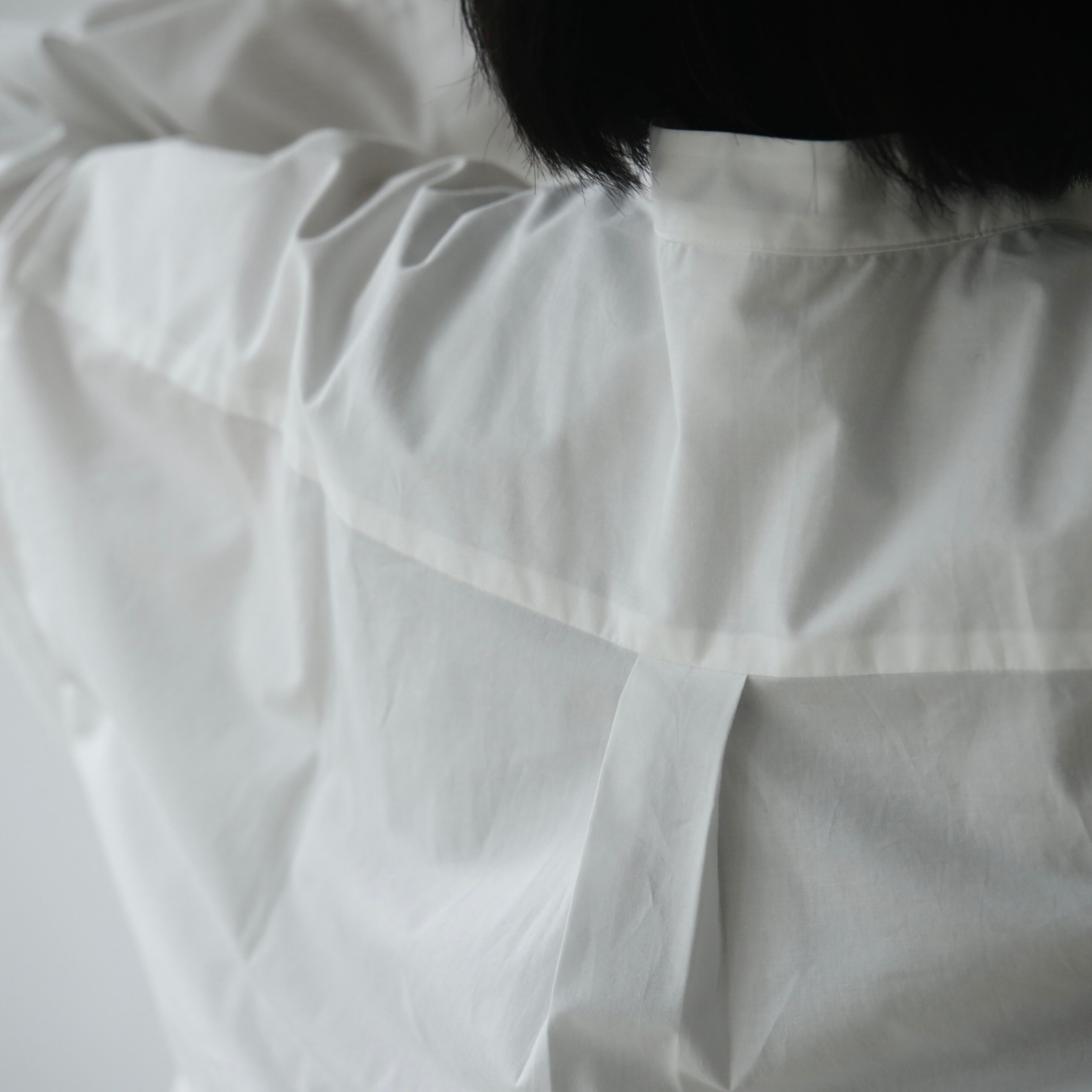 高密度に織り上げたタイプライター生地は、さらりとした手触りで、袖を通すと、空気をはらむような軽やかさがあります。