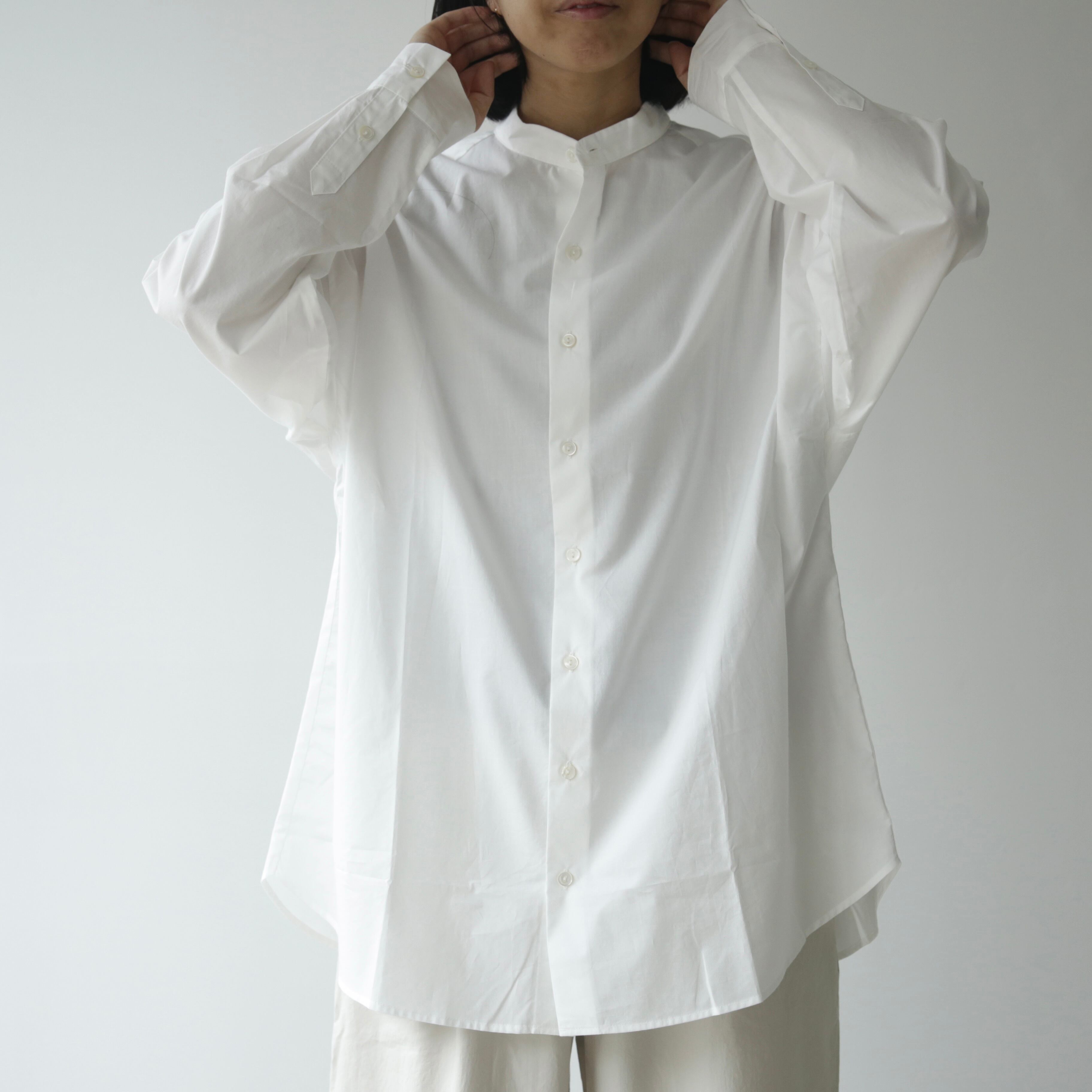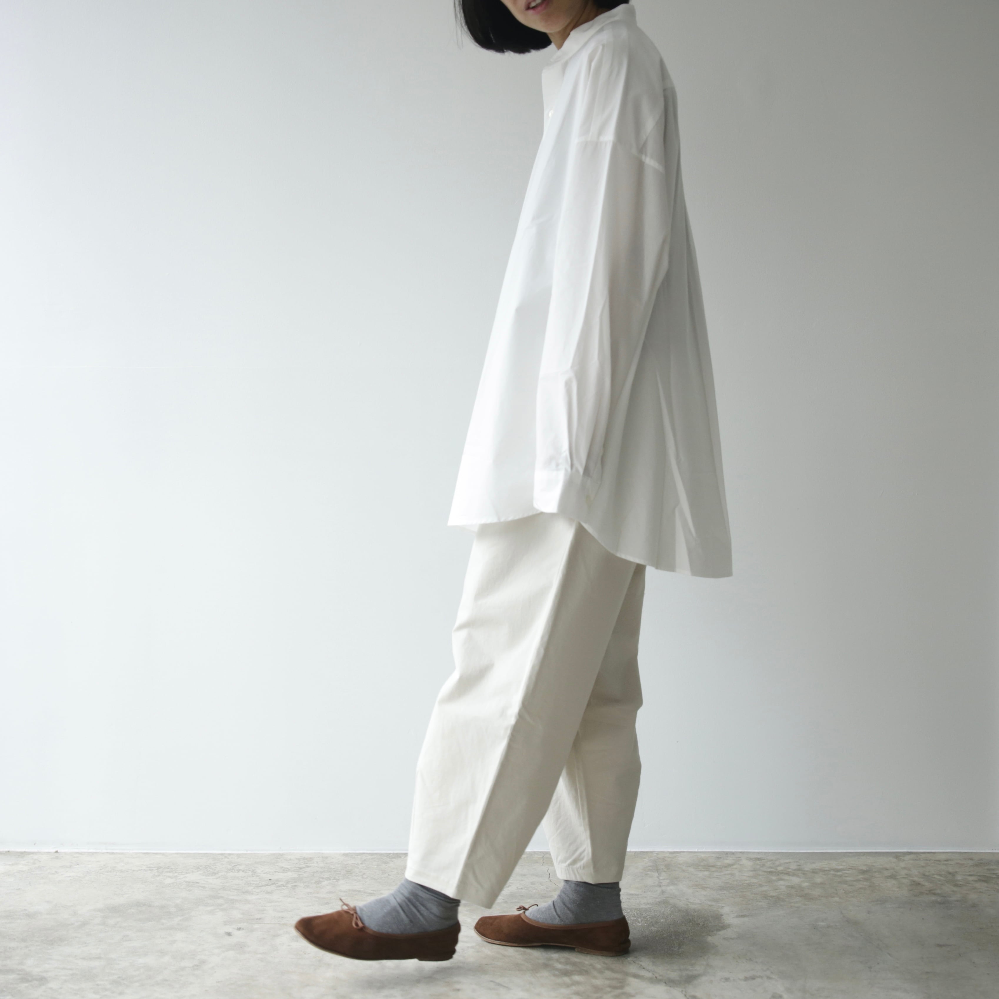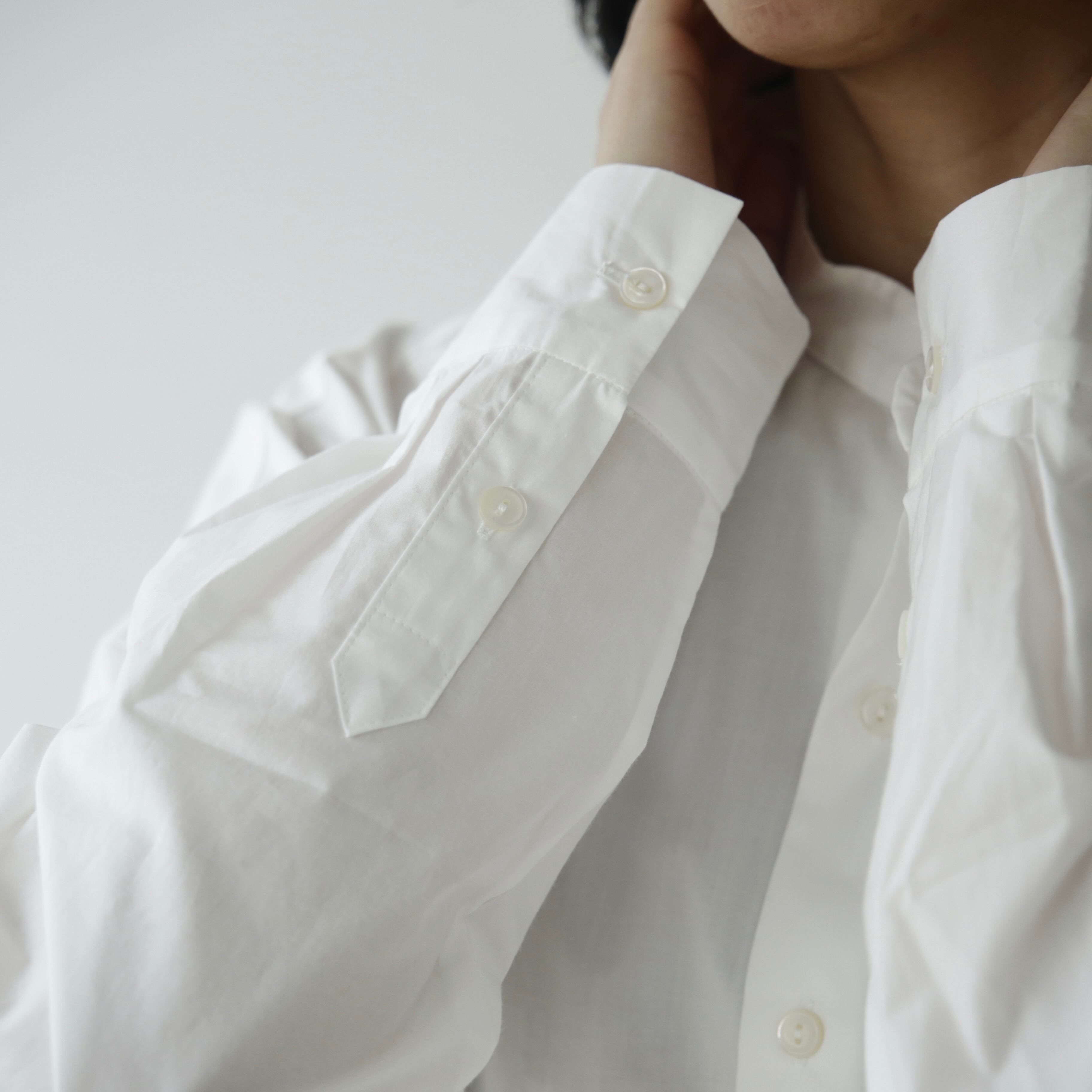 高密度に織り上げたタイプライター生地は、さらりとした手触りで、袖を通すと、空気をはらむような軽やかさがあります。