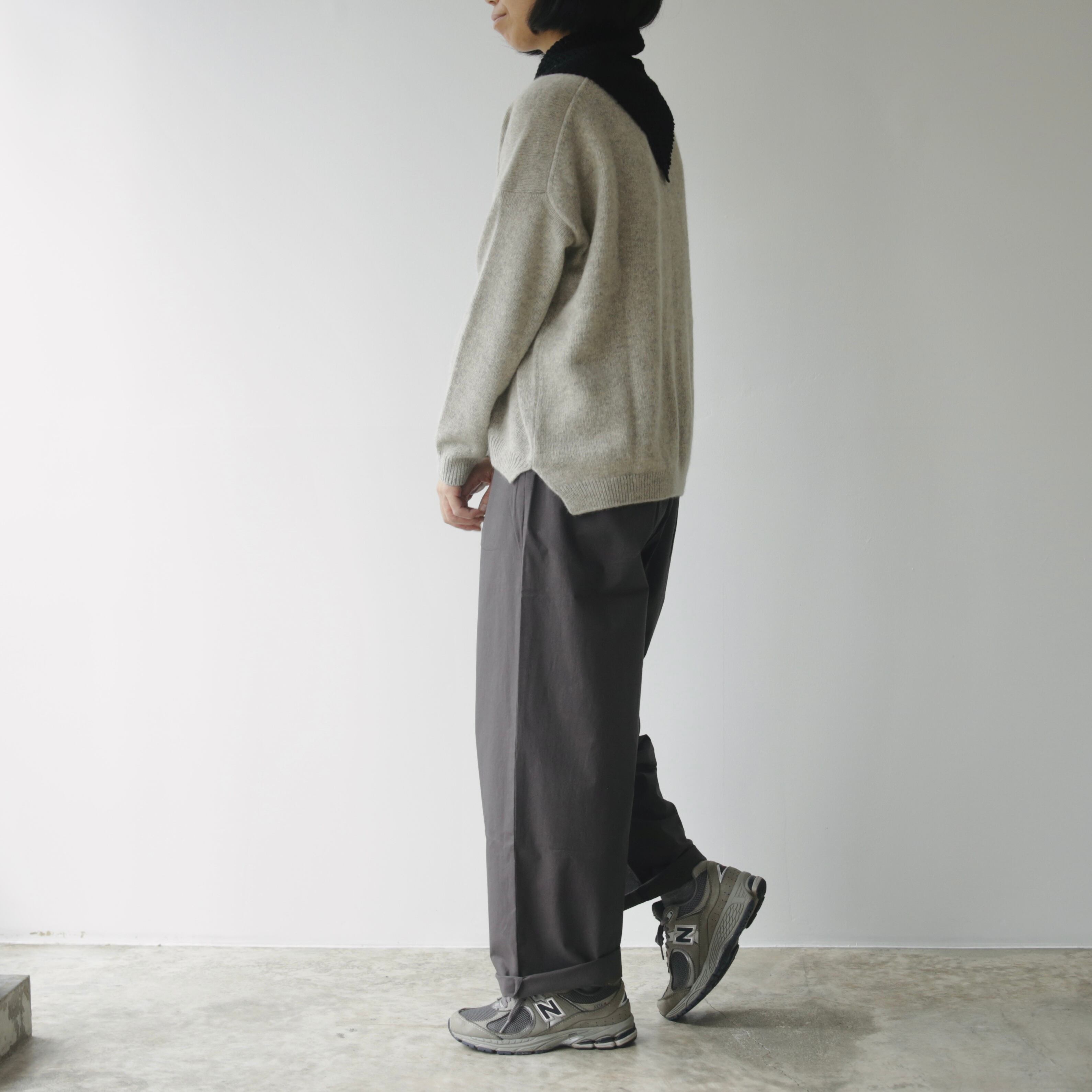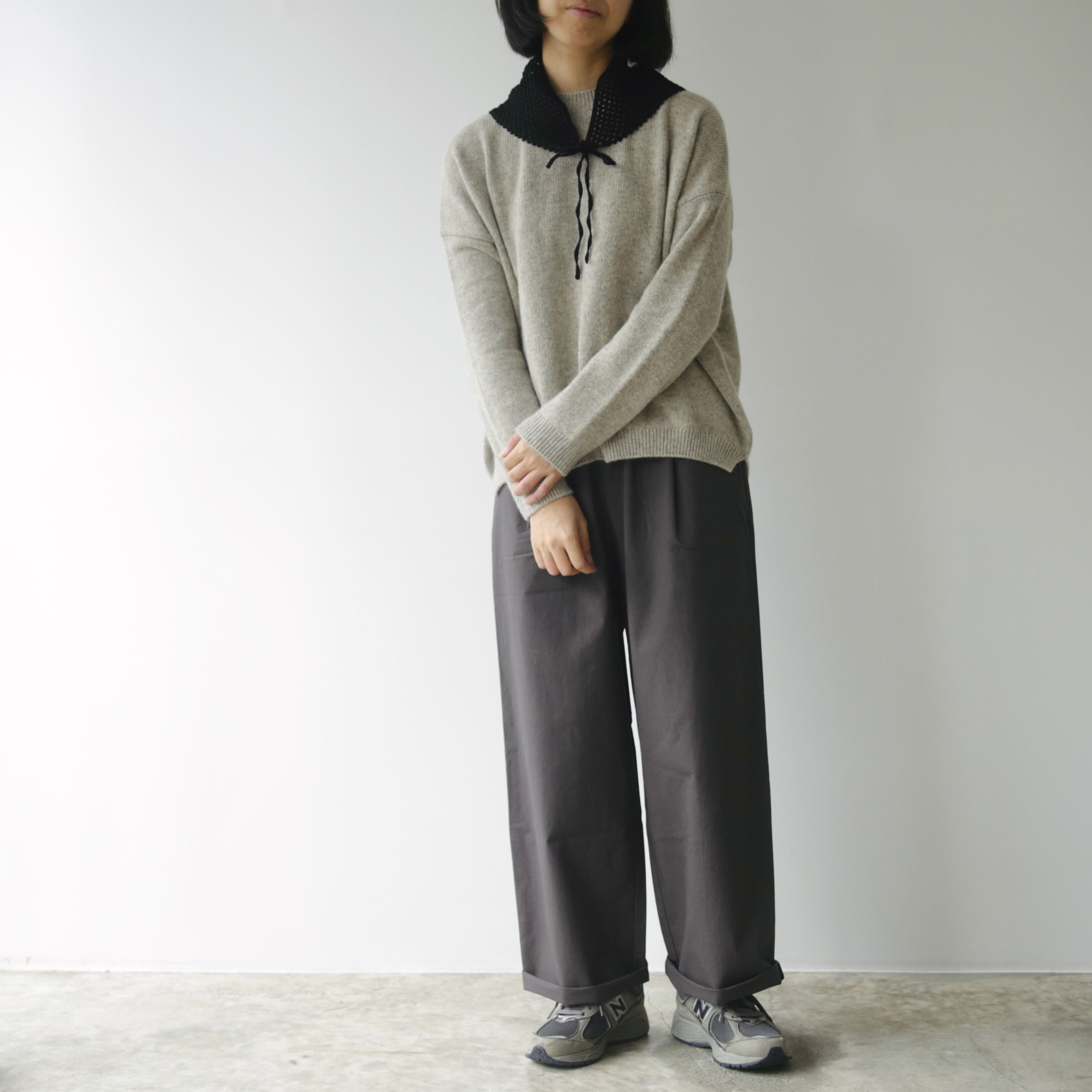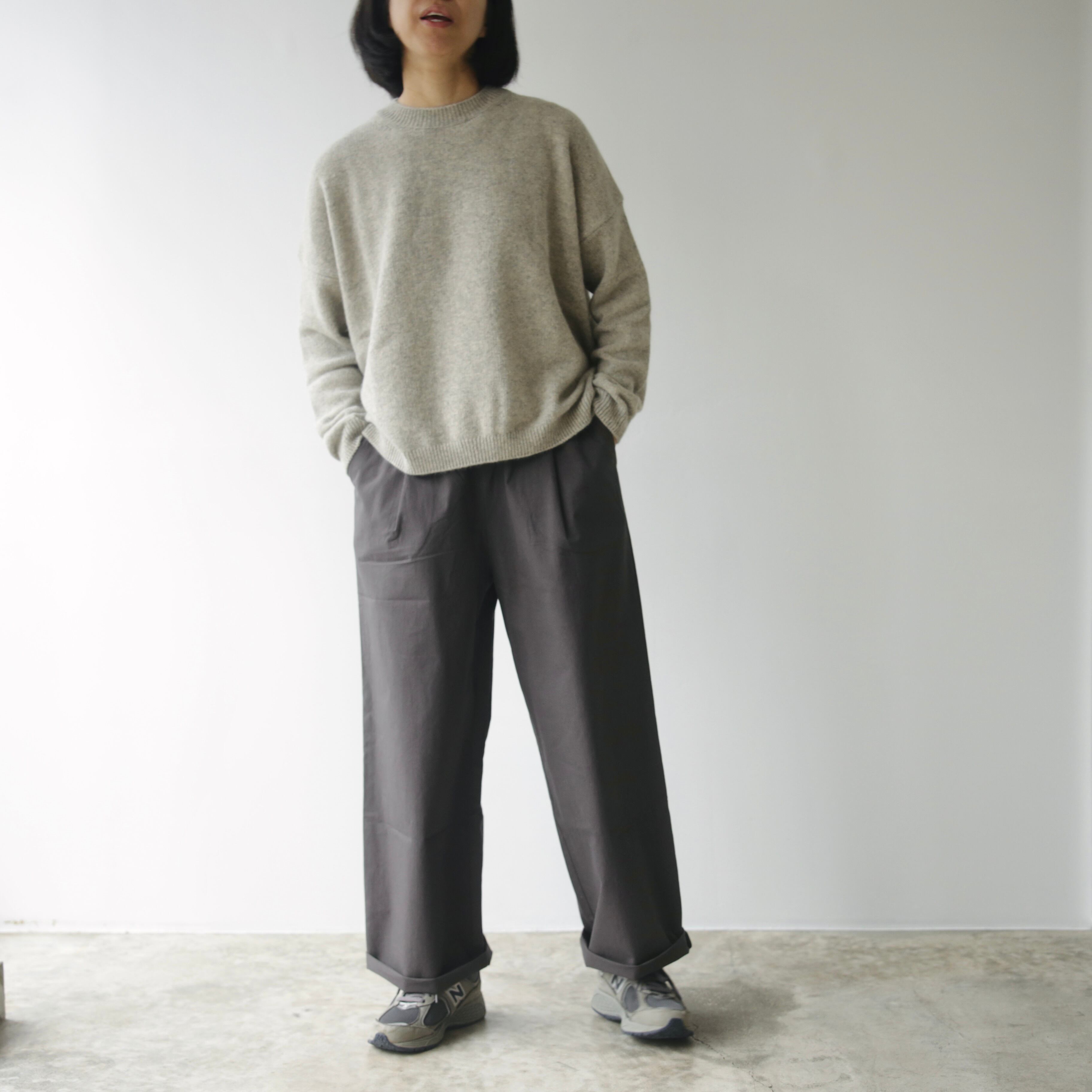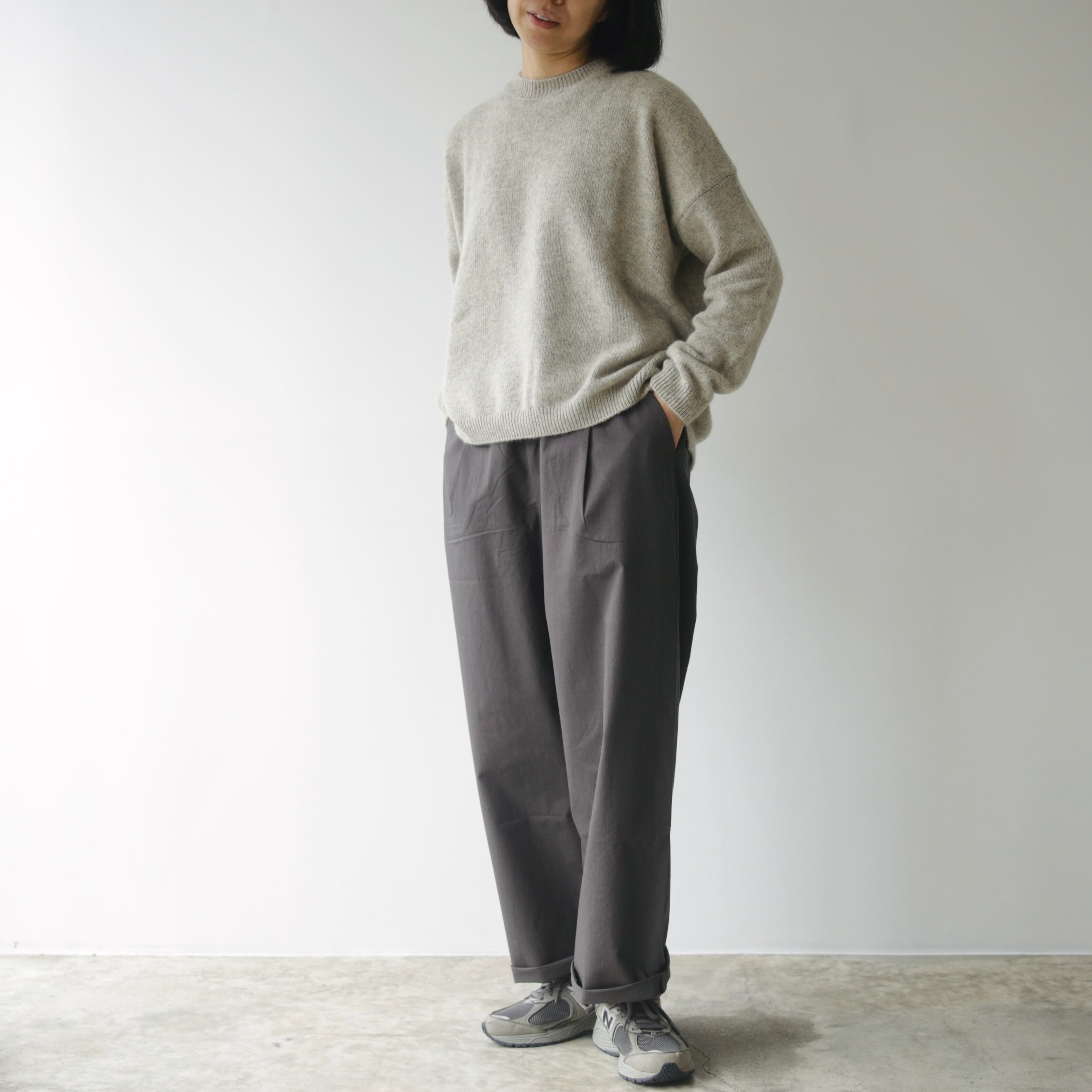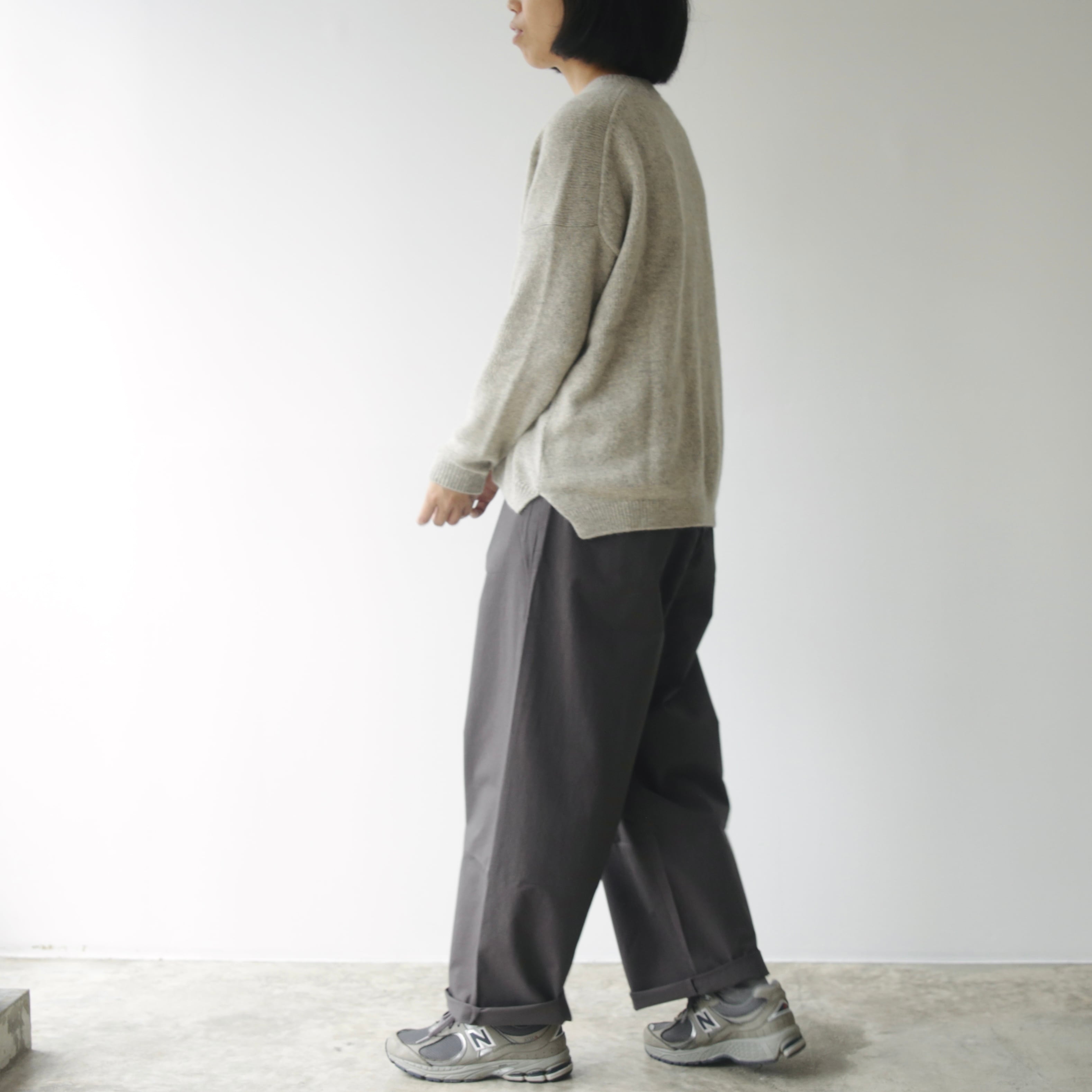 ニュアンスのあるカラーで抜け感を出してくれそうなのは数色の糸を混ぜて染色しているため色に奥行きが出て、ナチュラルなのに深い味わいに。シンプルでベーシックなニットは合わせやすく、何年も着れるため素材の良いものを選びたいですね。