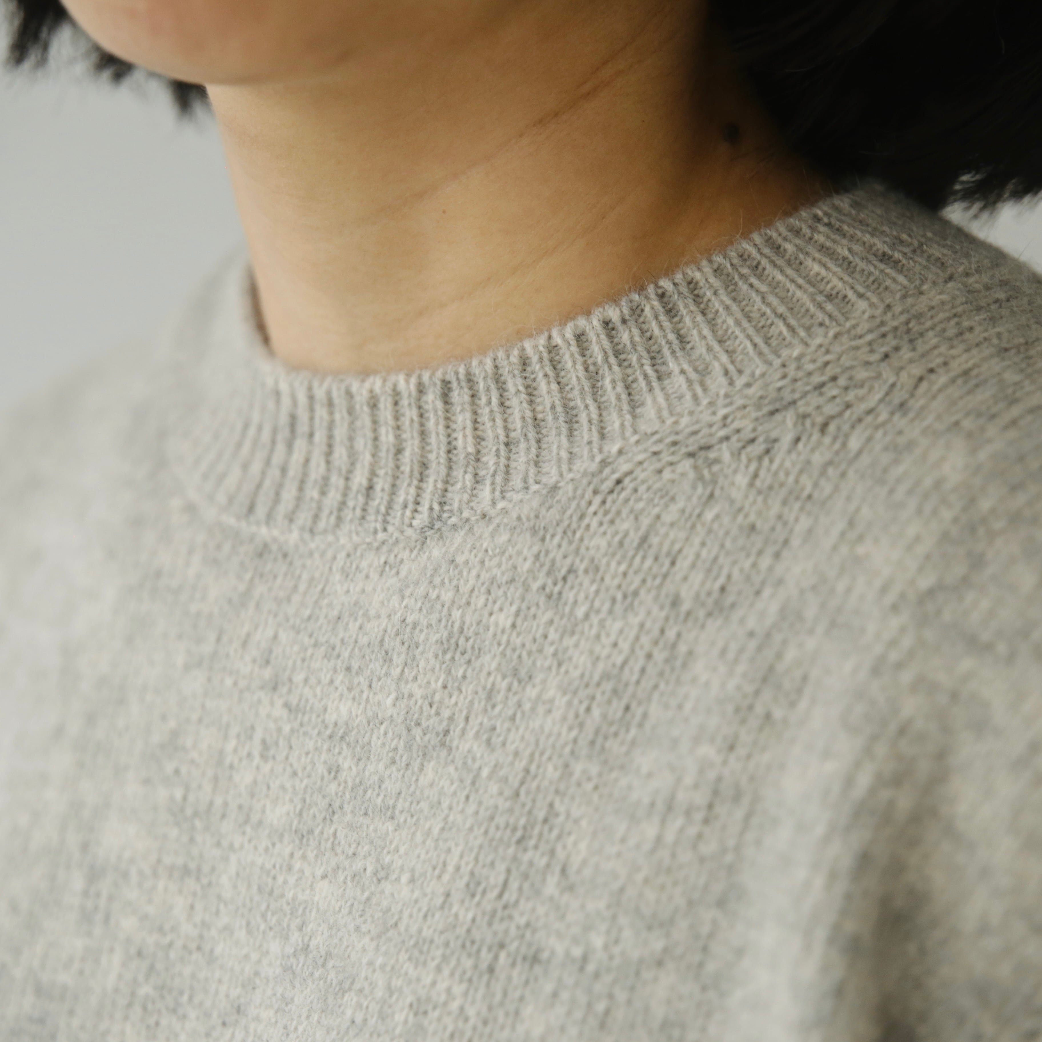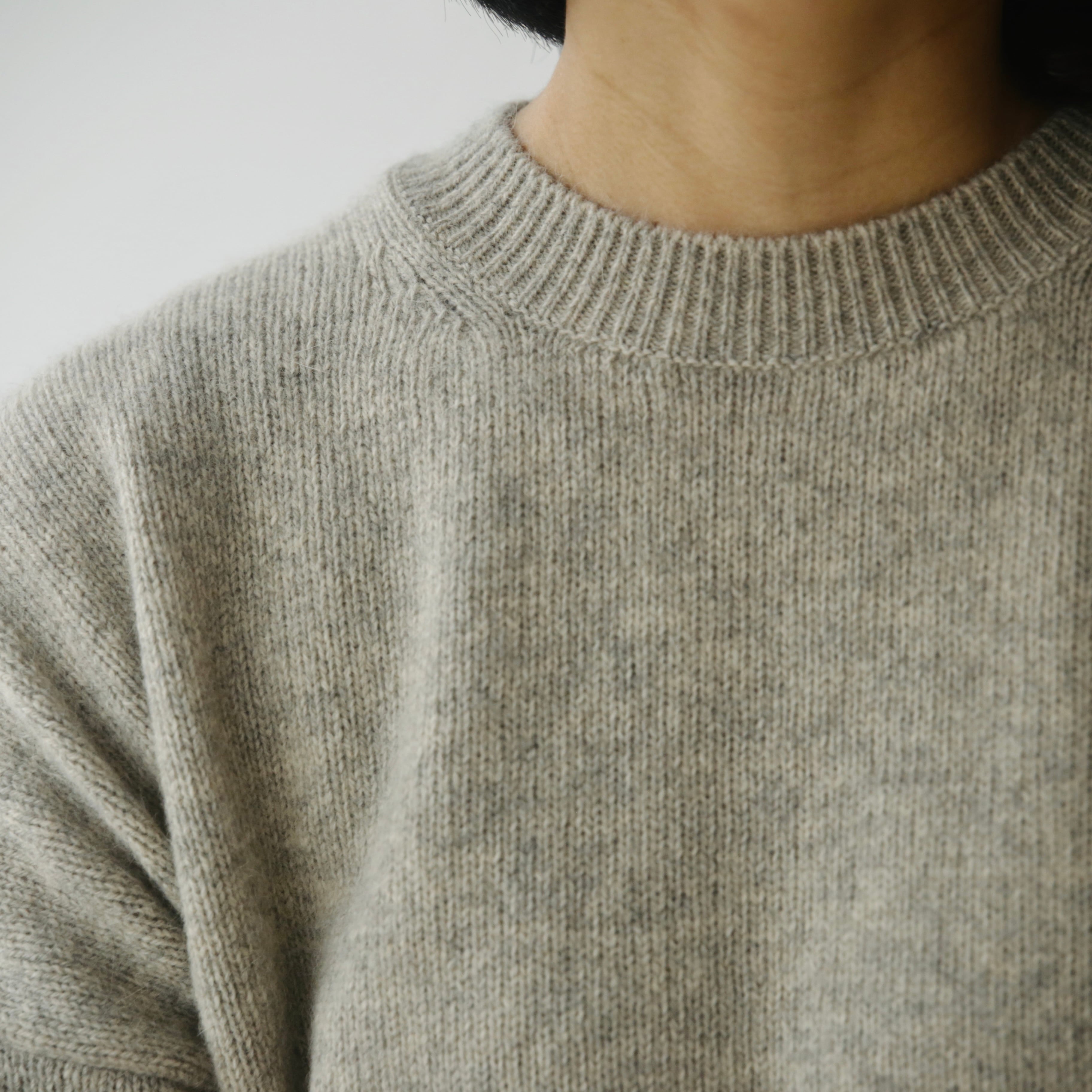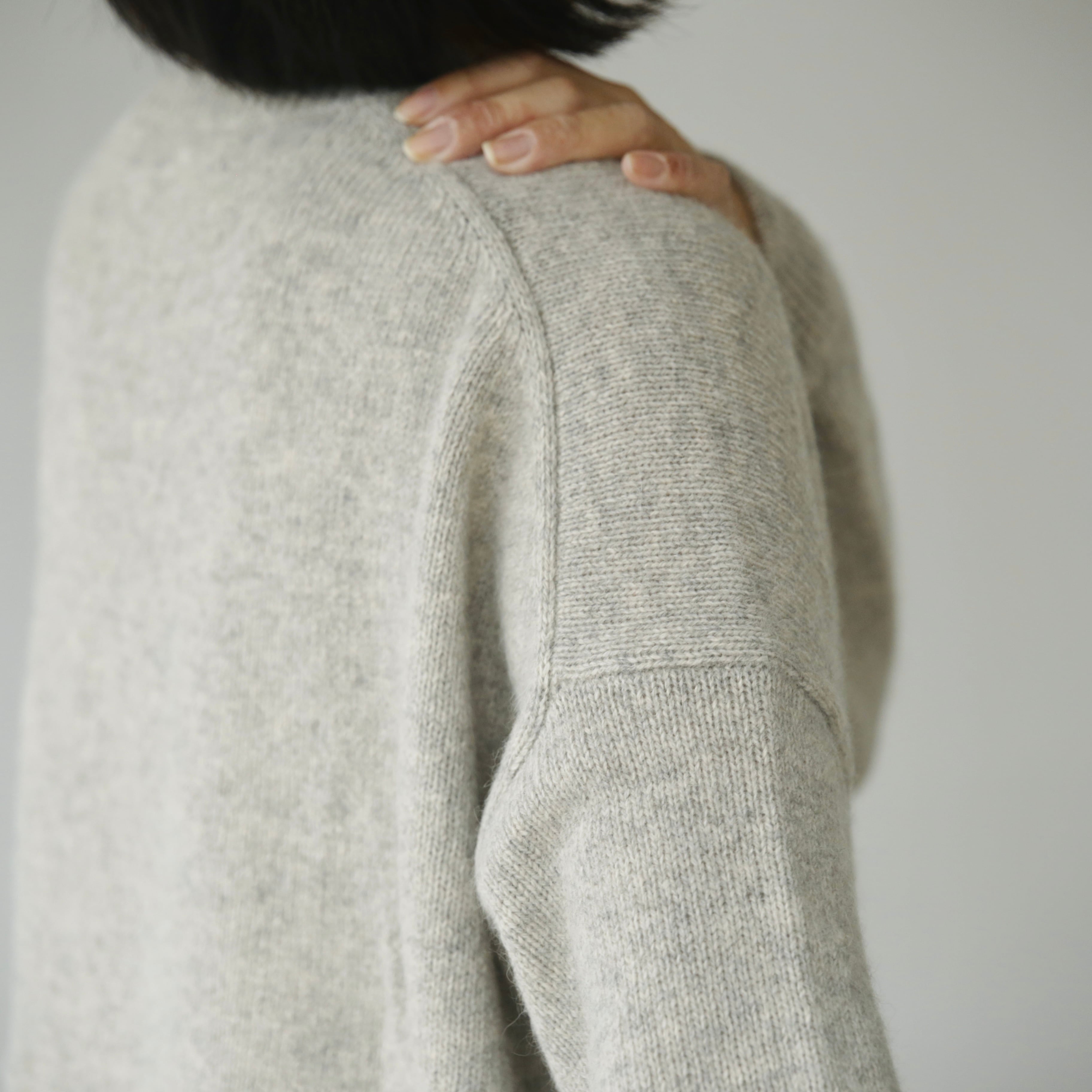 弾力のあるメリノウールとふんわりとした毛がしなやかで優しい肌あたりのブルーフォックスを使用したニット。柔らかいながらも、軽やかで程よい厚みもあるので暖かさはカシミヤに並ぶほどの保温性です。