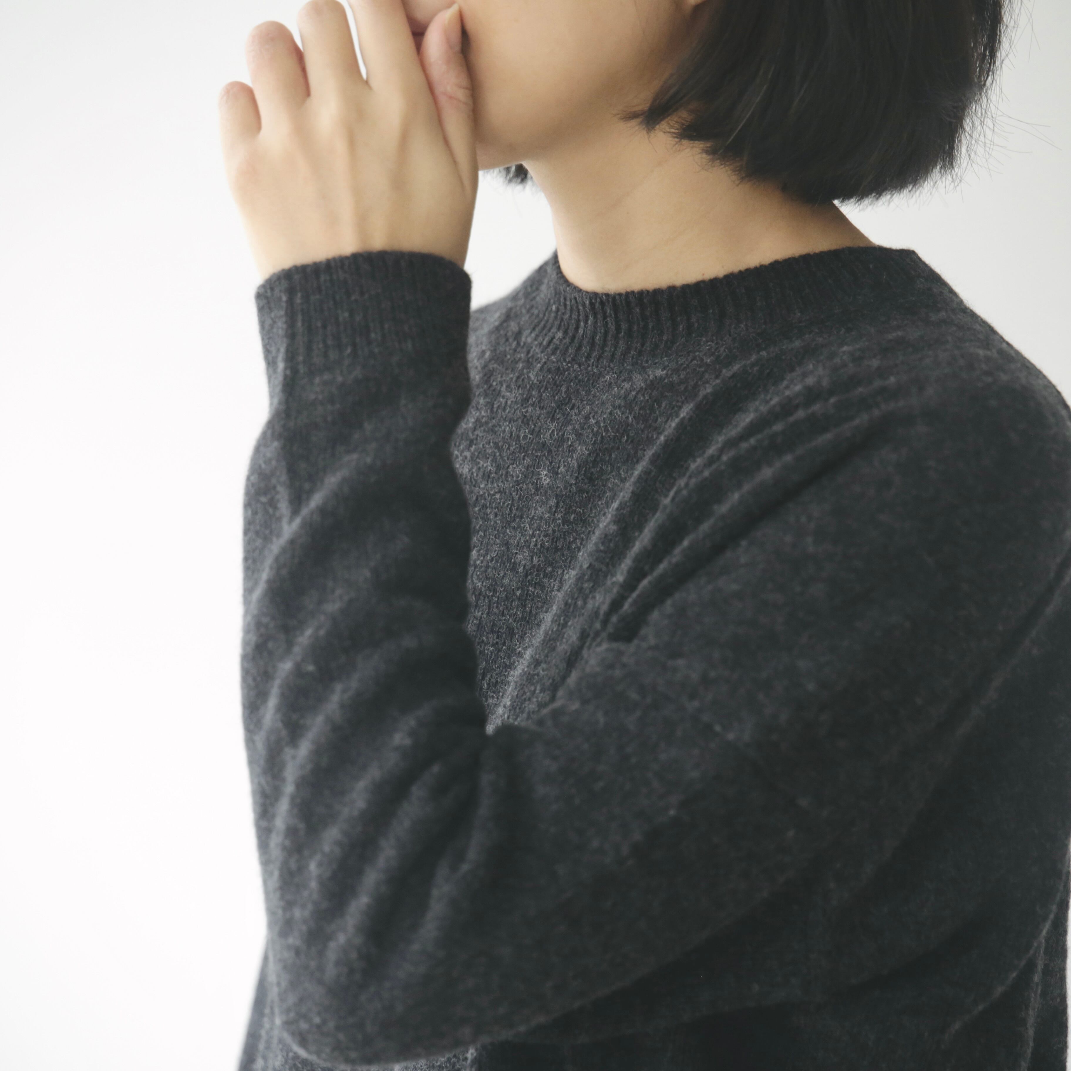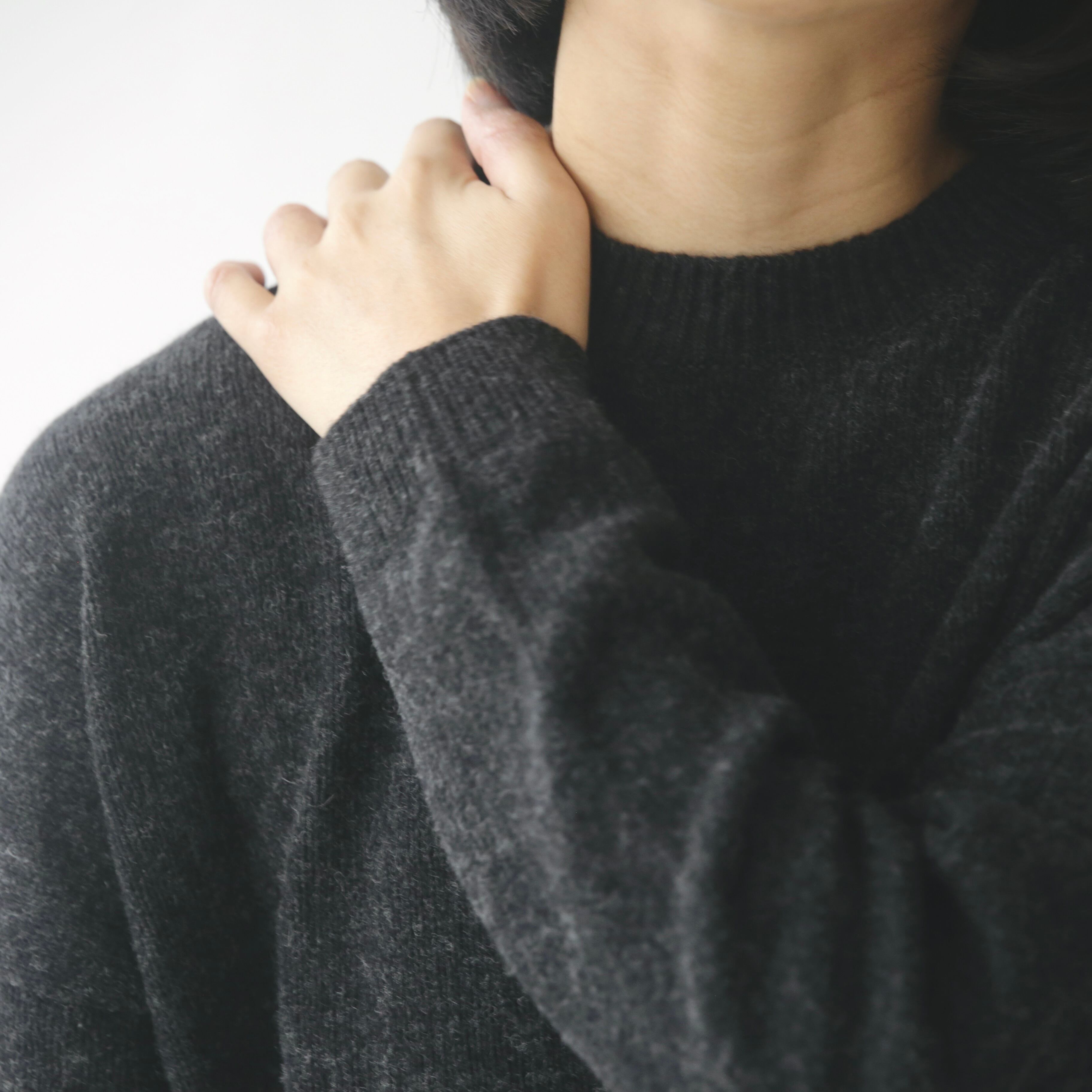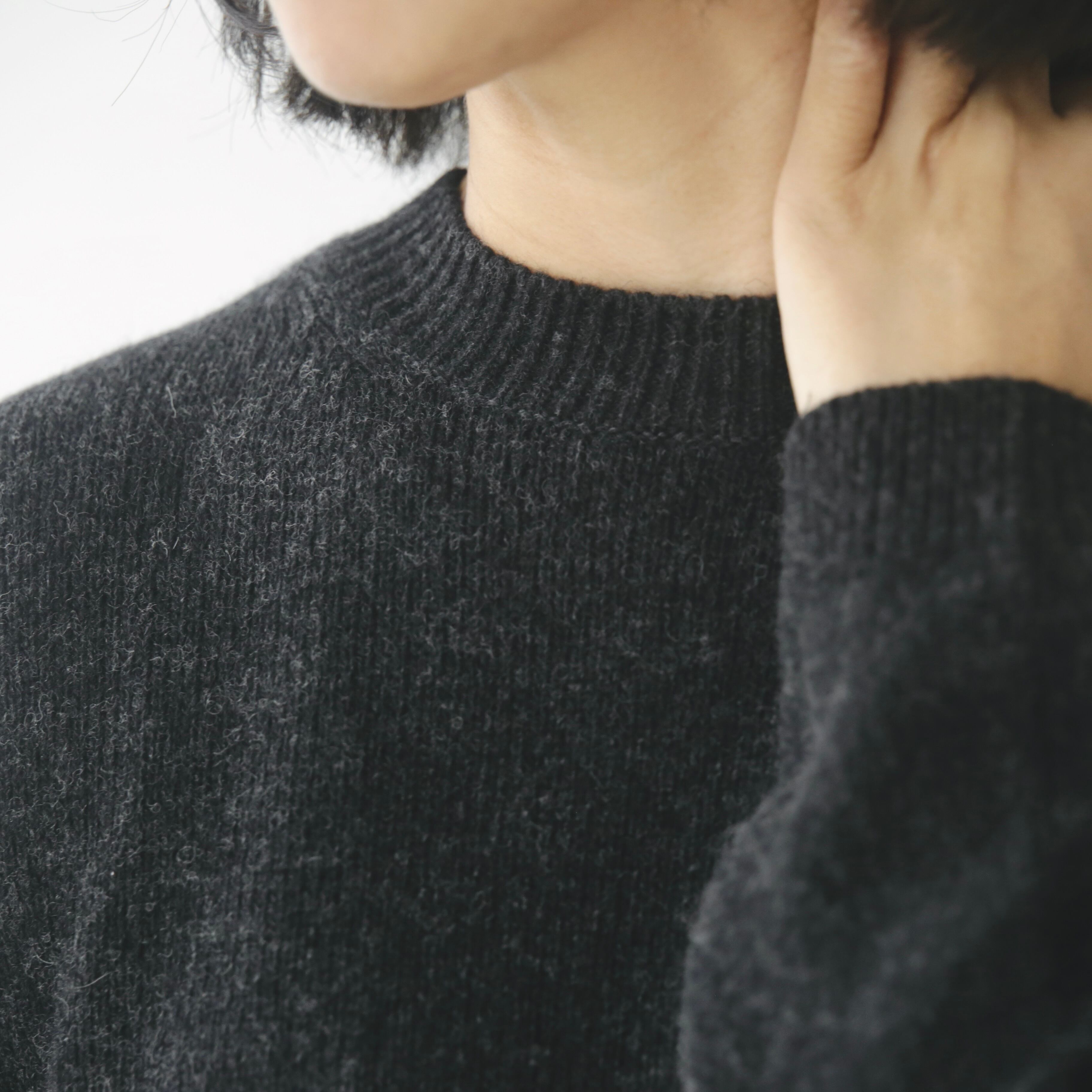 弾力のあるメリノウールとふんわりとした毛がしなやかで優しい肌あたりのブルーフォックスを使用したニット。柔らかいながらも、軽やかで程よい厚みもあるので暖かさはカシミヤに並ぶほどの保温性です。