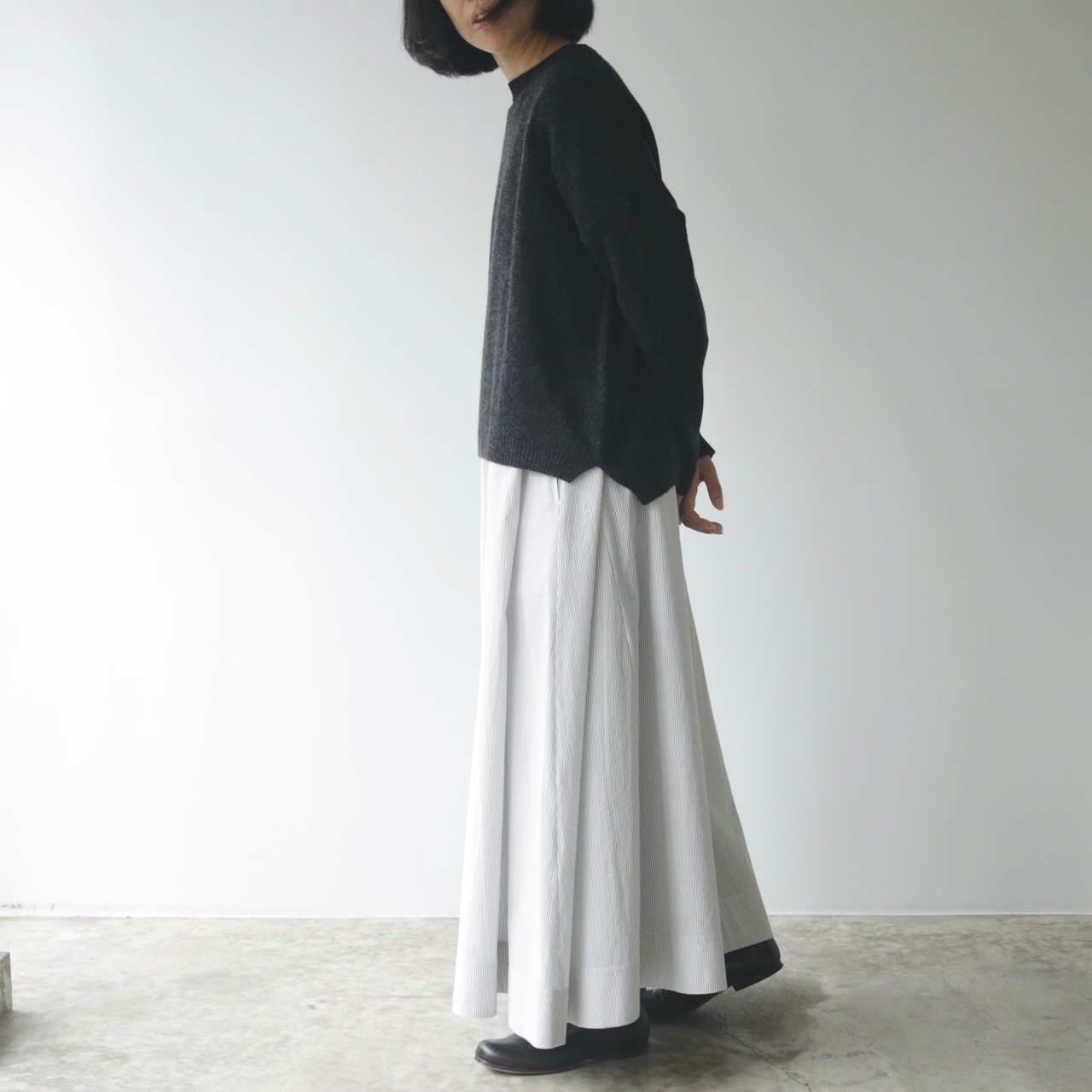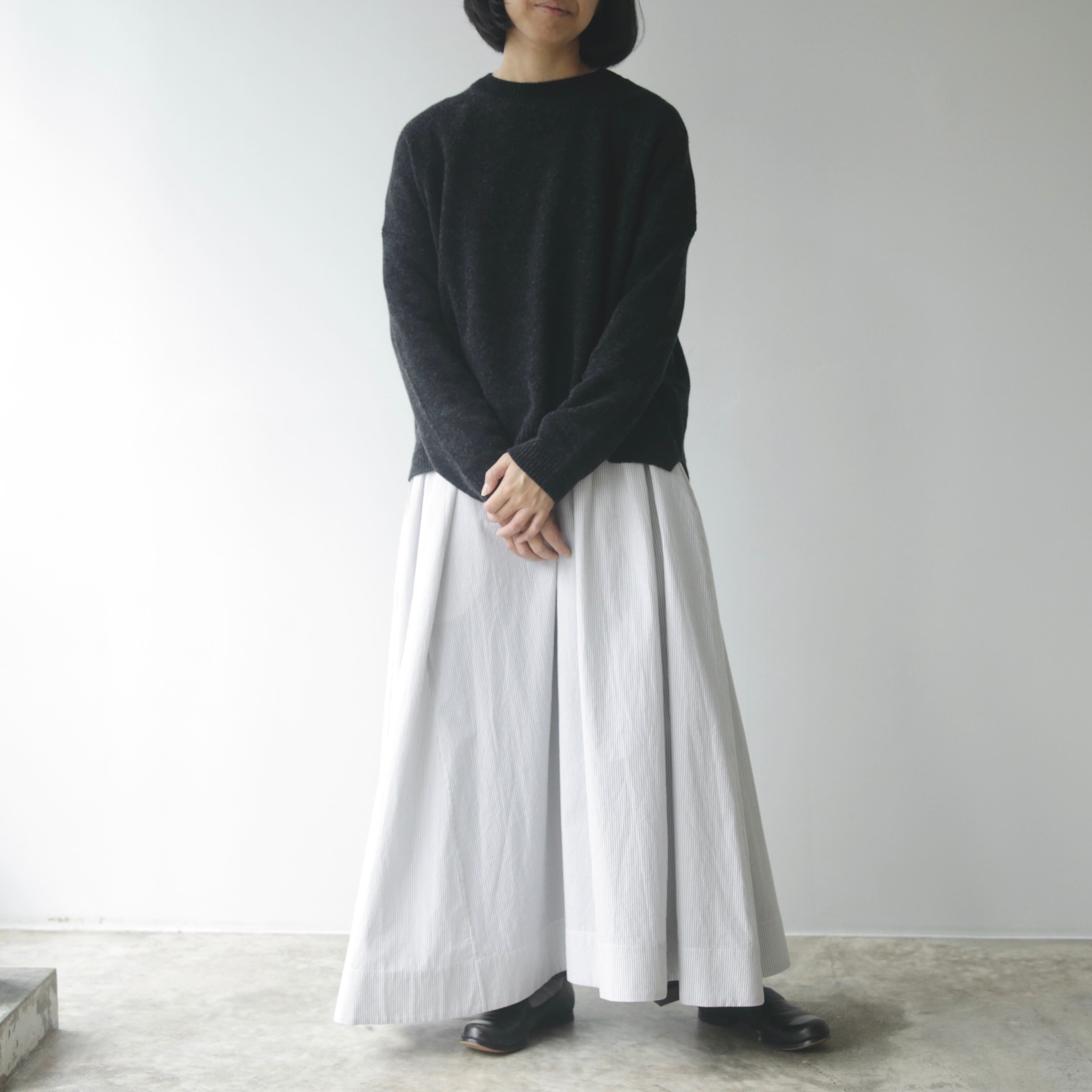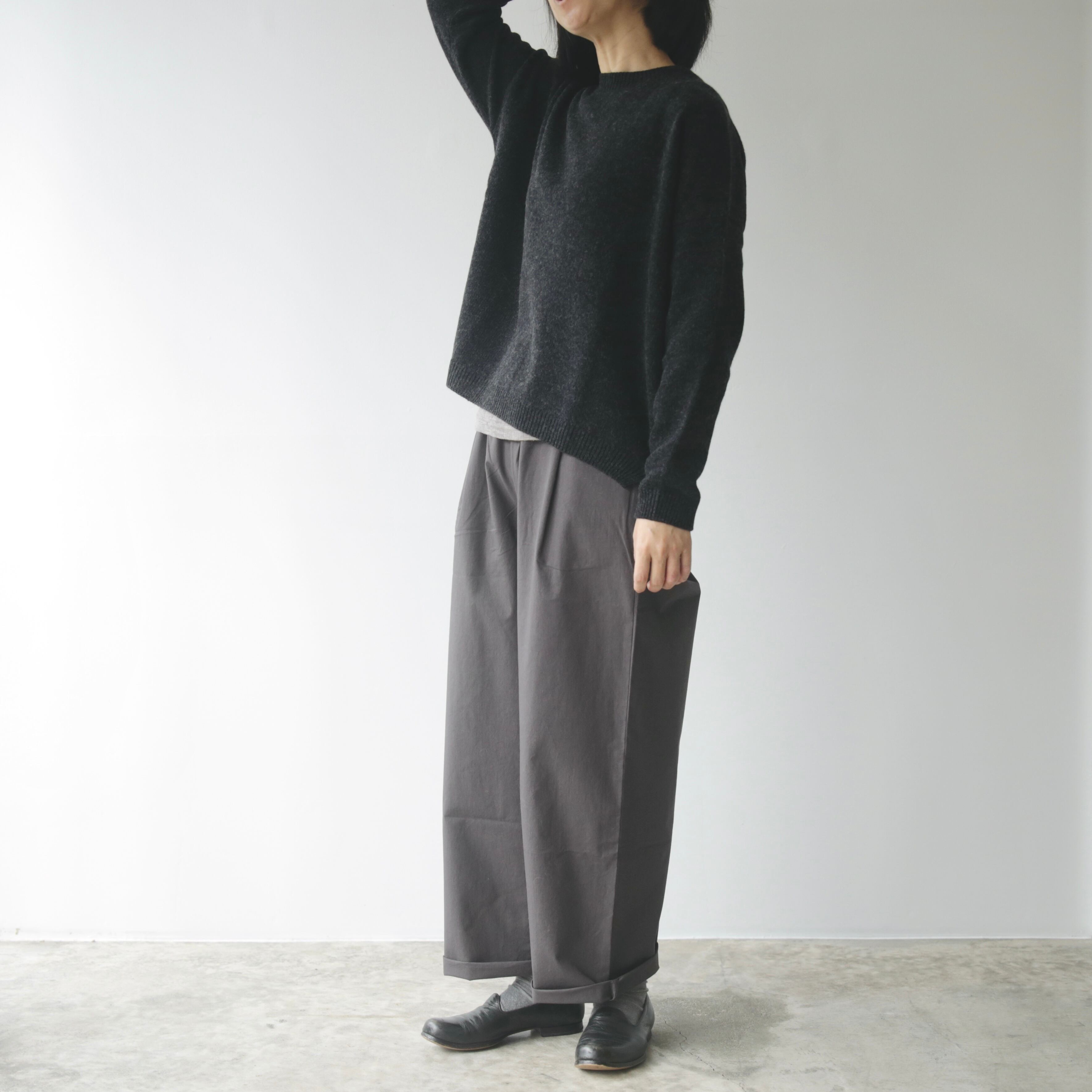 弾力のあるメリノウールとふんわりとした毛がしなやかで優しい肌あたりのブルーフォックスを使用したニット。柔らかいながらも、軽やかで程よい厚みもあるので暖かさはカシミヤに並ぶほどの保温性です。