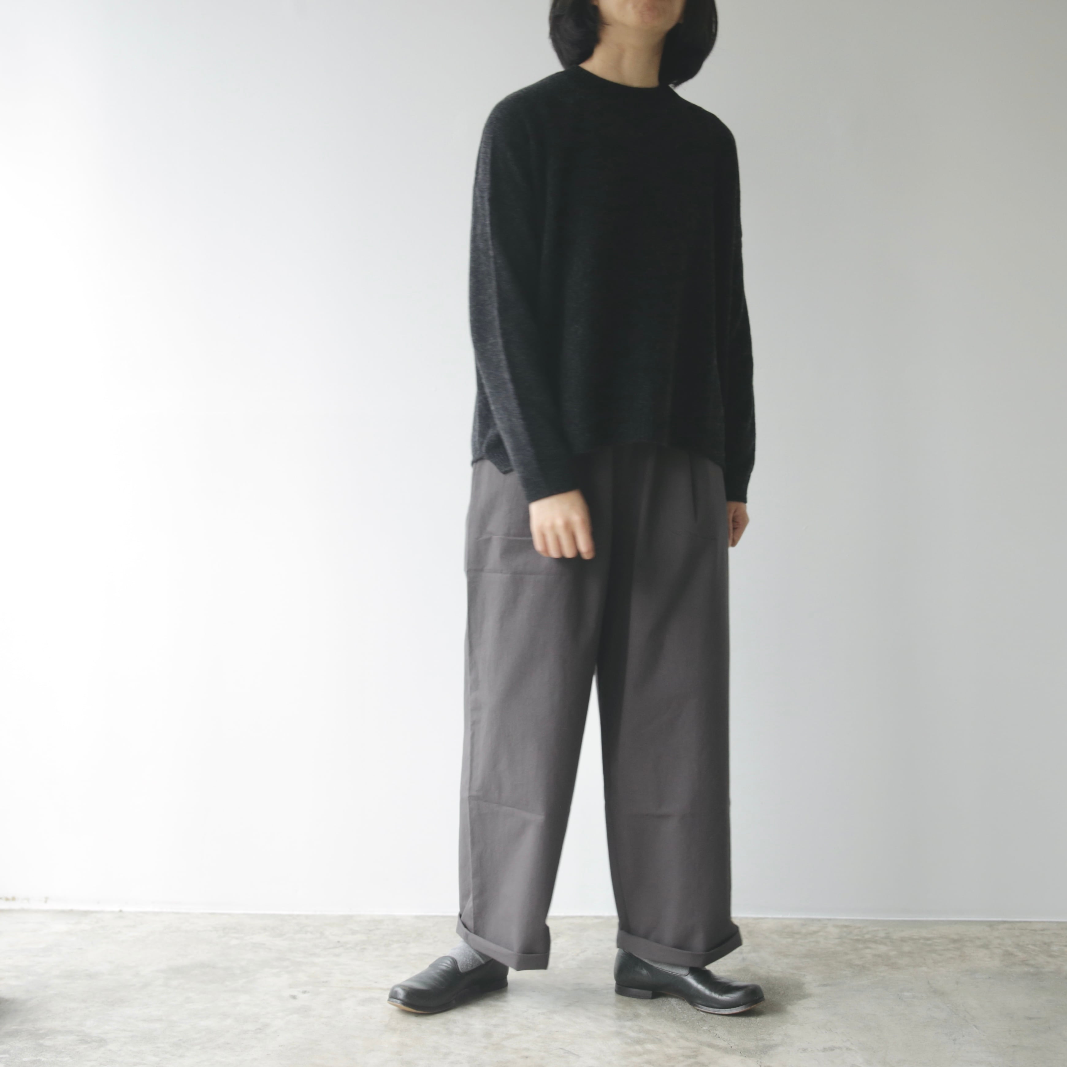 ニュアンスのあるカラーで抜け感を出してくれそうなのは数色の糸を混ぜて染色しているため色に奥行きが出て、ナチュラルなのに深い味わいに。シンプルでベーシックなニットは合わせやすく、何年も着れるため素材の良いものを選びたいですね。