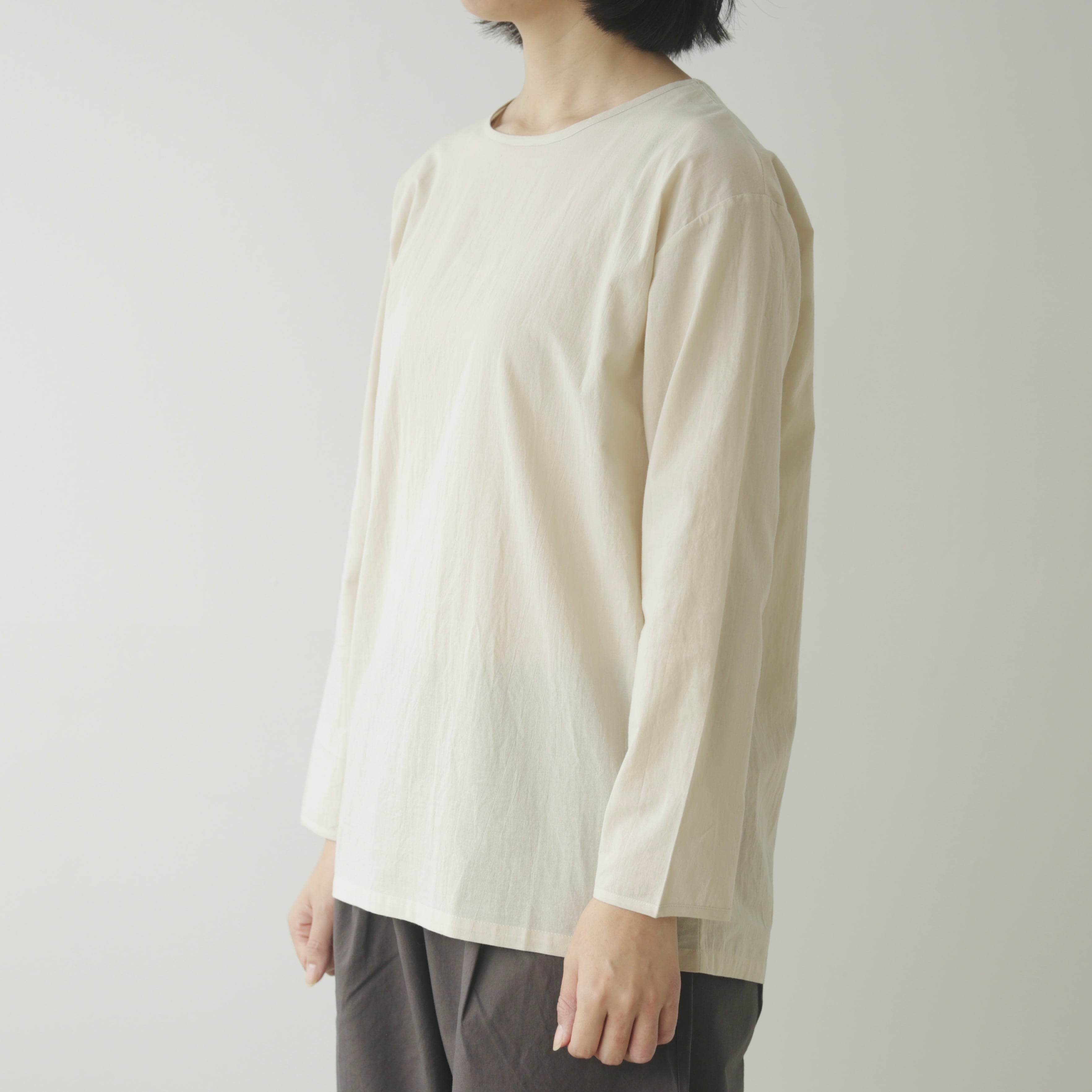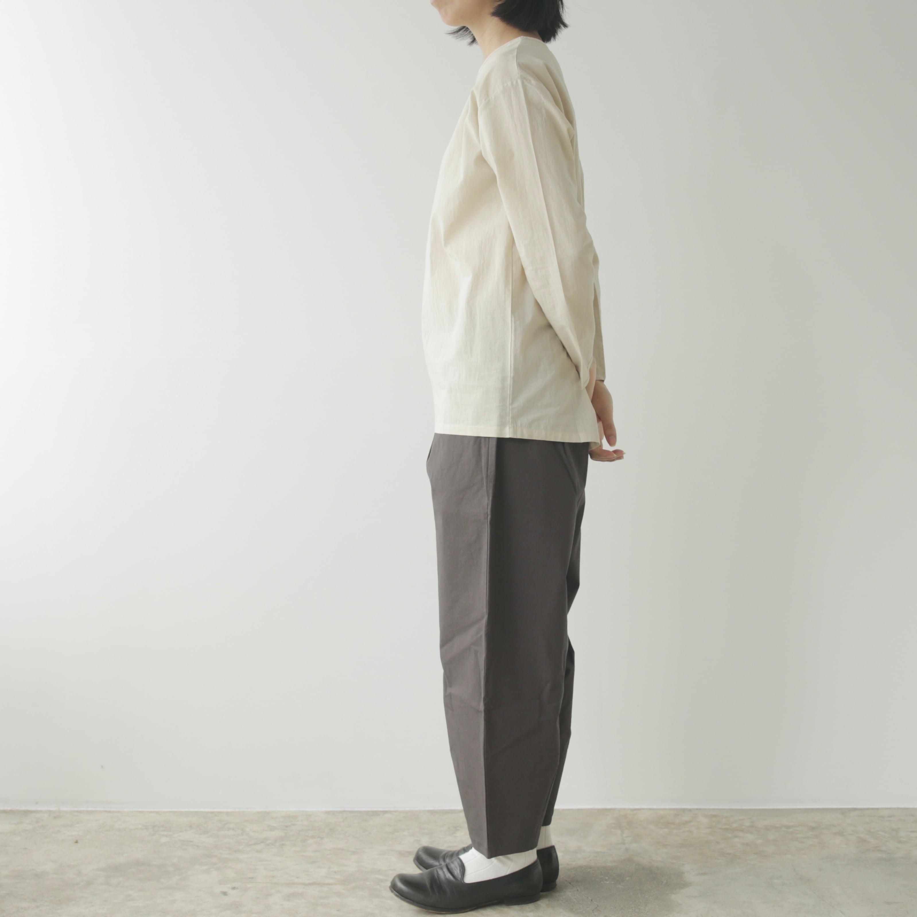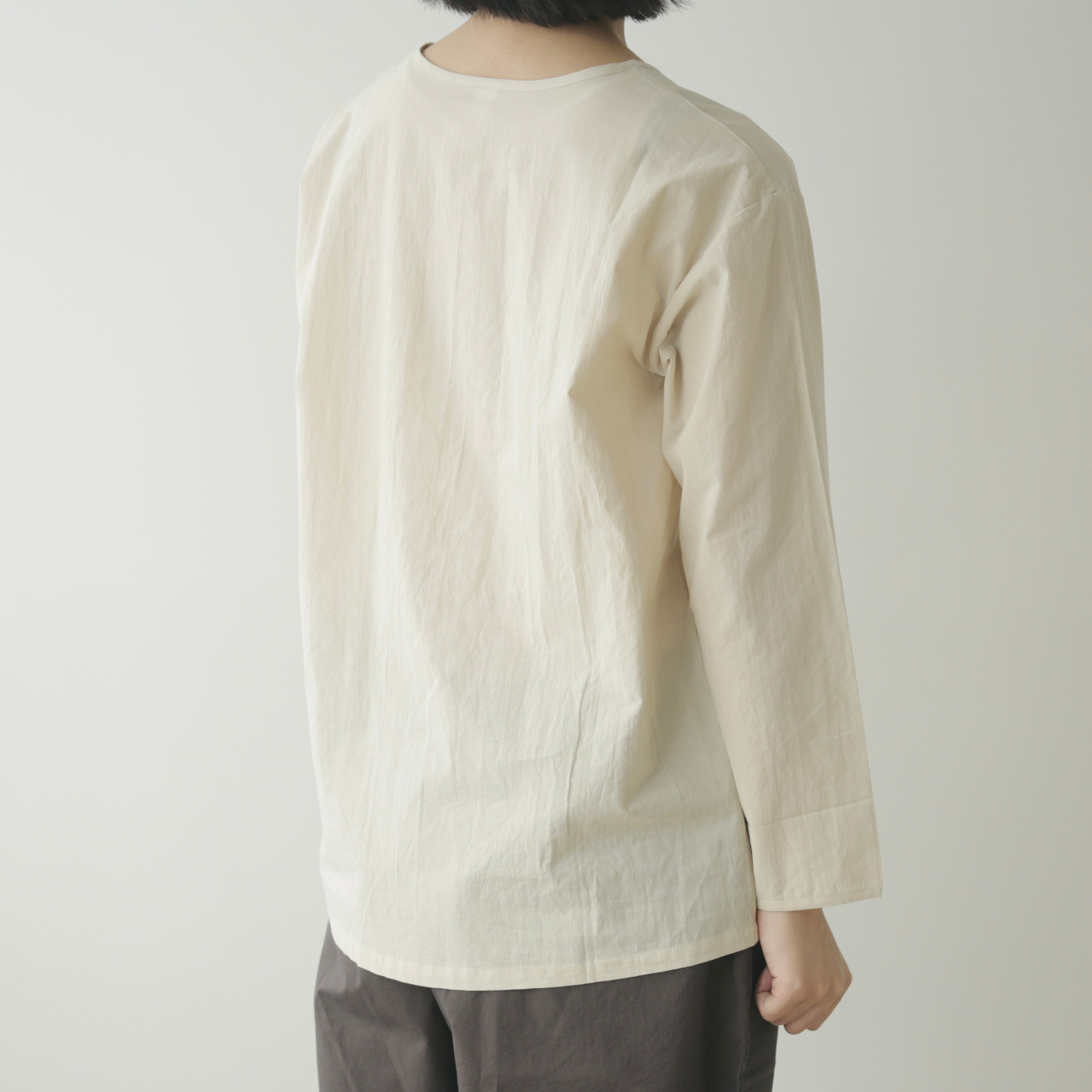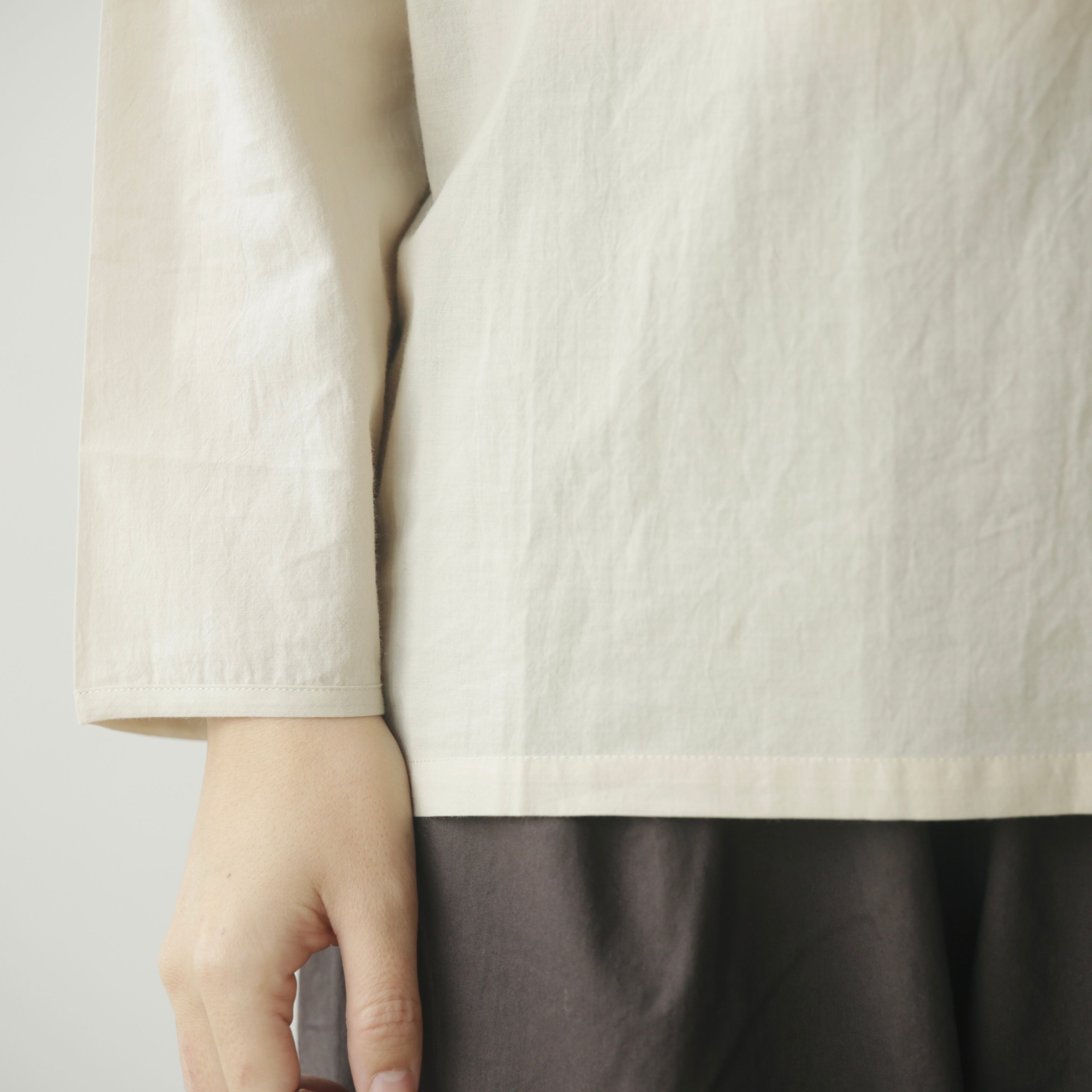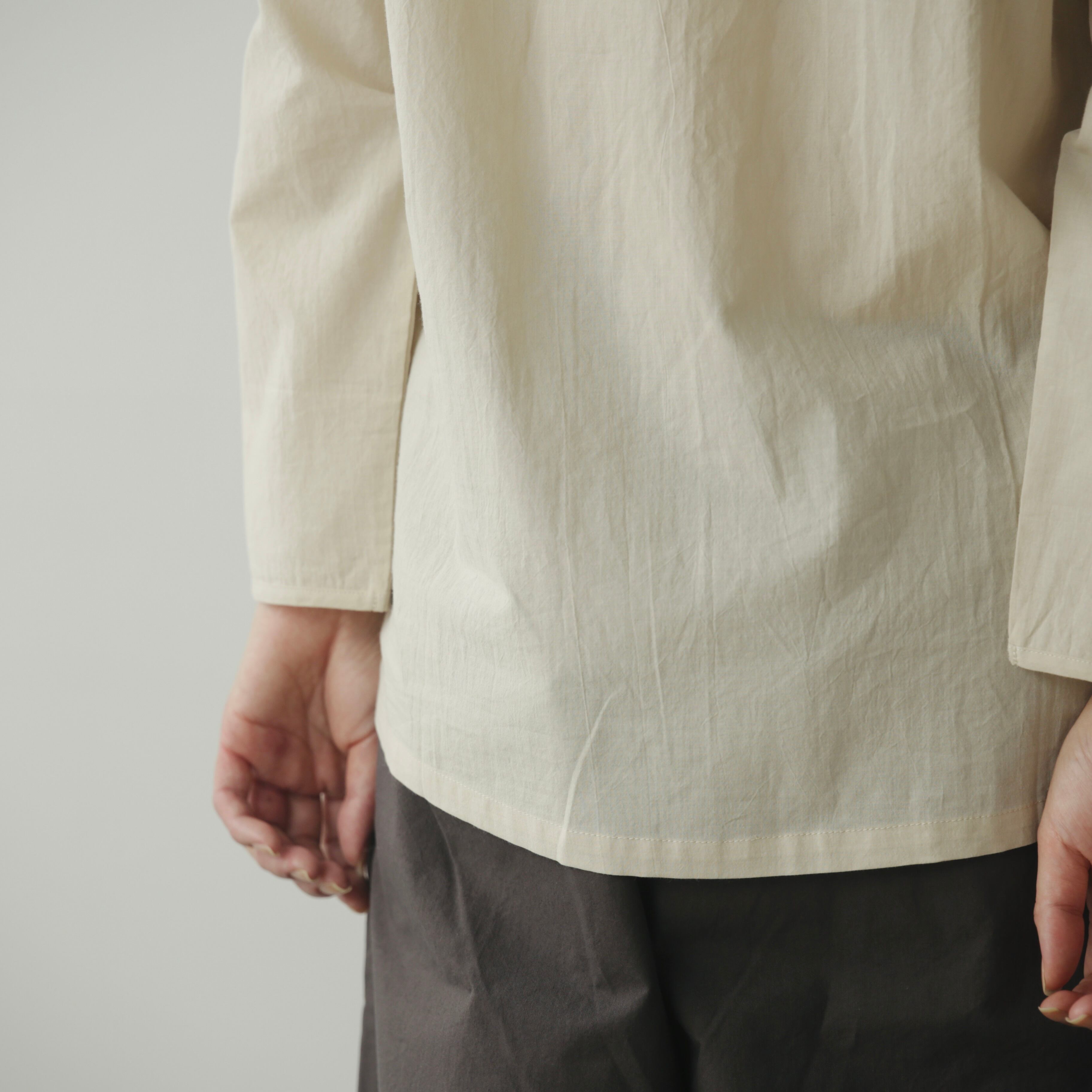 Yoliから、ブランドの定番であるシンプルブラウスが今シーズンも届きました。今季は春夏よりもわずかに厚みを持たせたコットンローン素材。肌に触れたときの軽やかさはそのままに、重ね着やニットのインナーとしても頼れる一枚に仕上がっています。