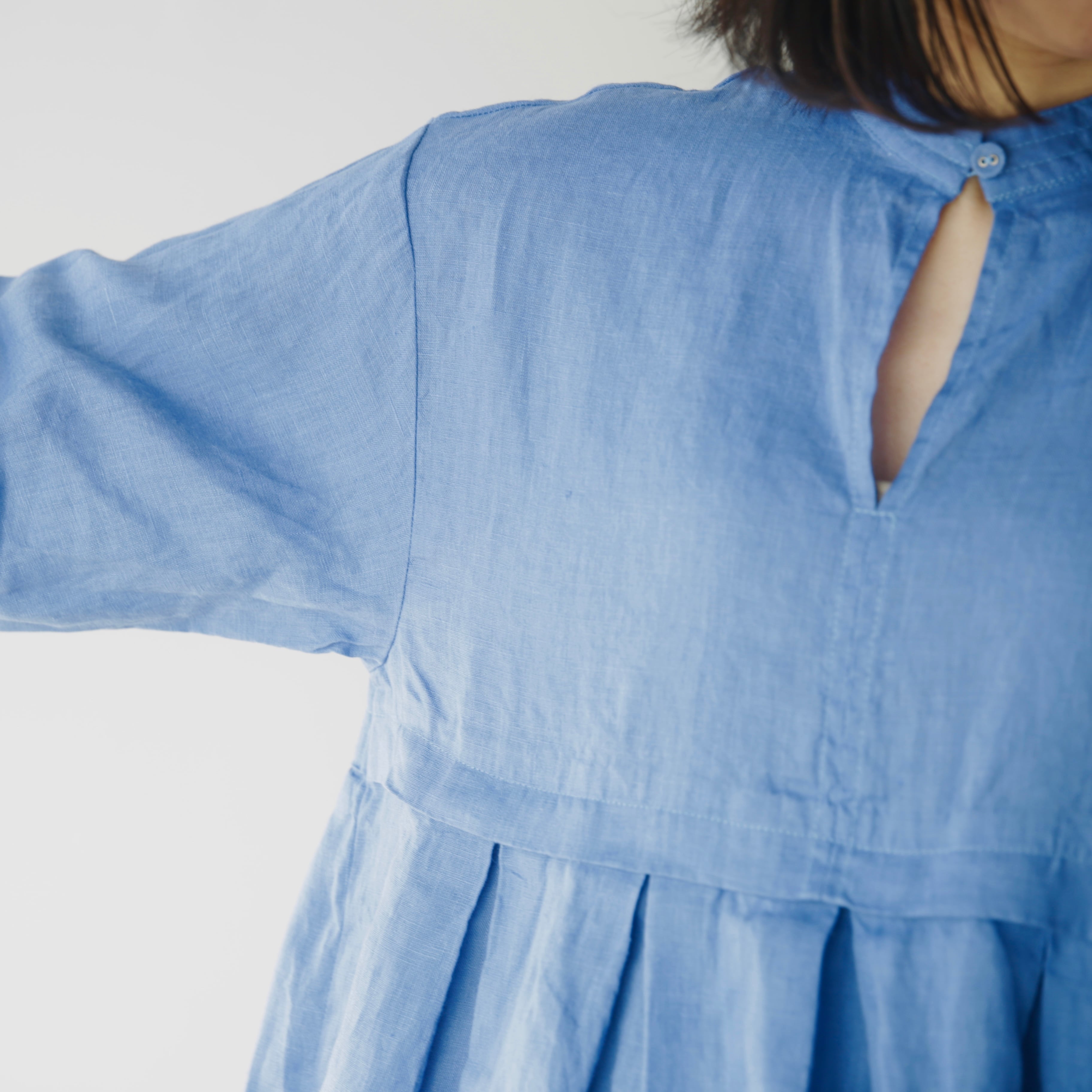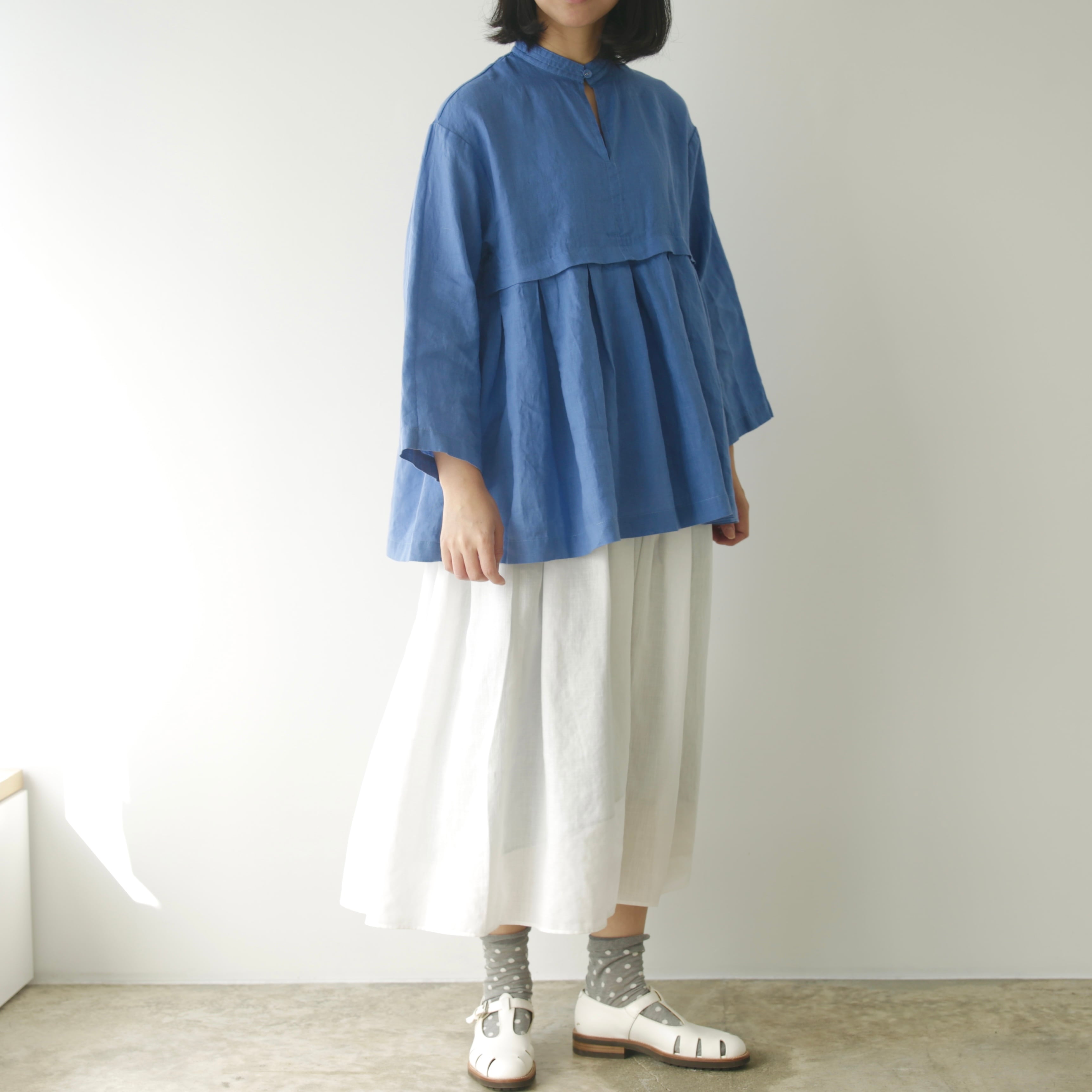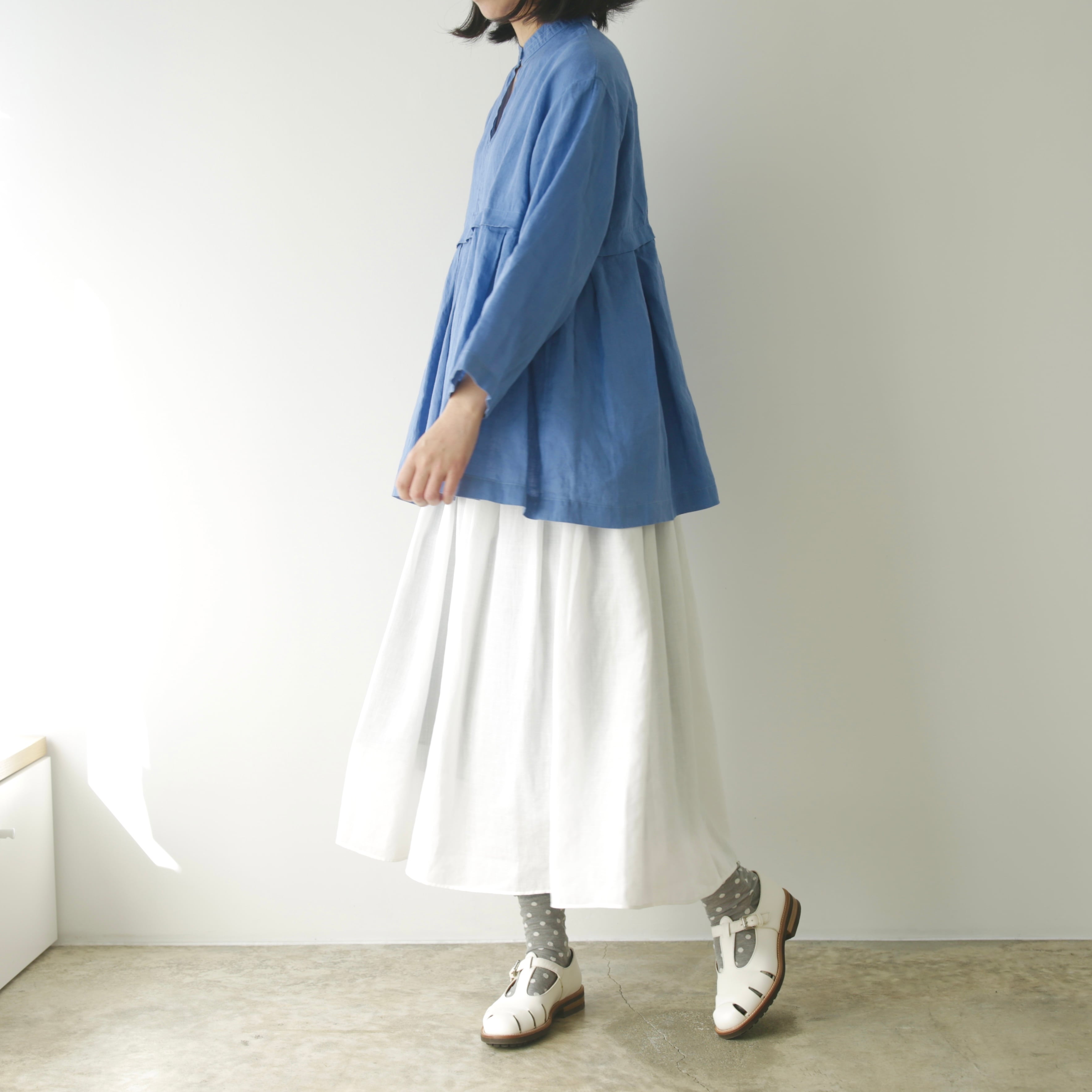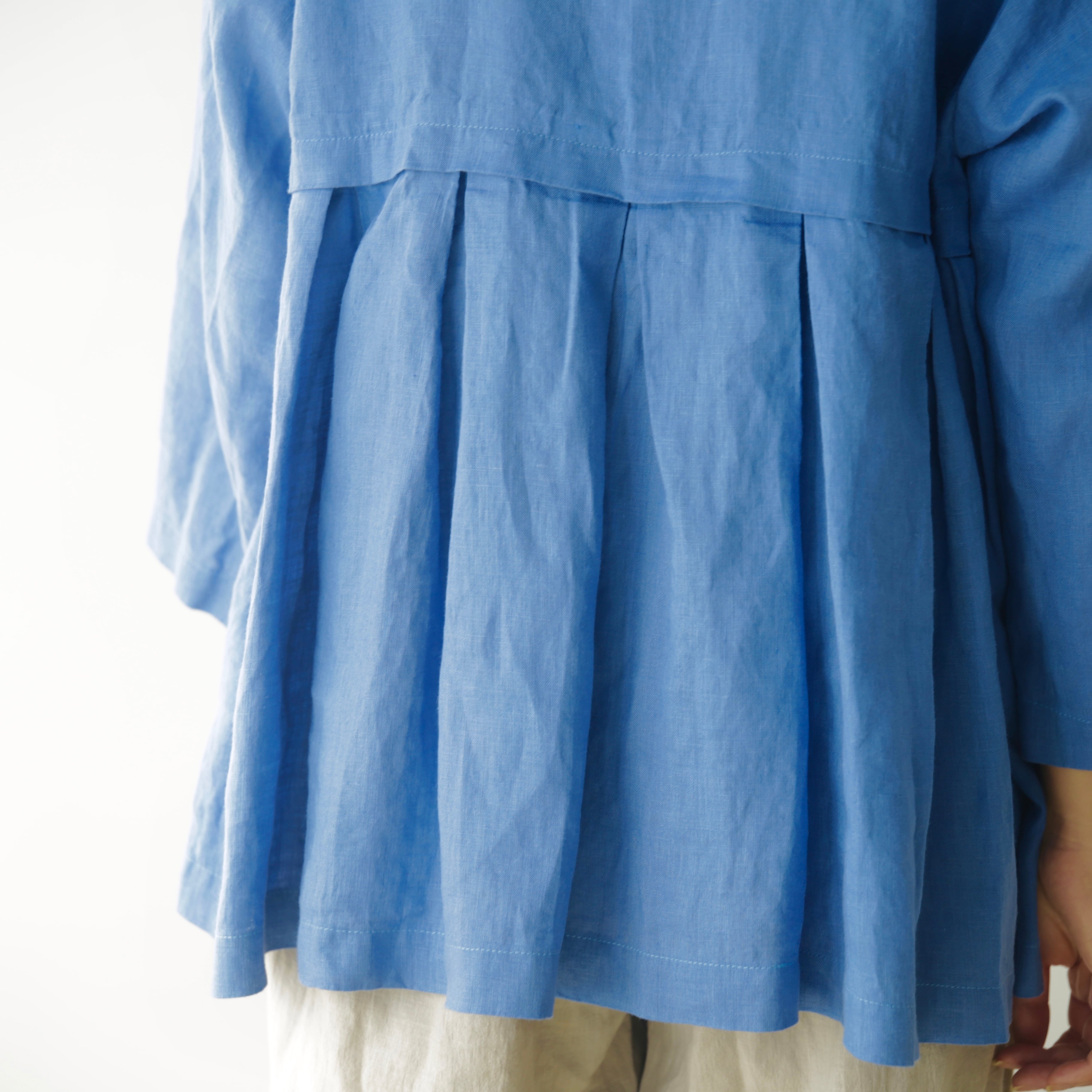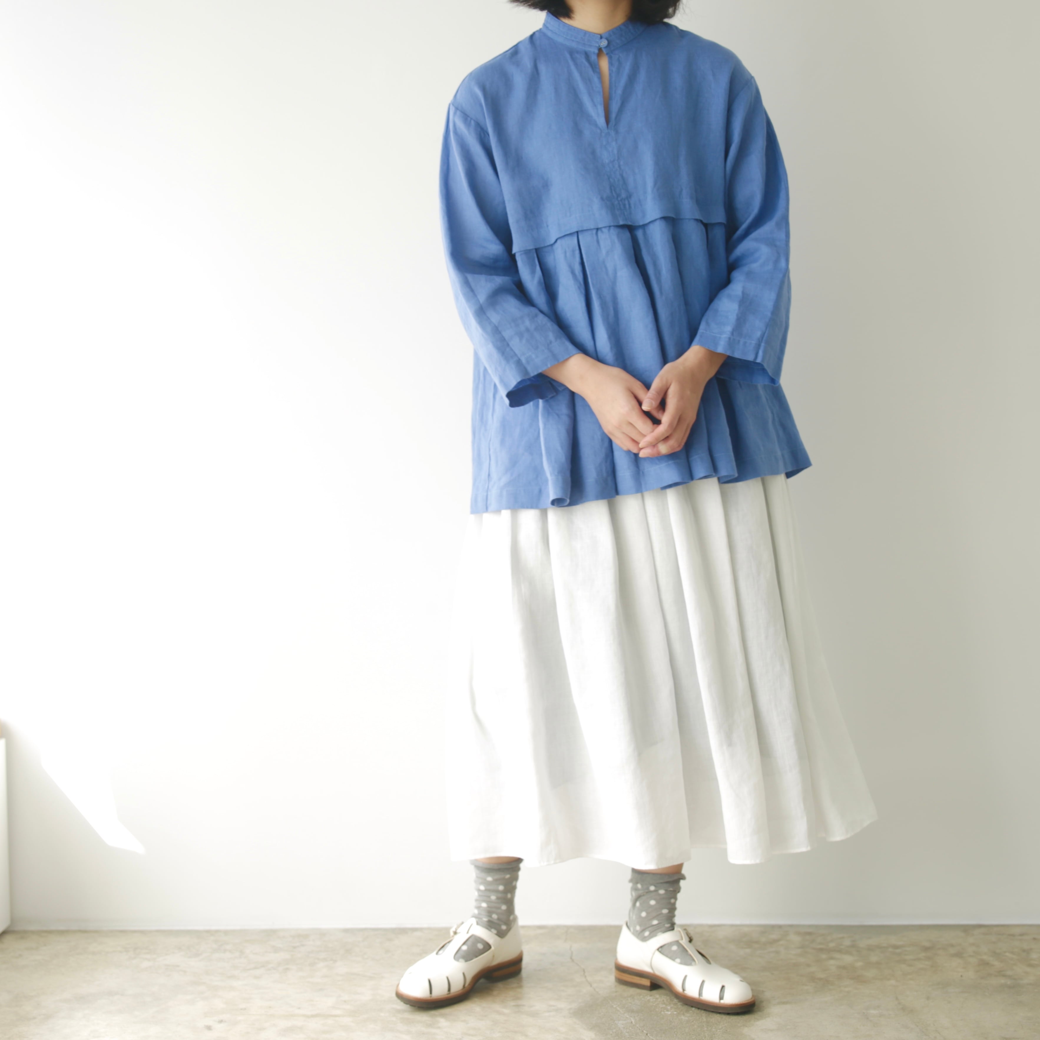 フォグリネンワークのリネンは、厳選されたリトアニア産の素材を使用。ご自宅で気負わずお洗濯ができ、洗うたびに少しずつ柔らかく、くたっと暮らしに馴染んでいきます。服と一緒に、日々の時間も重ねていけたら嬉しいブラウスです。