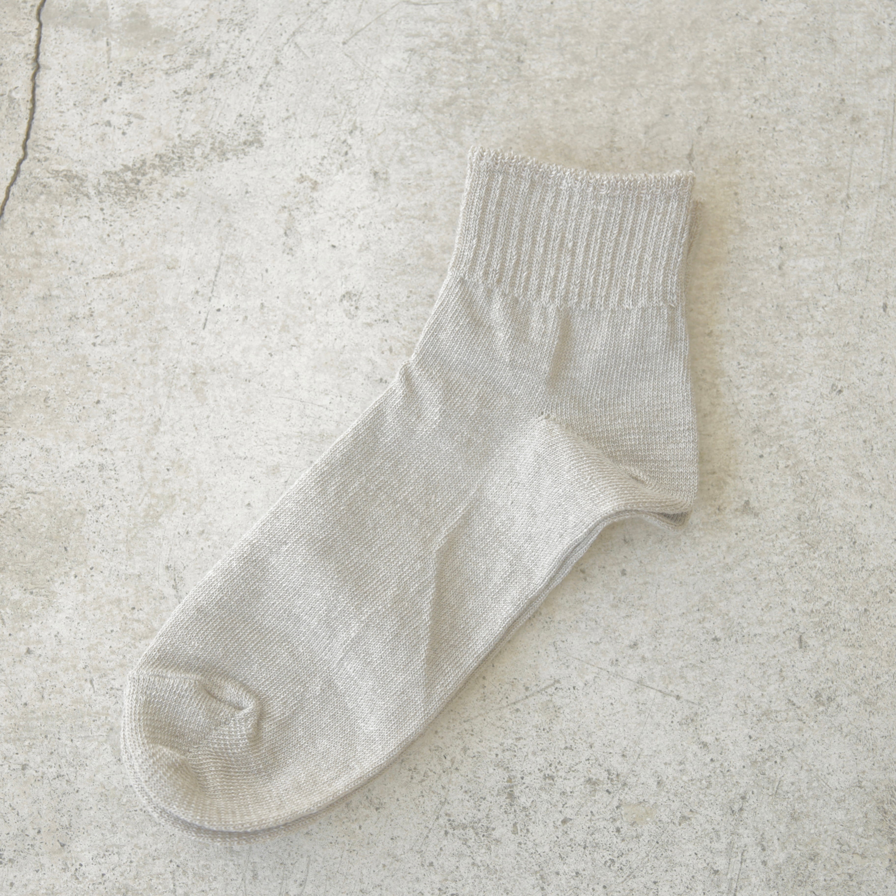 シャリっとした履き心地のリネンソックスは肌離れがよく、真夏でもさらりと快適。リネンは吸湿性と発散性に優れているため、汗をかいてもべたつきにくく、暑い季節でも足元を心地よく保ってくれます。
