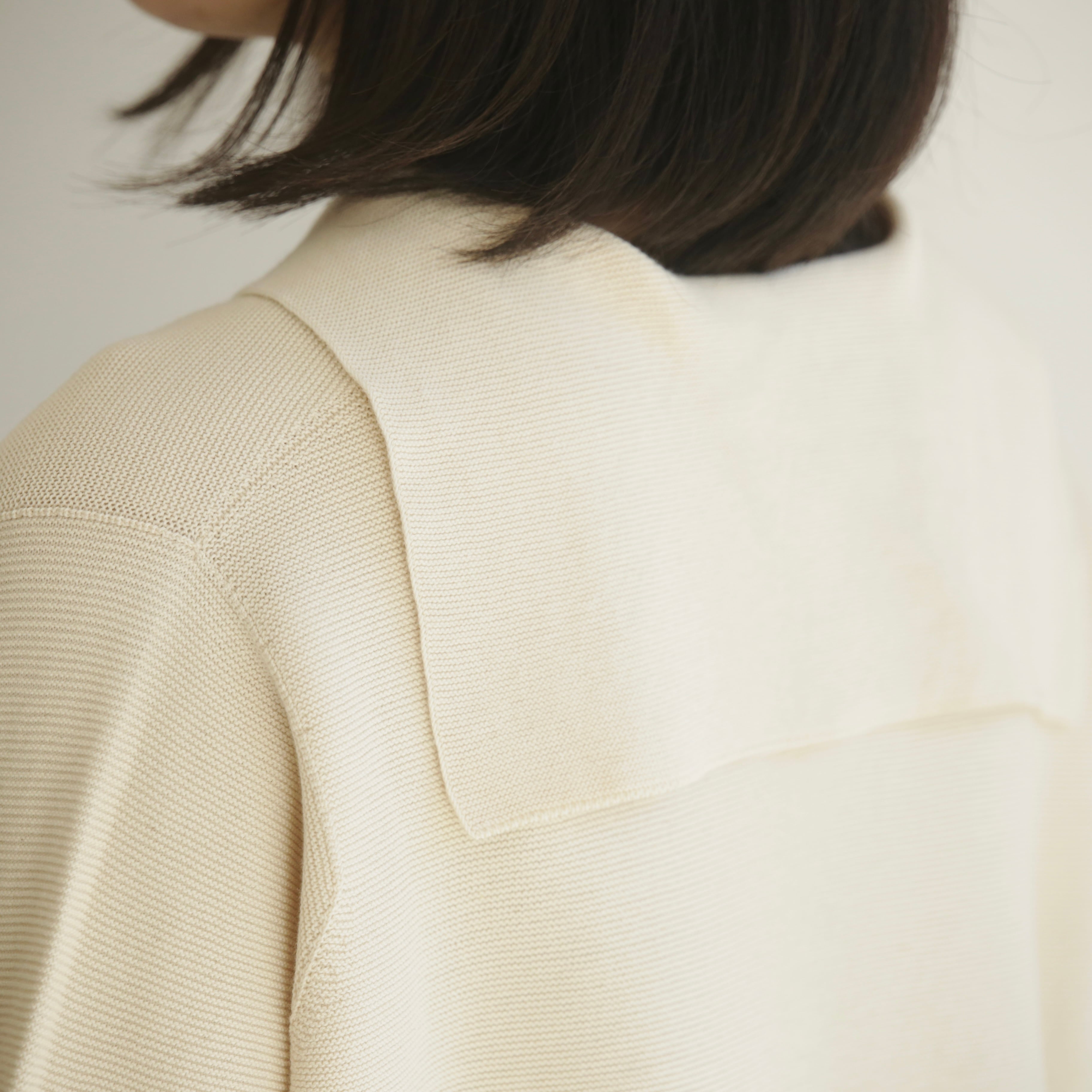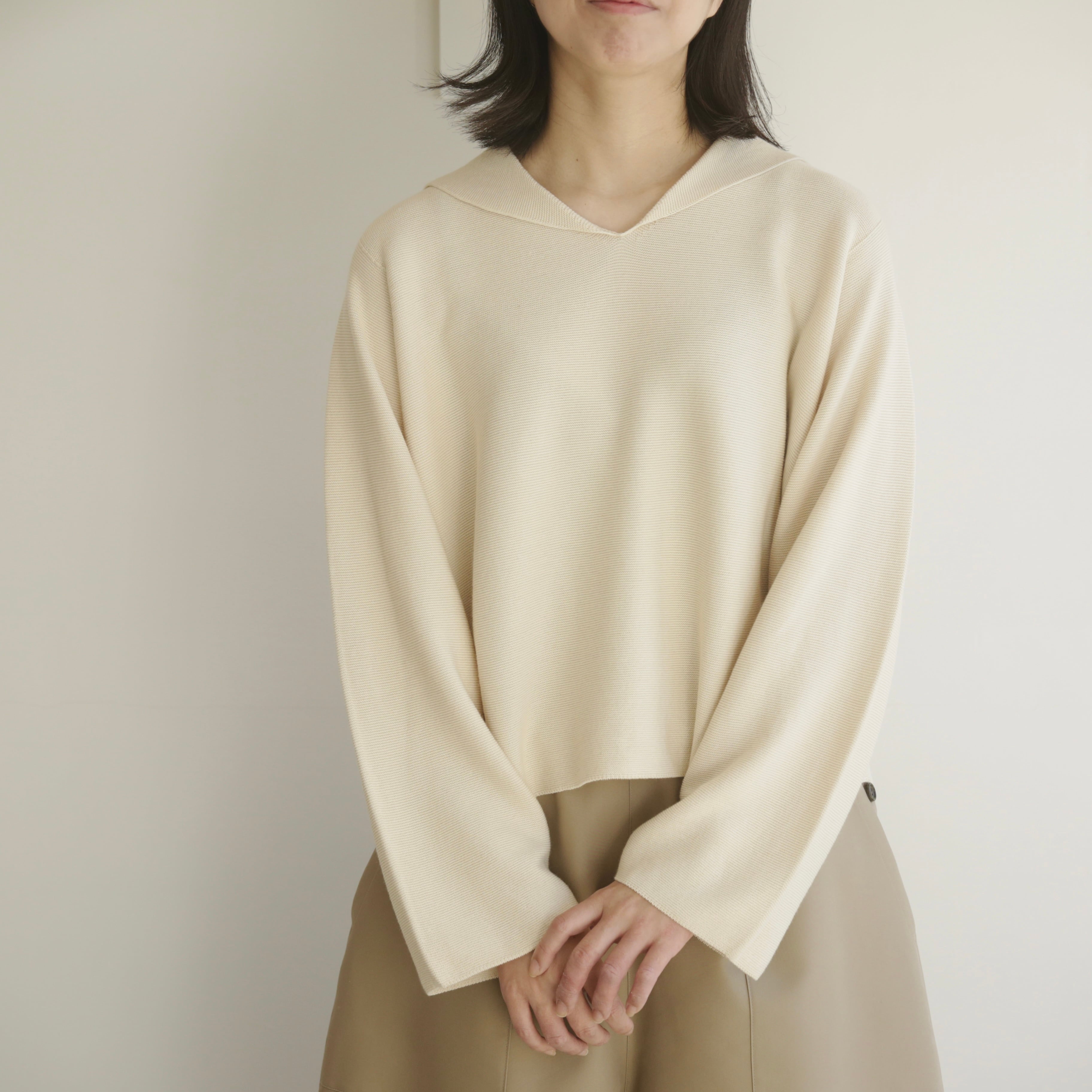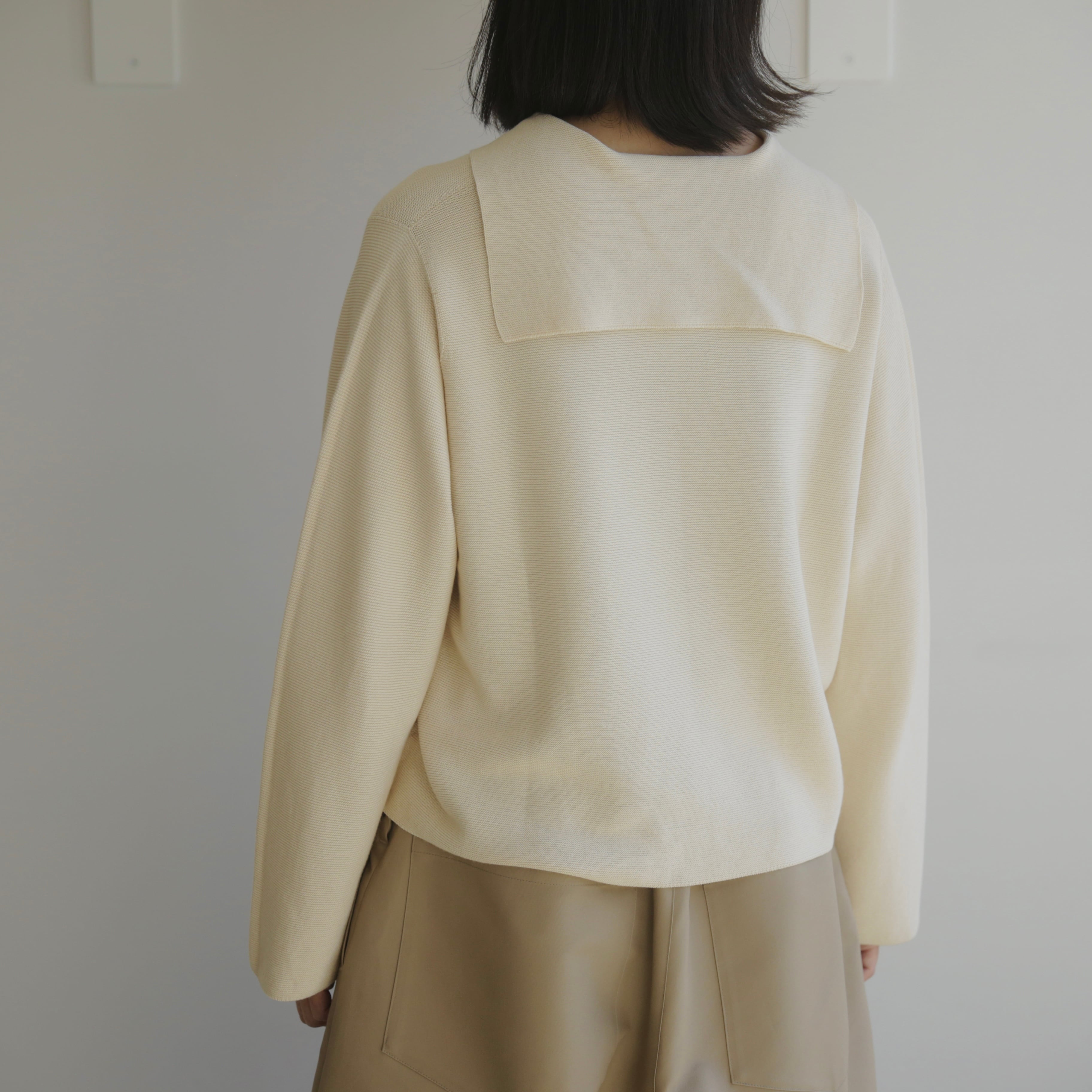 どこか懐かしさを感じさせる、セーラーカラーのニット。 後ろ姿に心惹かれてしまう一枚です。