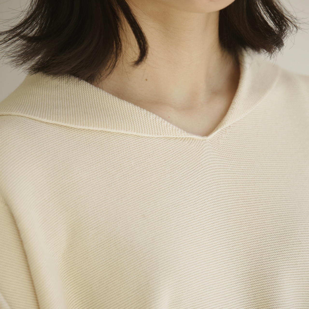 ほどよく開いたネックラインが首元をすっきりと見せ、 やわらかなラインがさりげなく品のよさを添えてくれます。