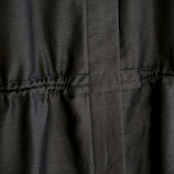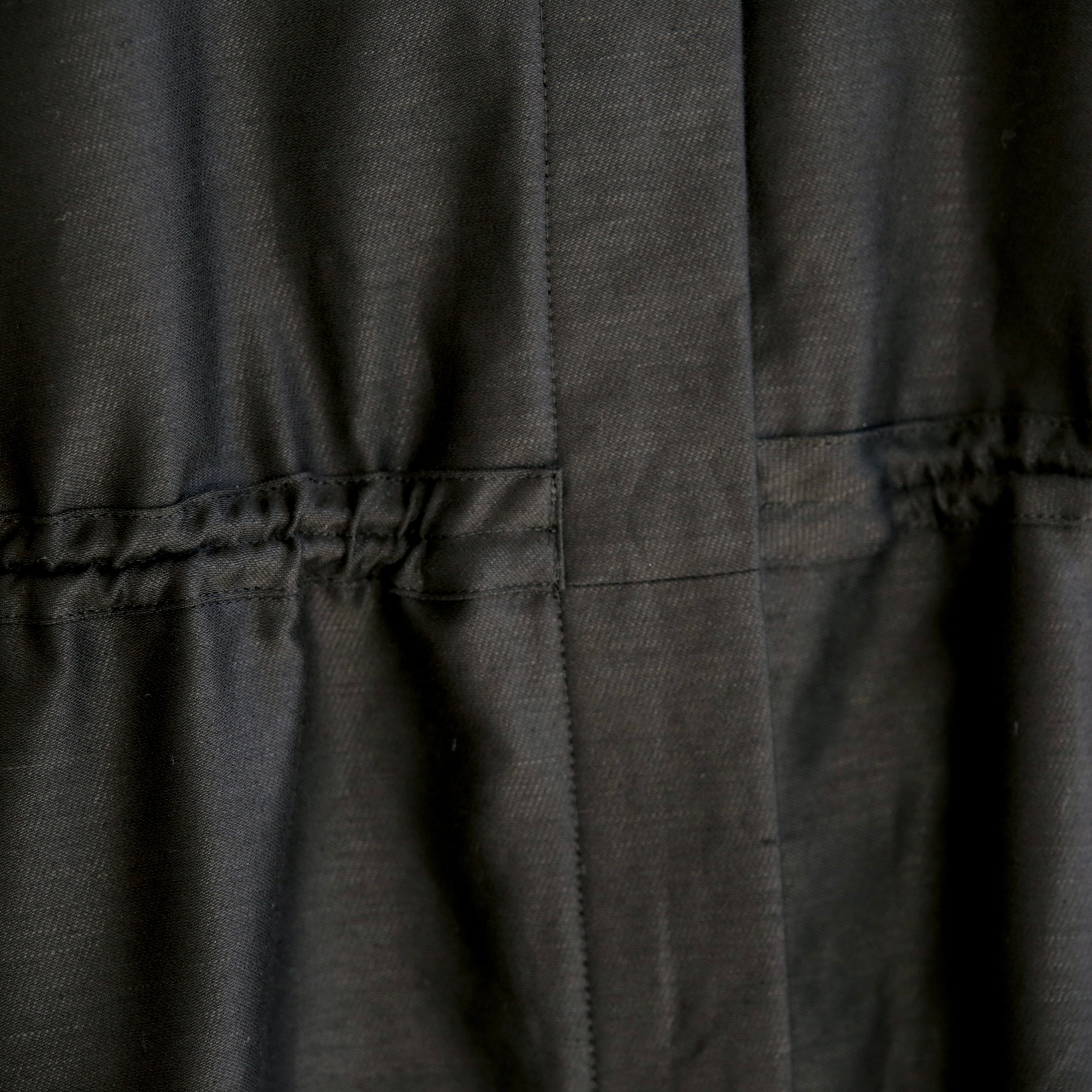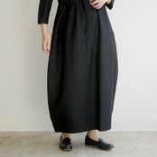 ウエストに通された細い紐でギャザーの分量を調整できるため、ボリュームの出し方やシルエットのニュアンスも自在に変えることができます。