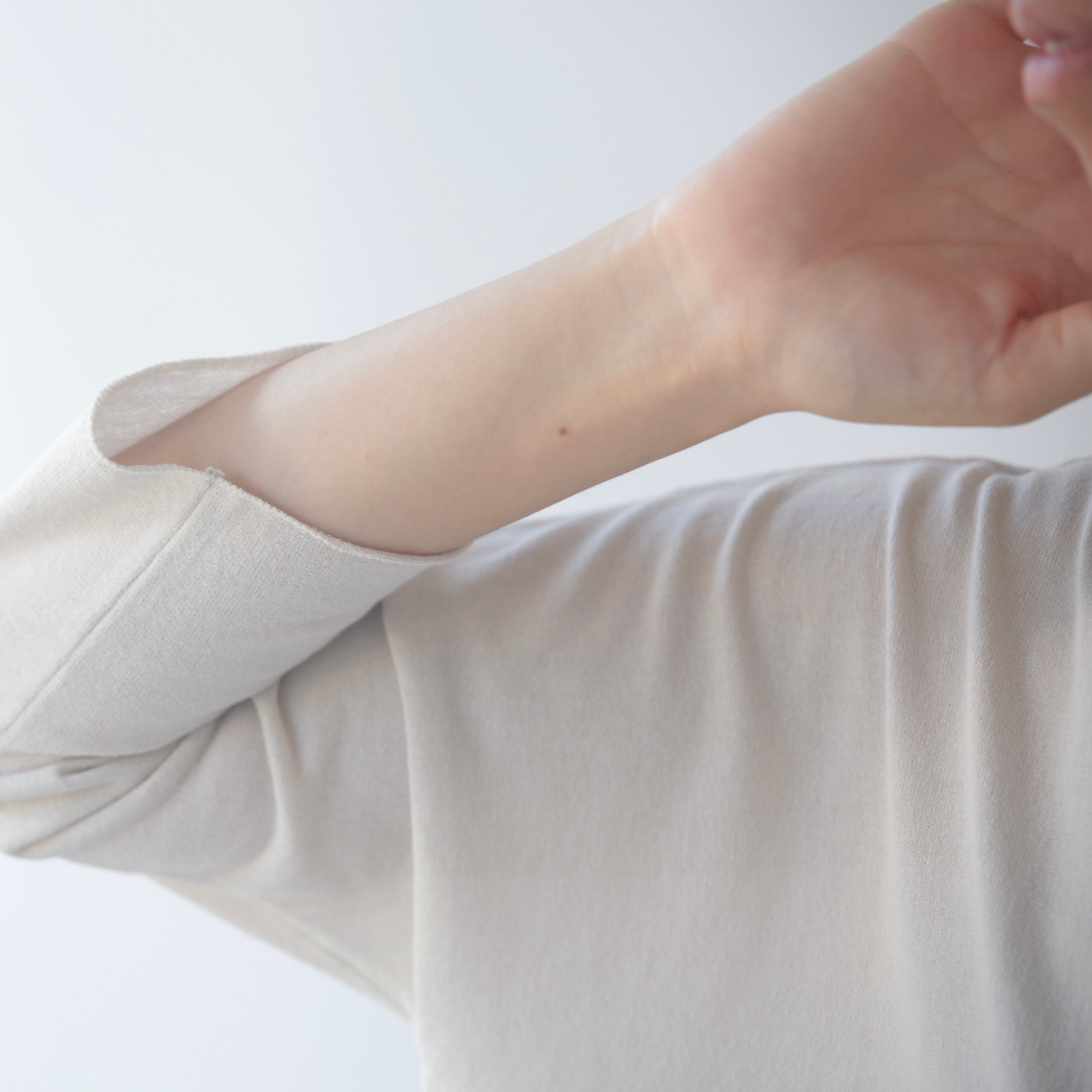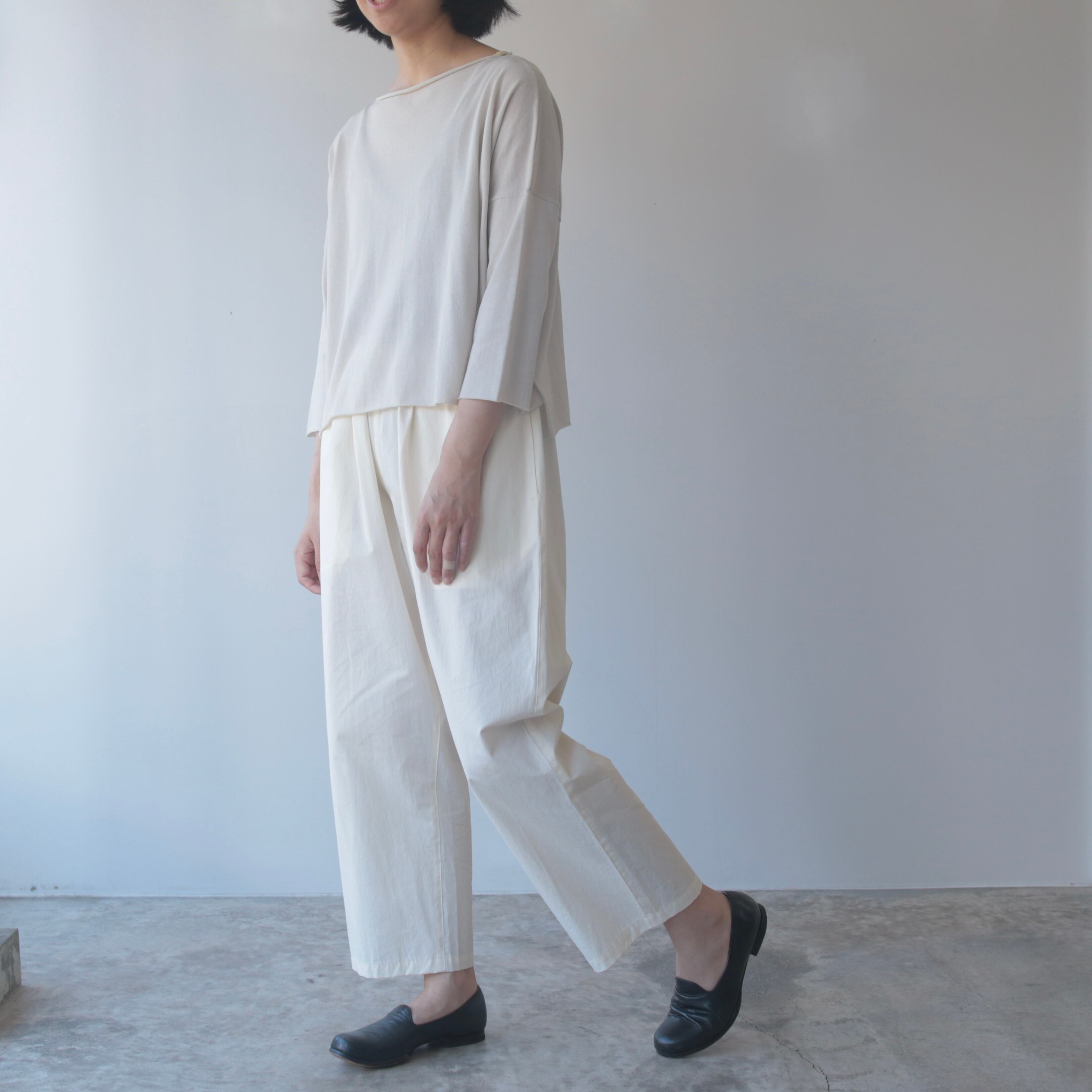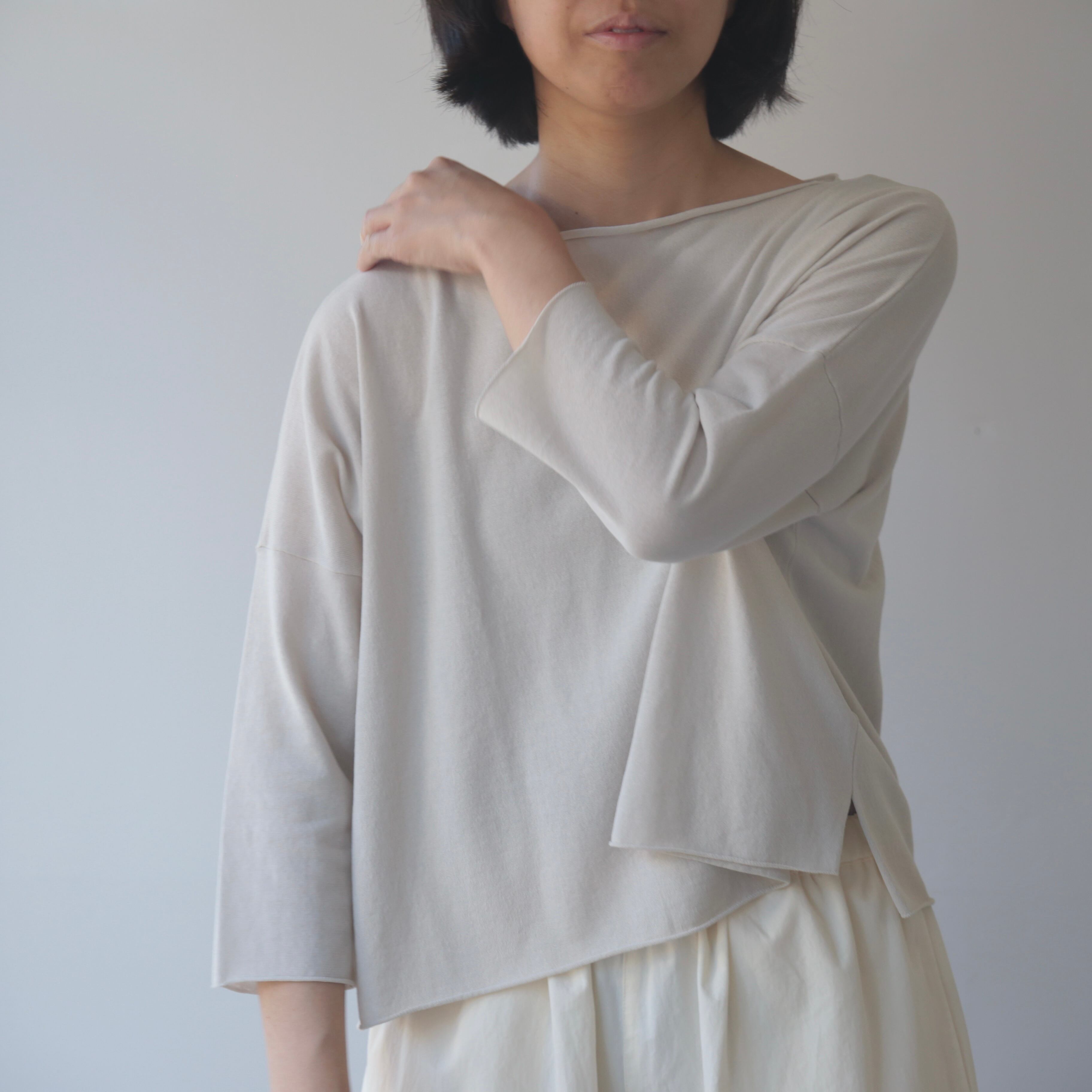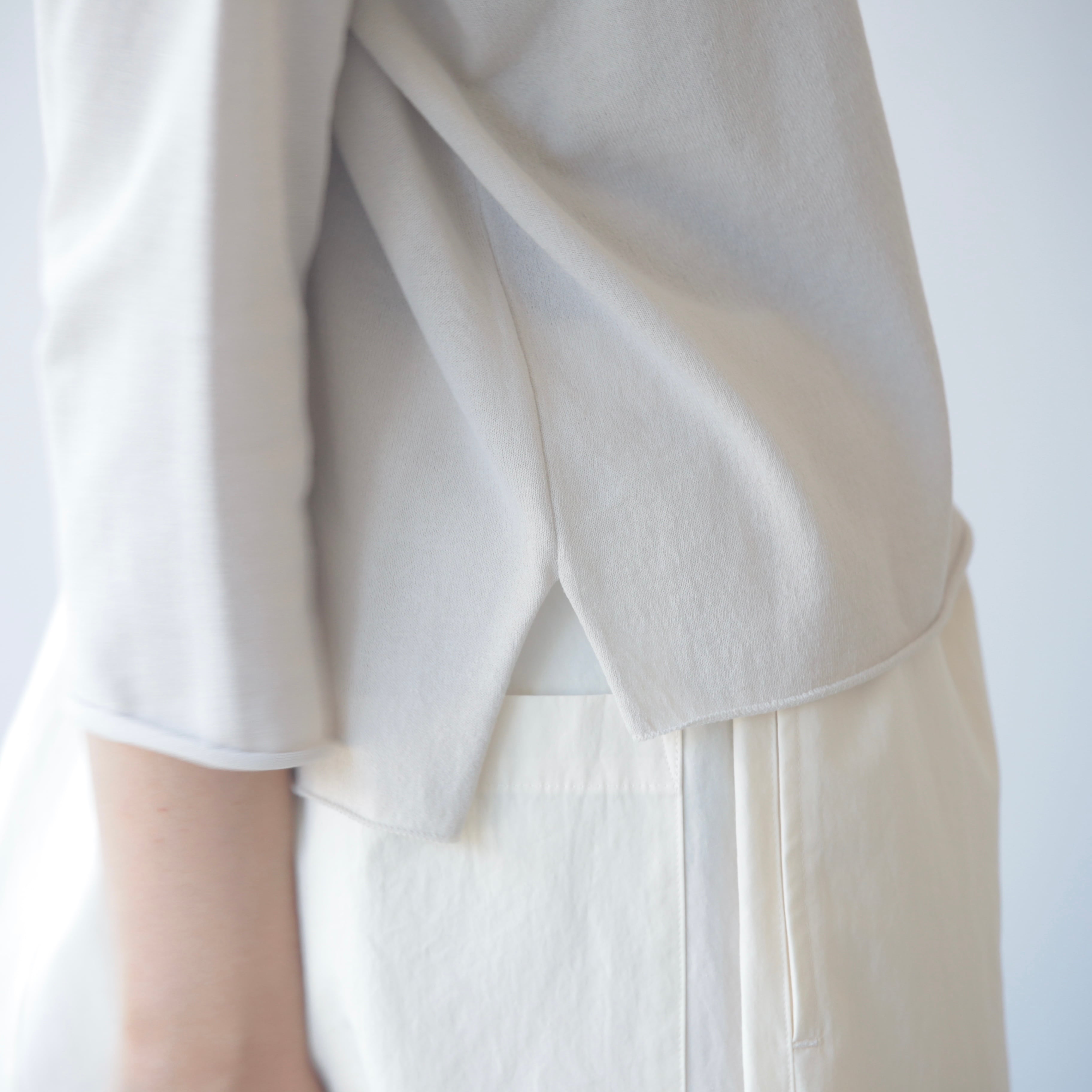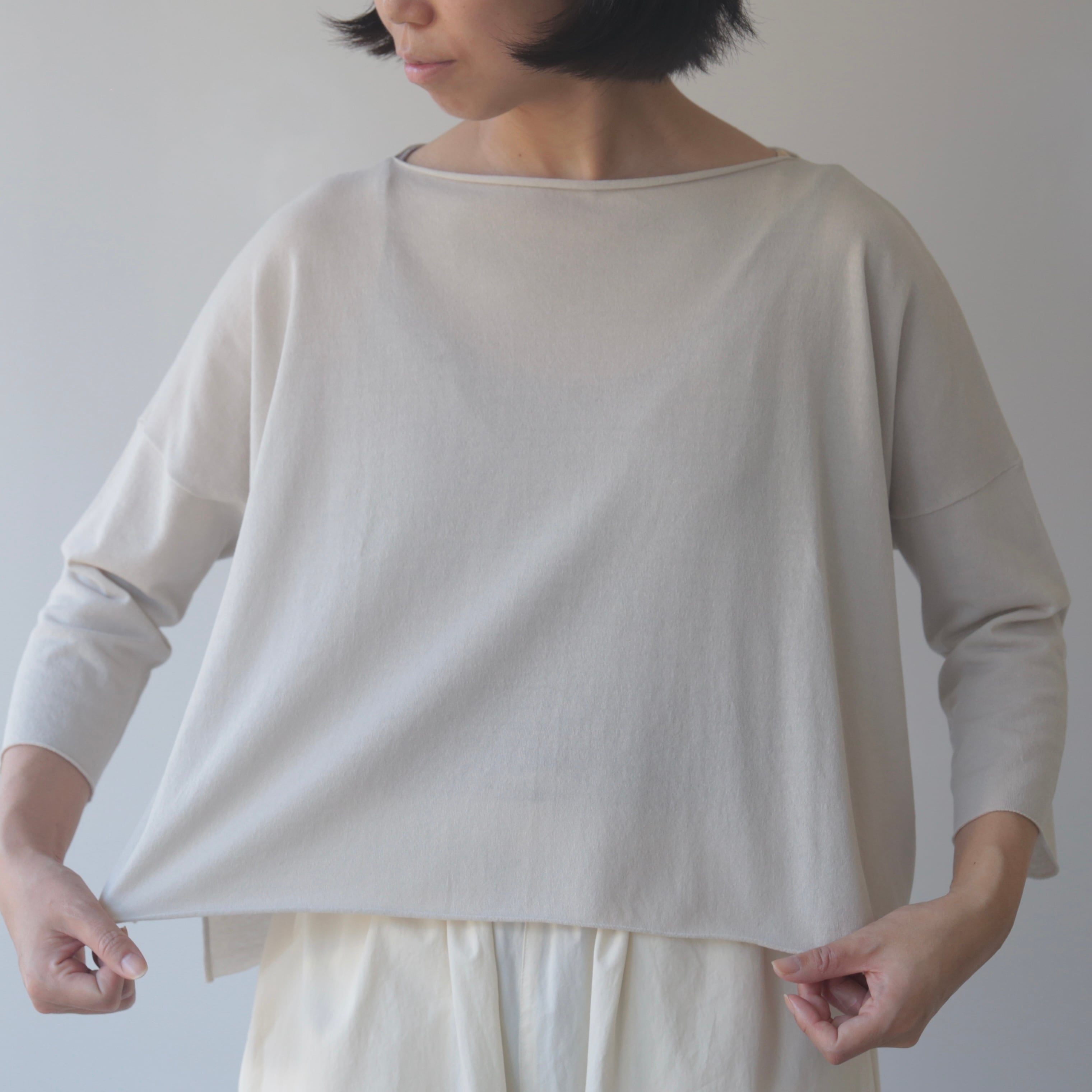 超長綿を使用した薄手のニットは、やさしい肌触りとさらりとした質感。