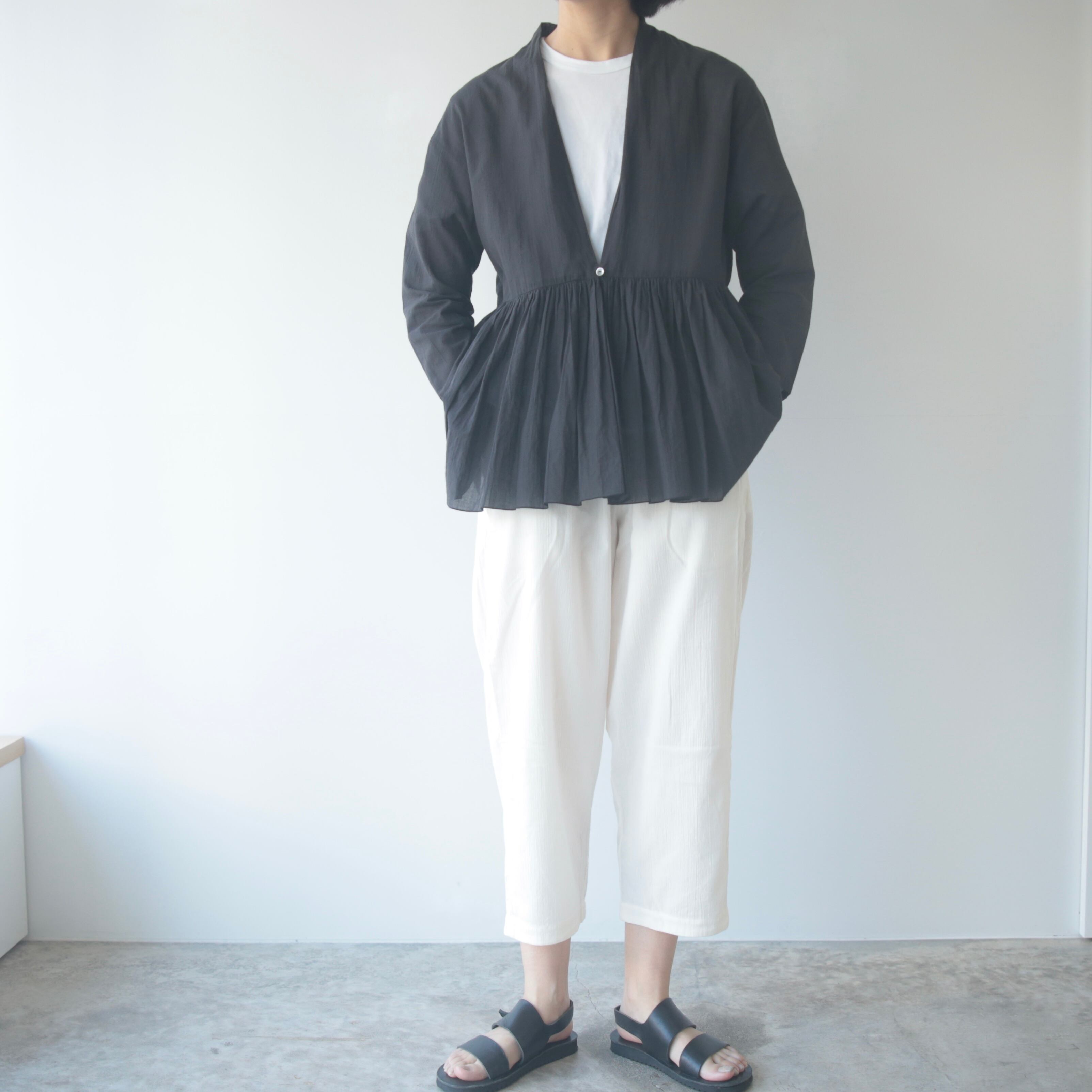足元はサンダルやバレエシューズと合わせて軽やかに。ワンピースやチュニックと重ねてもバランスよくまとまります。