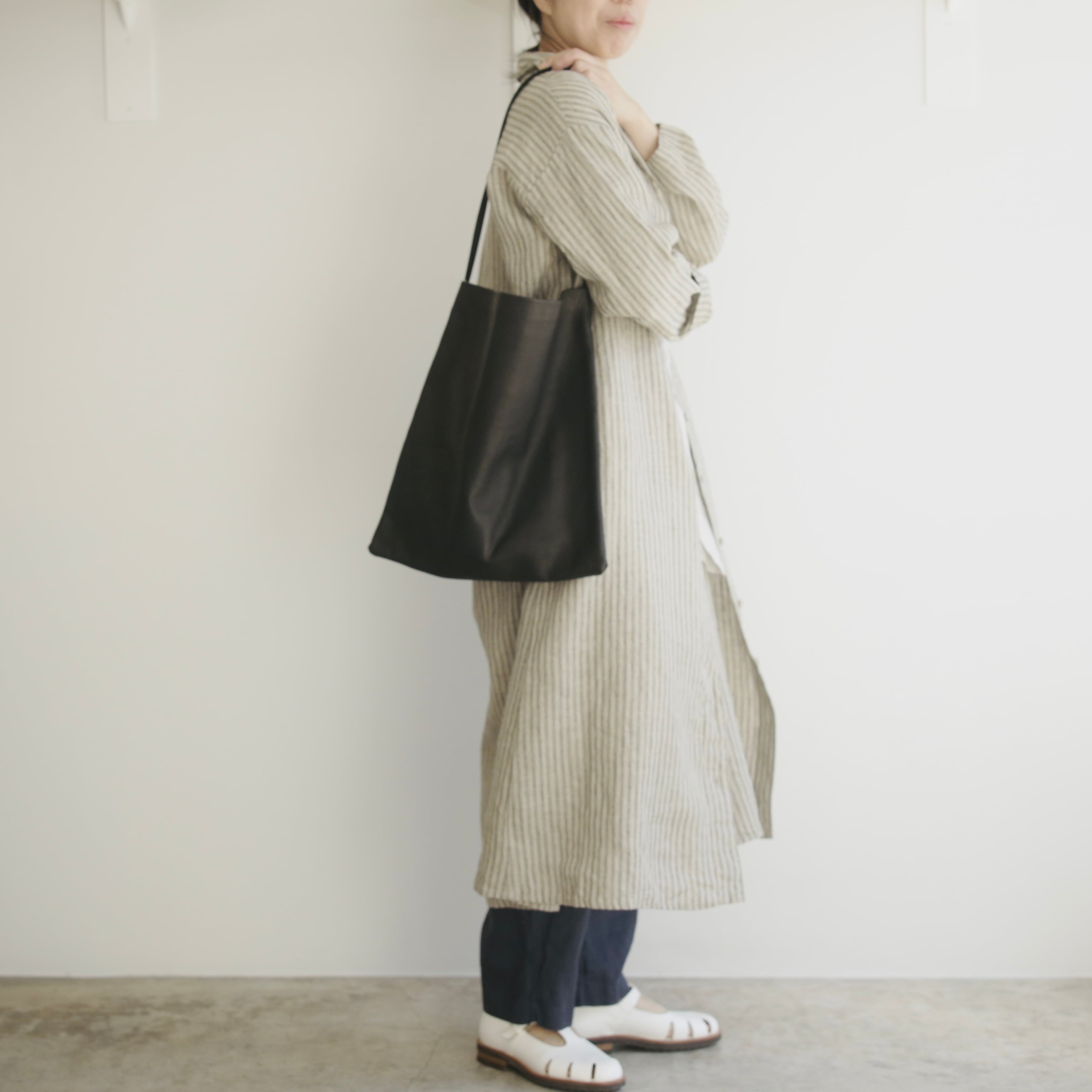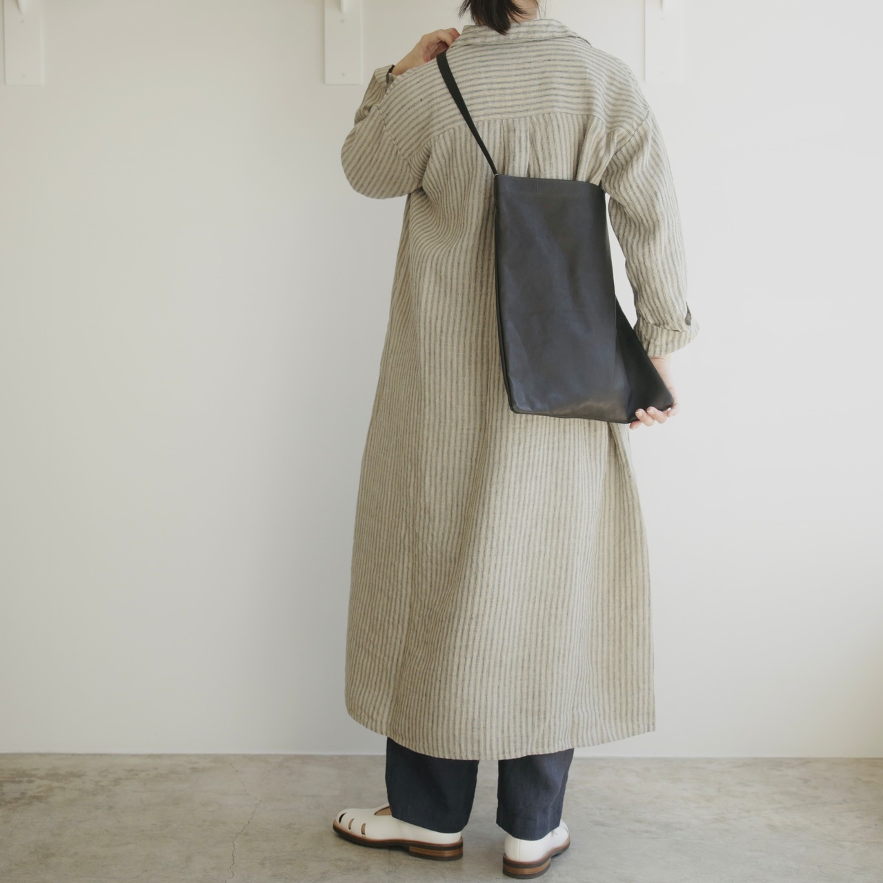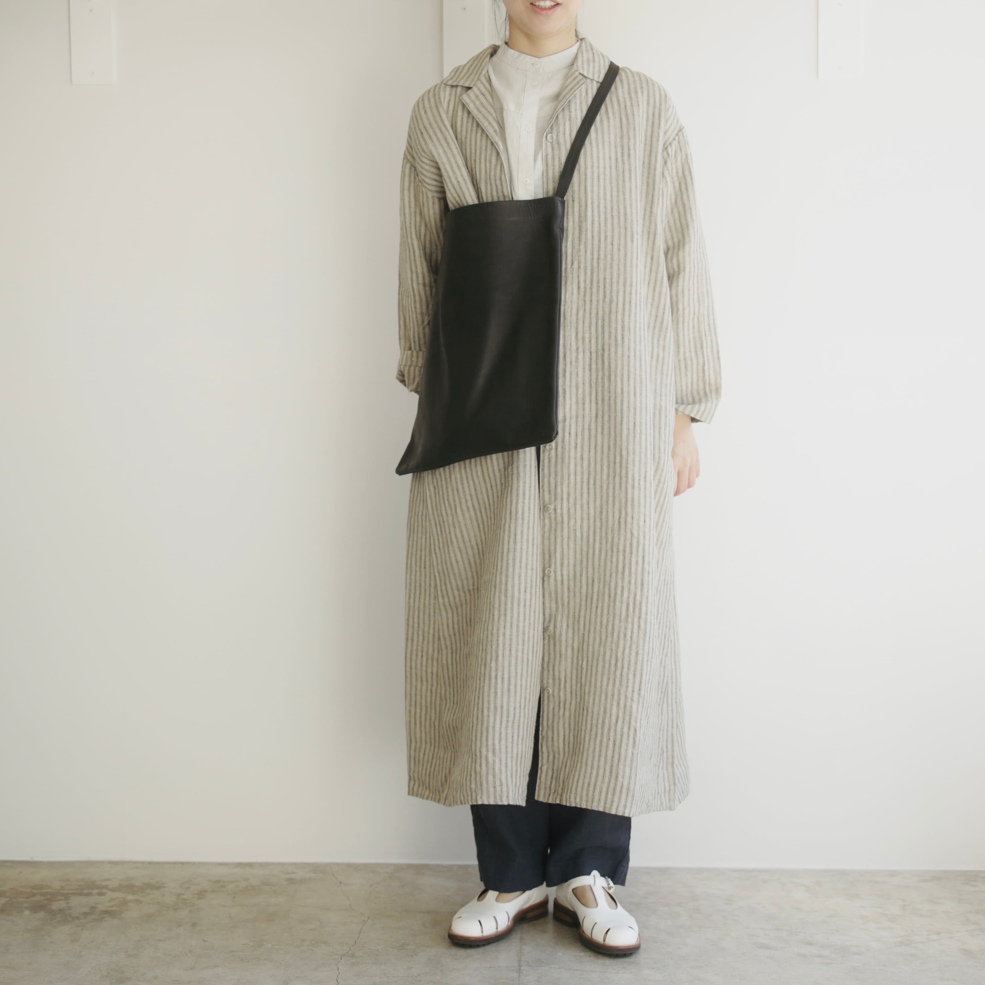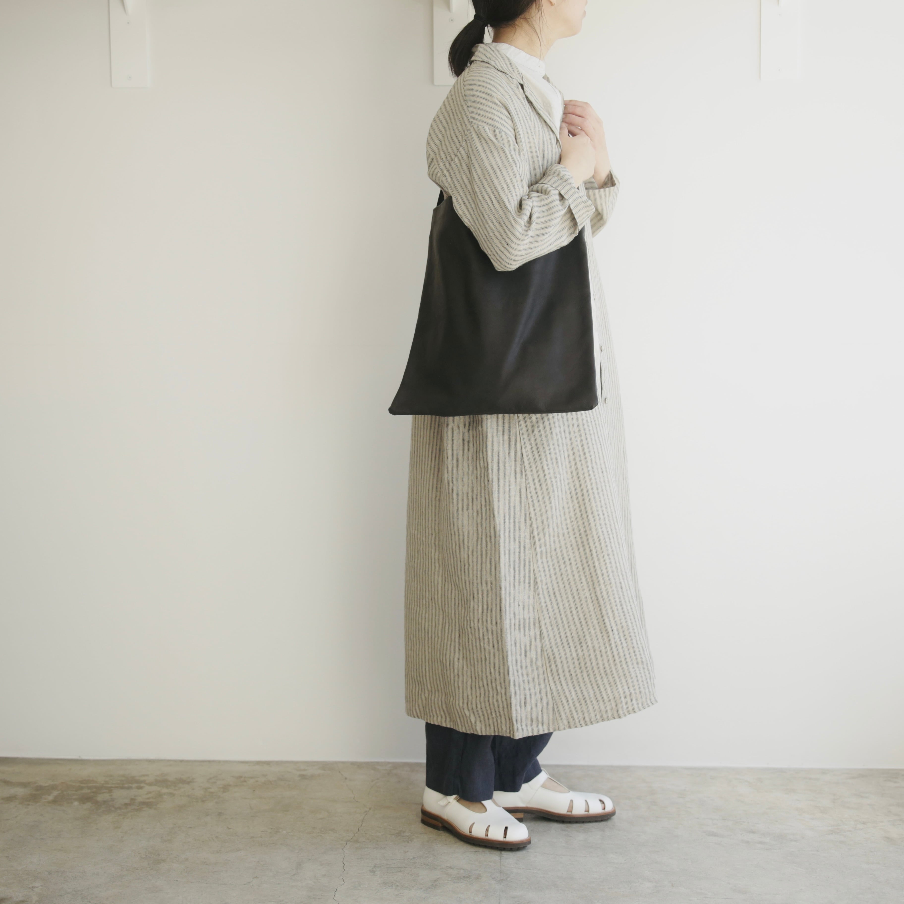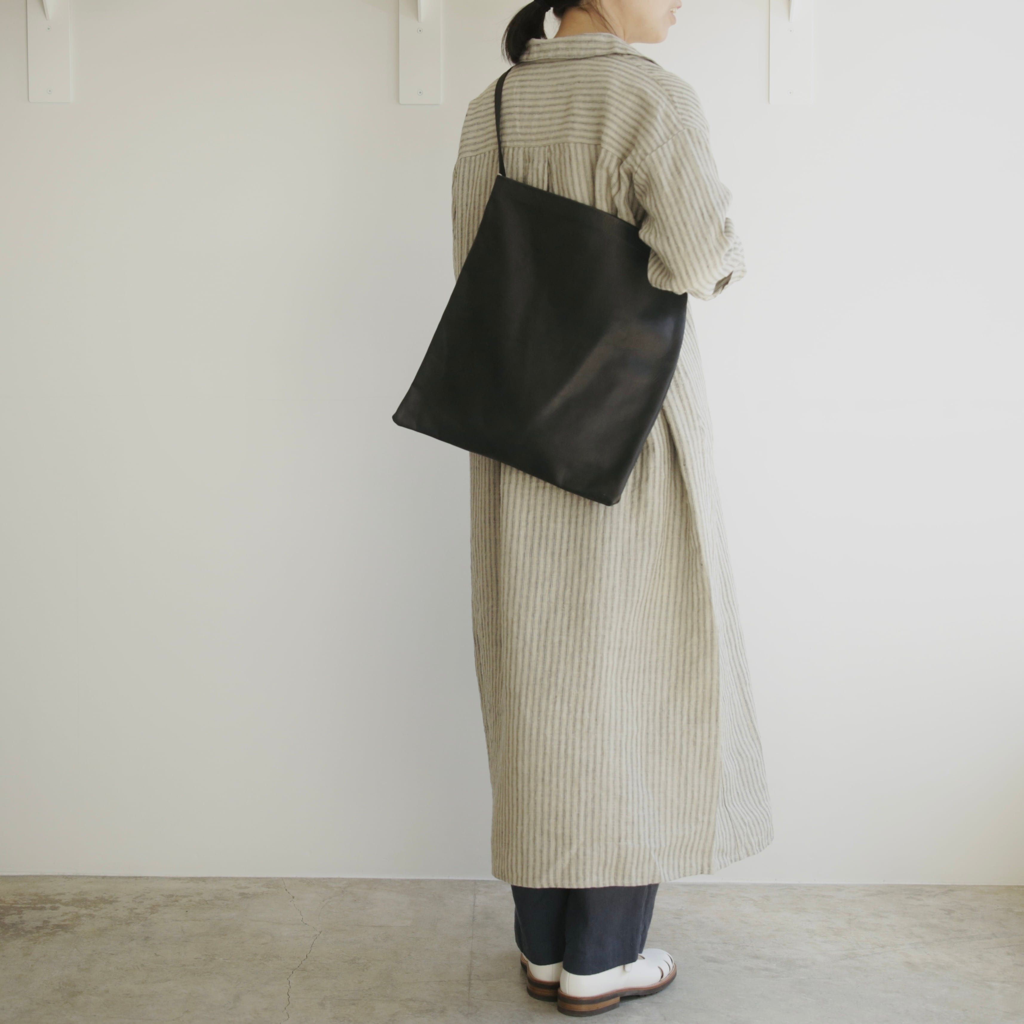 シンプルで使い勝手の良いショルダーバッグですが立体的になるように細く工夫や調整をしているので体に添うシルエットも美しいです。一つ一つ丁寧に縫製され、作られています。