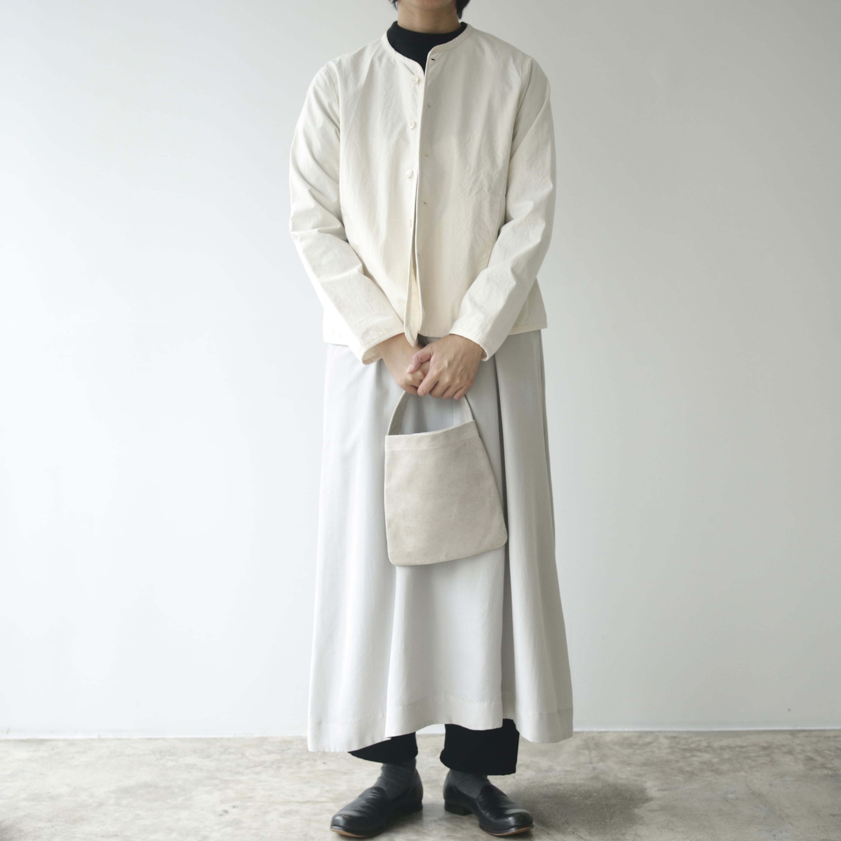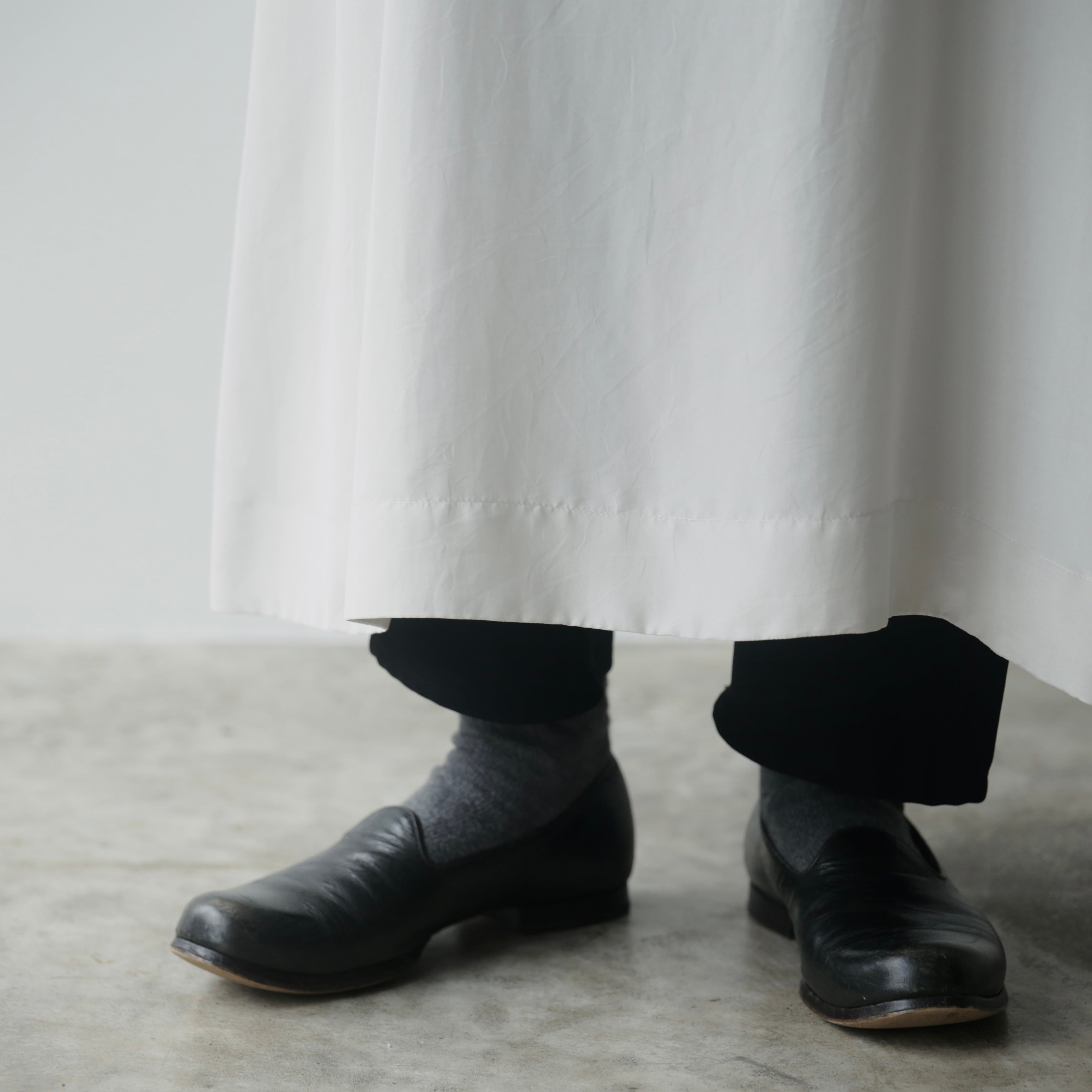 裾にかけてゆるやかに広がるシルエットは、シルクの上品な光沢とともに美しい佇まいを描きます。