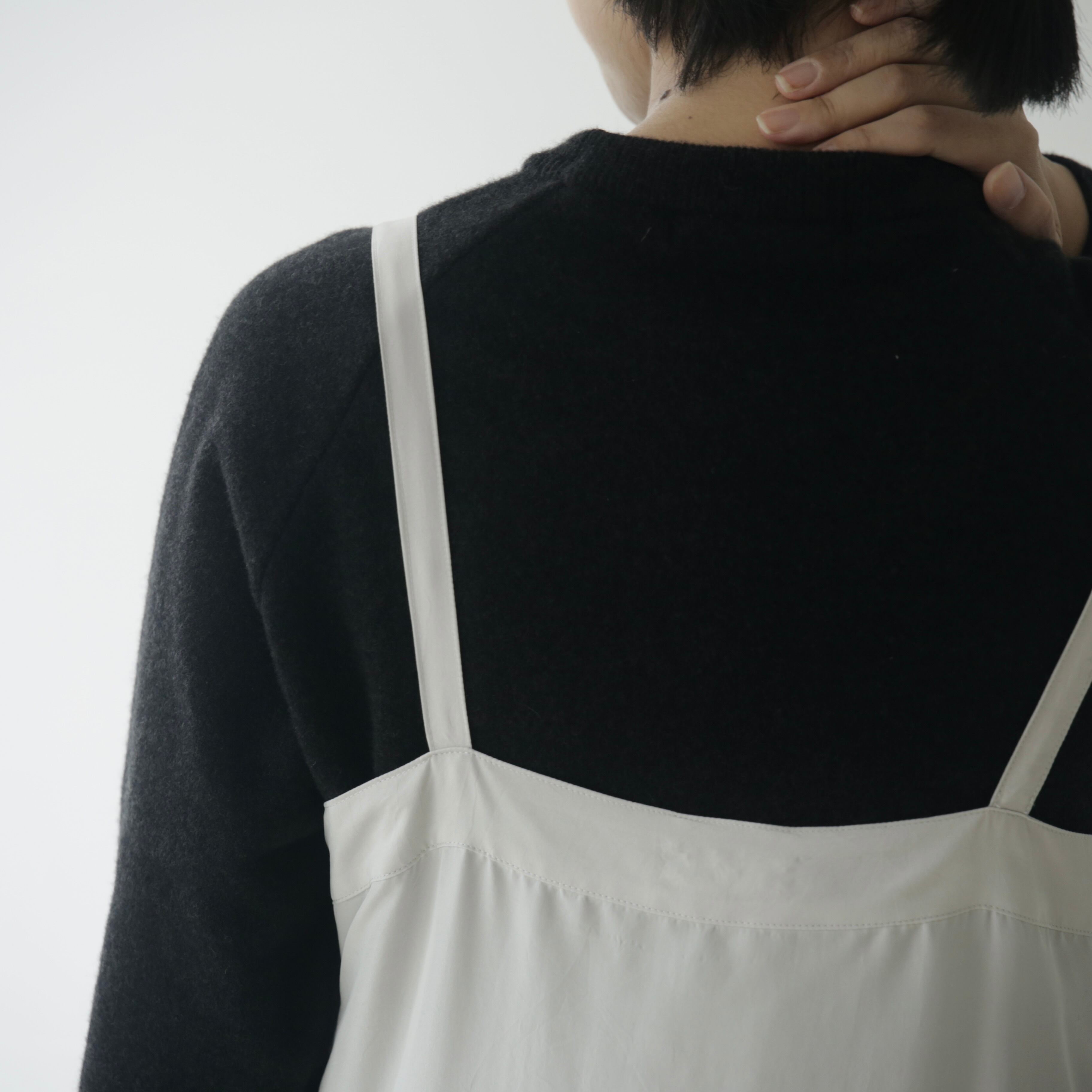 生地に触れるたびに気持ちまでふわりと軽くなるような、シルクならではのやさしい肌触り。繊維の中でもお肌に最も近いとされるシルクは、肌にもやさしく、インナーワンピースとしてもお使いいただけます。