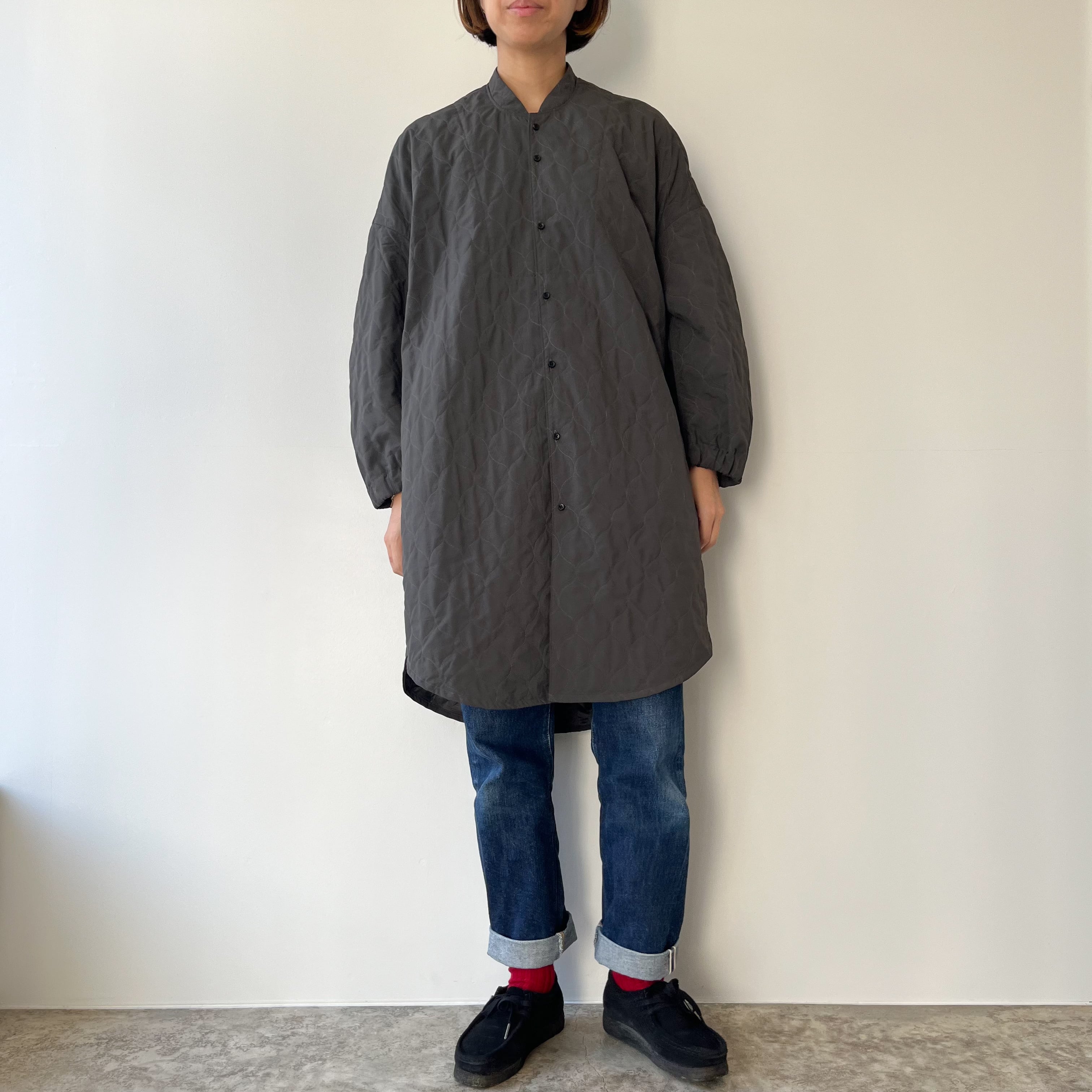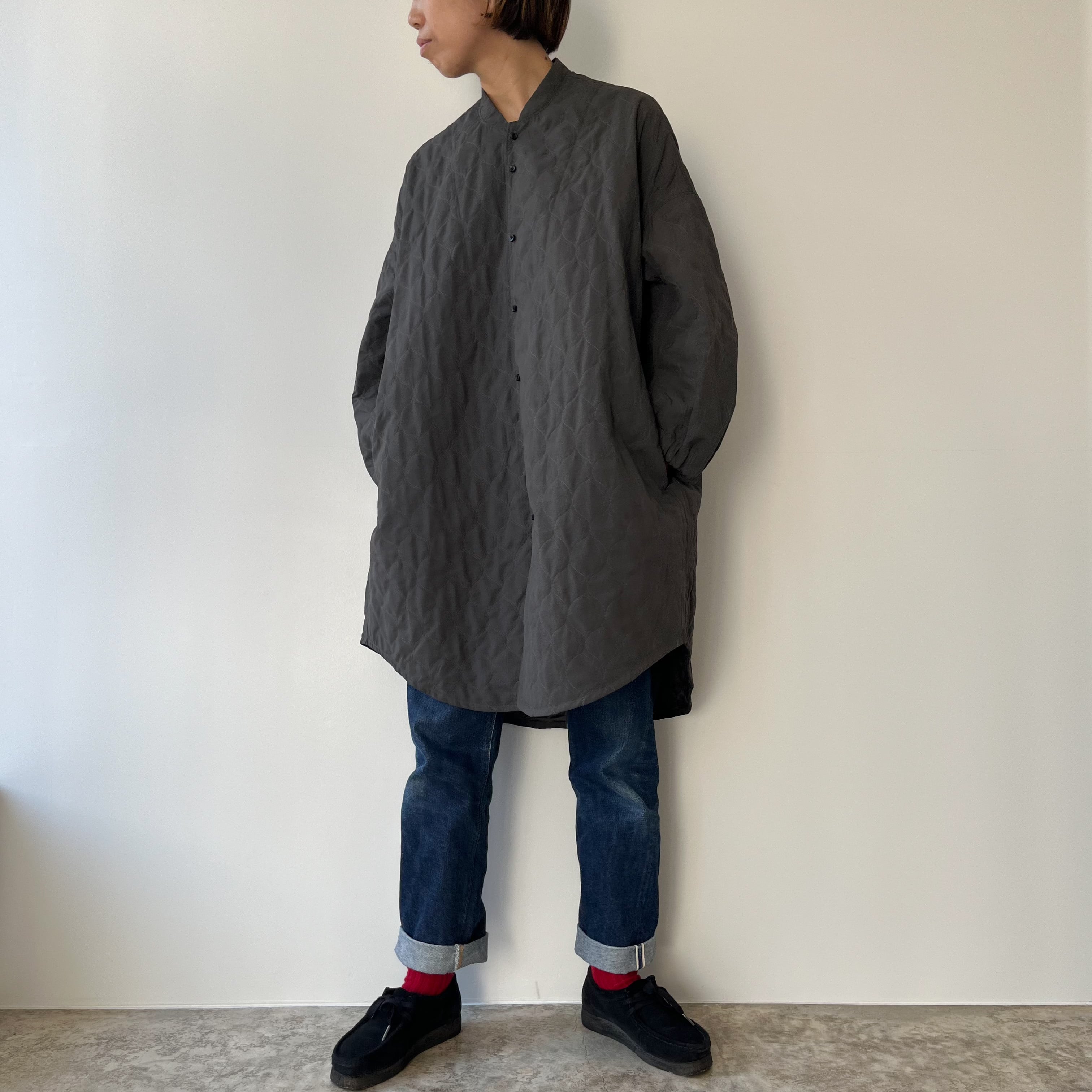 KOMATHERMOを中綿に用いた、軽やかなキルティングシャツコート。見た目はすっきりとシャツの佇まいでも、薄手でありながら高い断熱性と防風性を備え、冬の日常に寄り添う一枚です。KOMATHERMOは一般的な中綿より薄く軽量で、同等以上の保温力を生み出す素材 —— だから重ねても窮屈にならず、着る人の動きを邪魔しません。お家で水洗いができる点も、日常使いの安心感につながります。