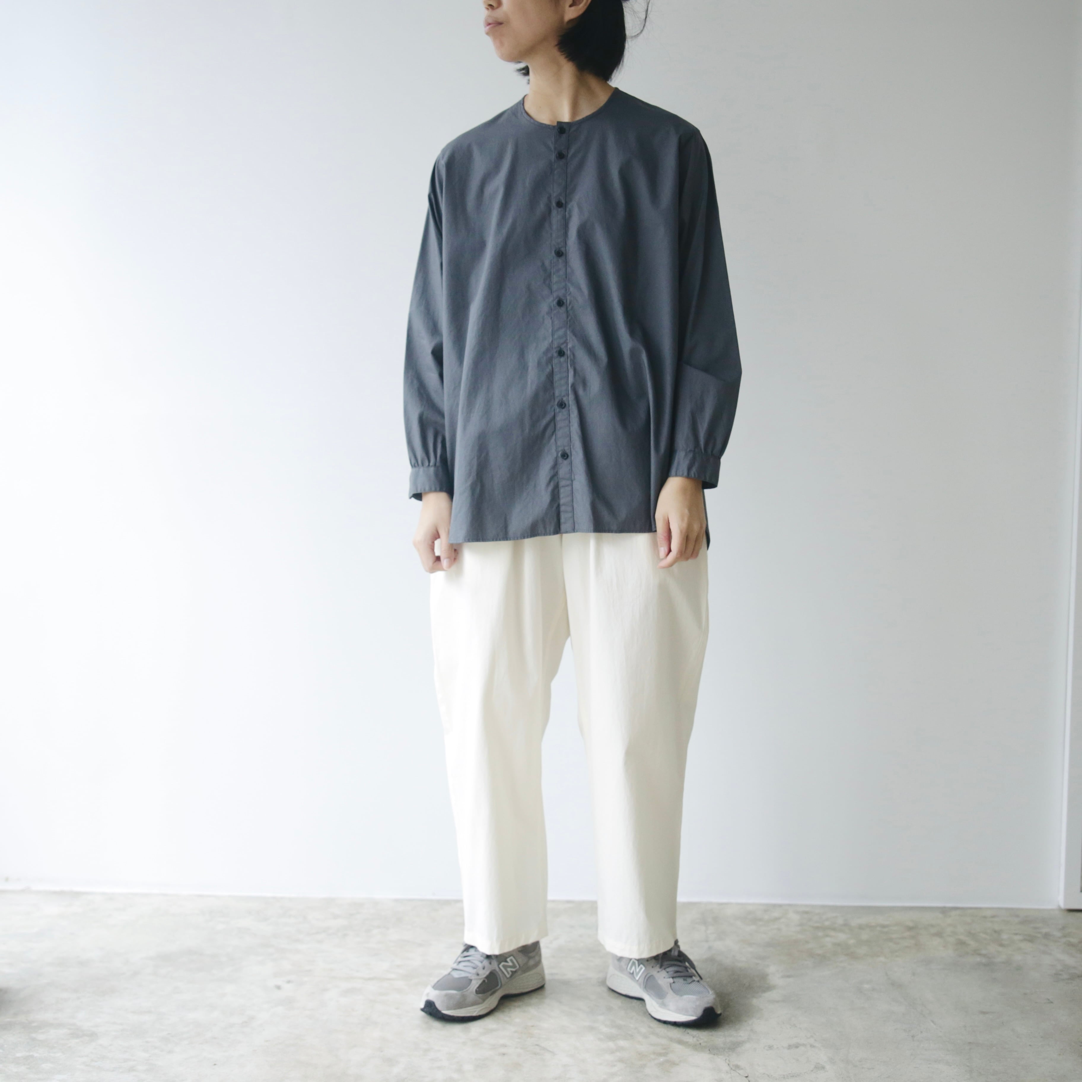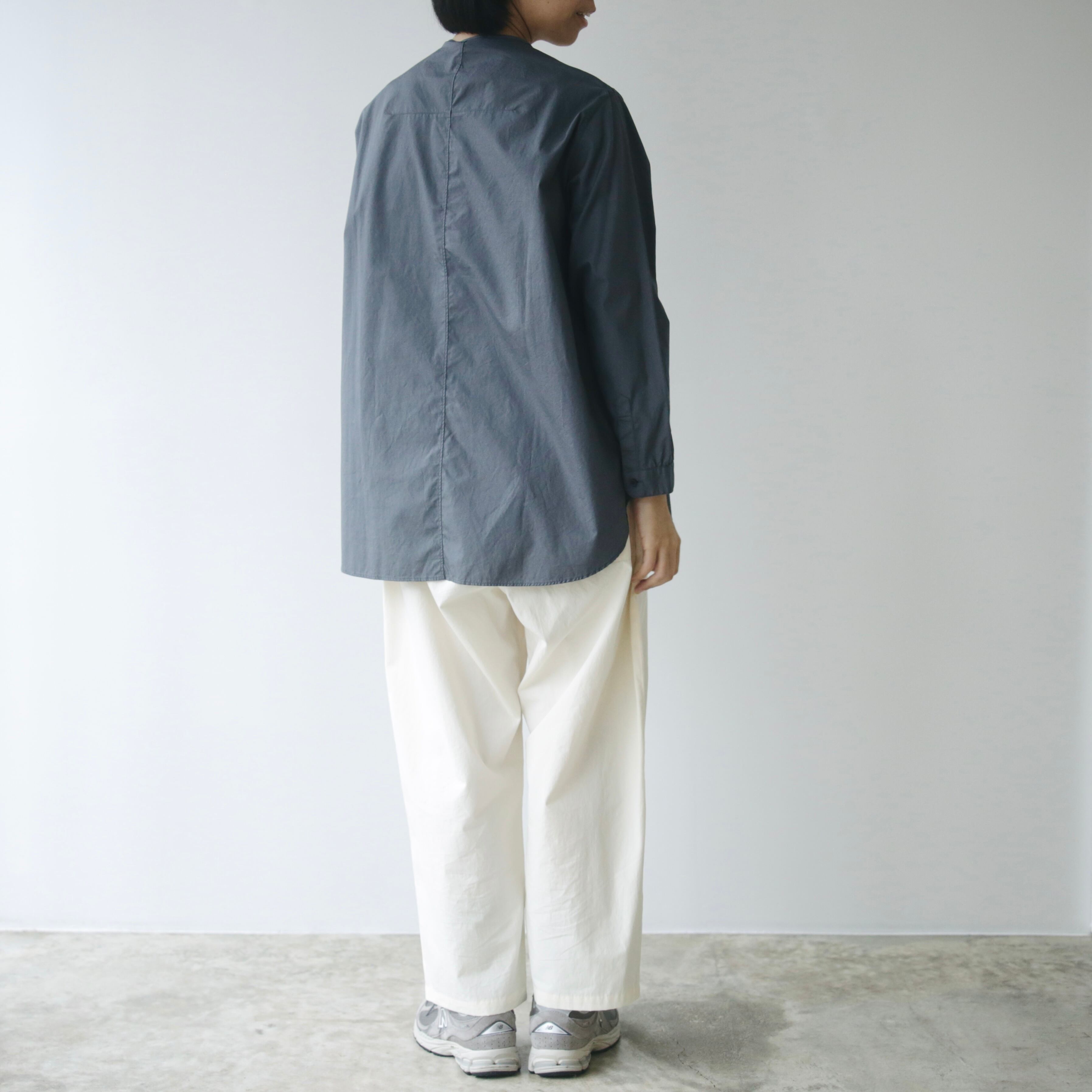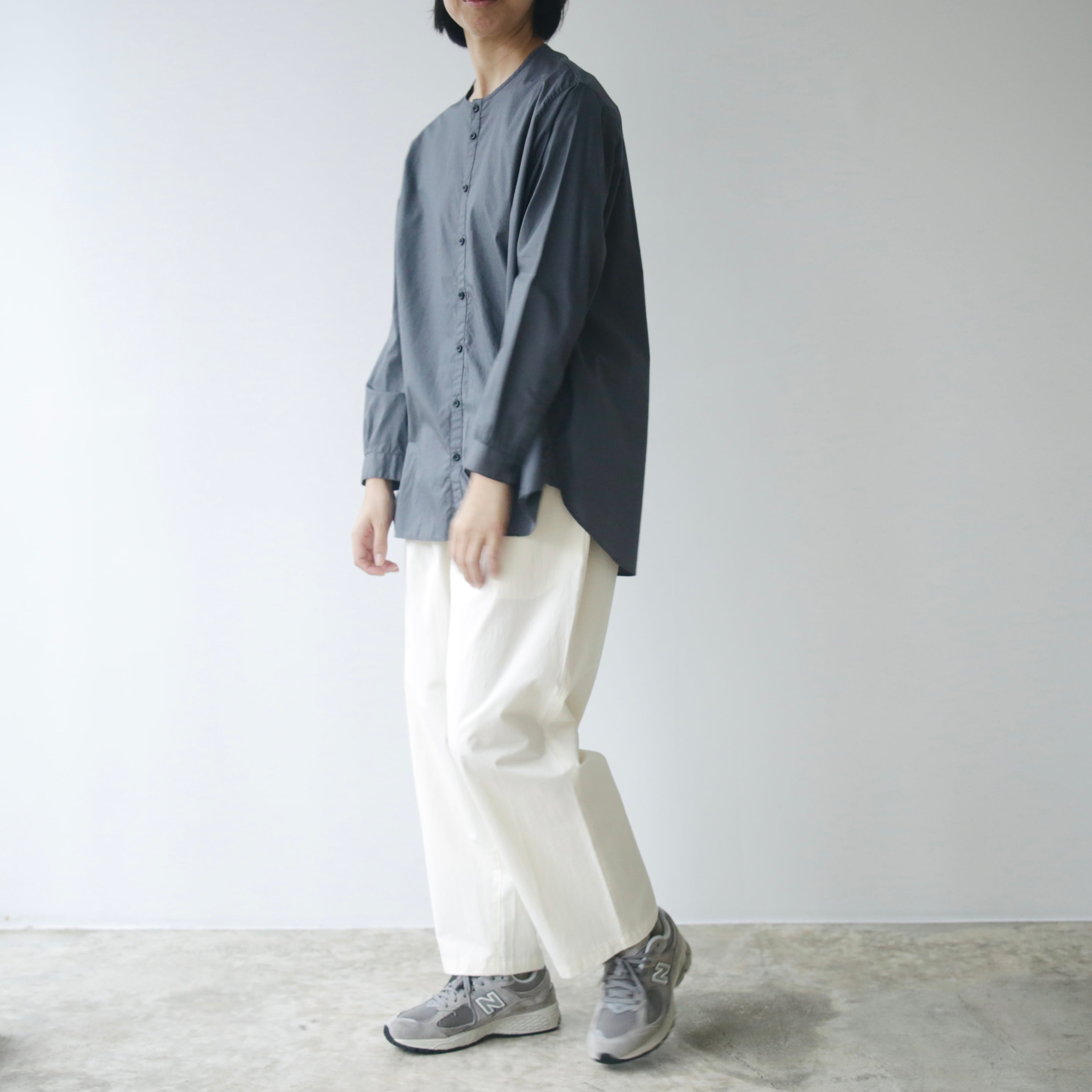 生地にはやや高密度のブロードを使用。滑らかな表面と上品な光沢を持ち、清潔感と使いやすさのバランスに優れた素材です。通年で活躍し、季節の変わり目には一枚で、