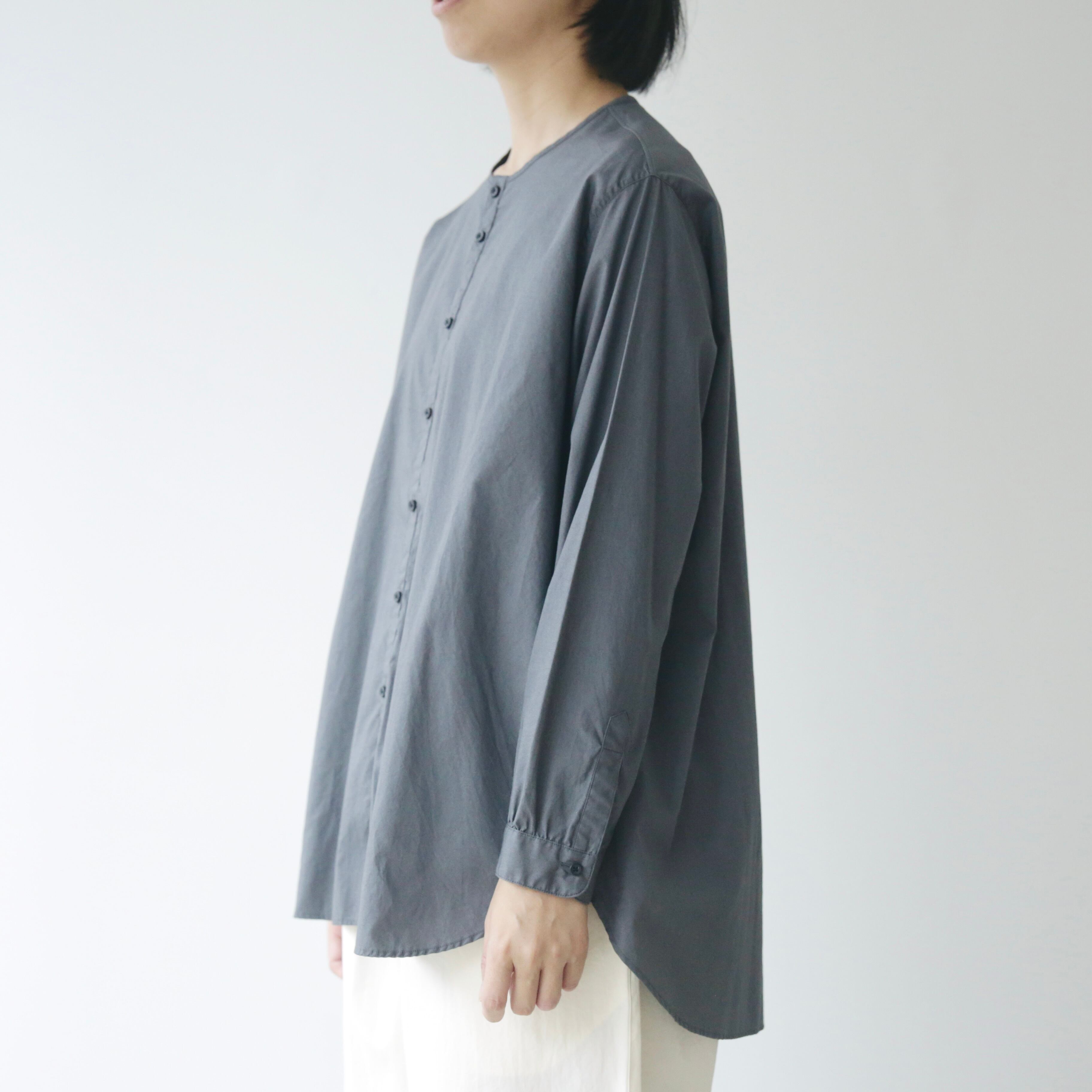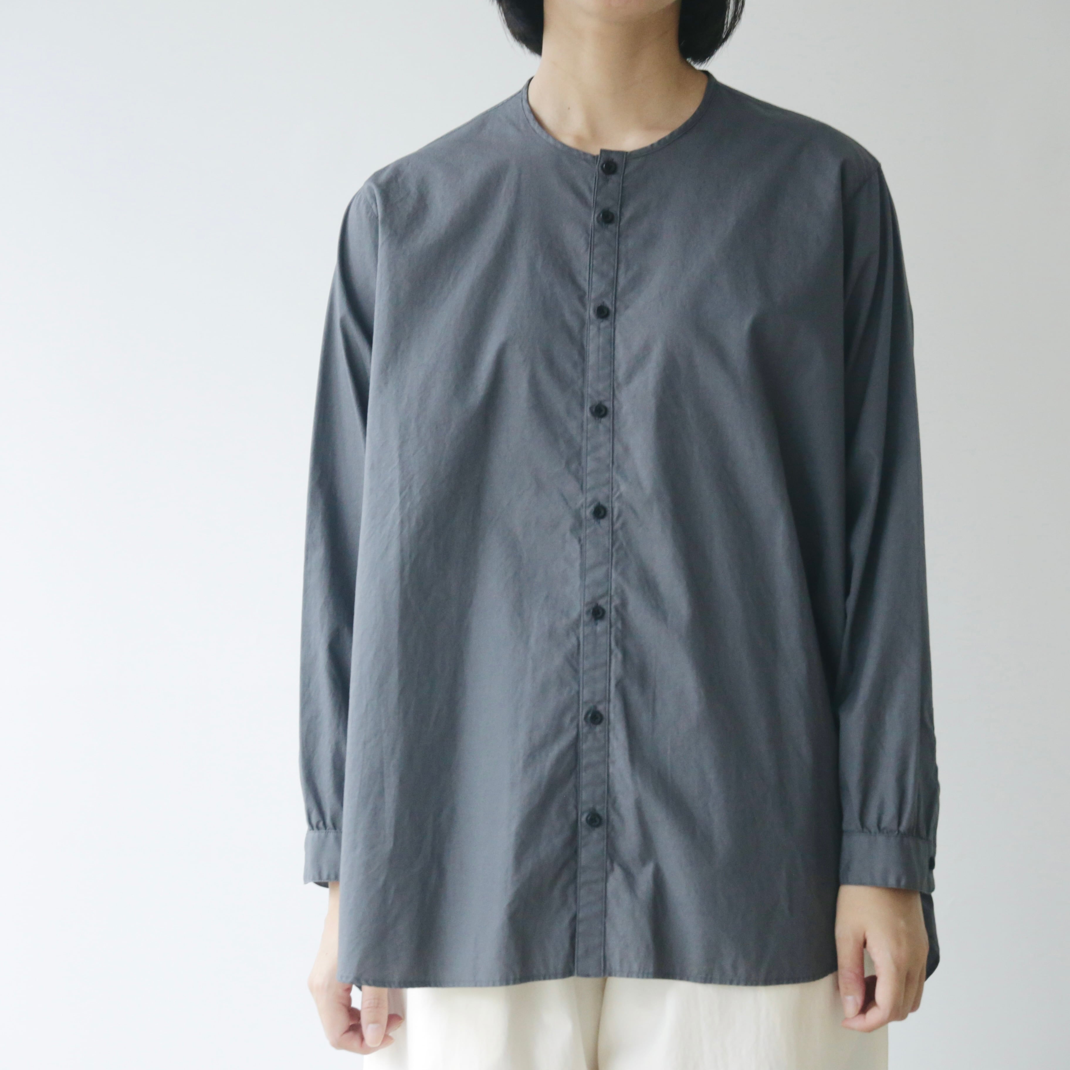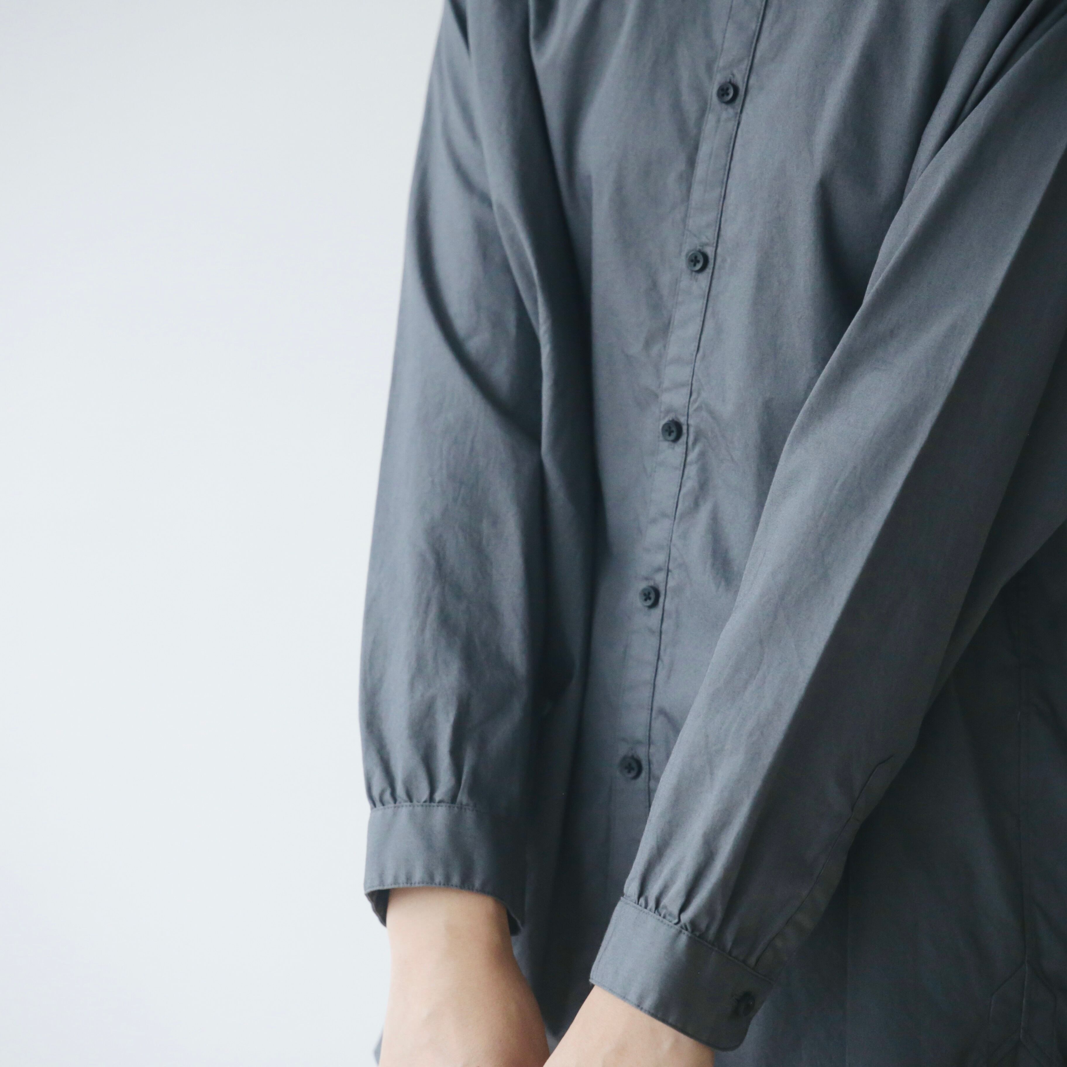 生地にはやや高密度のブロードを使用。滑らかな表面と上品な光沢を持ち、清潔感と使いやすさのバランスに優れた素材です。通年で活躍し、季節の変わり目には一枚で、