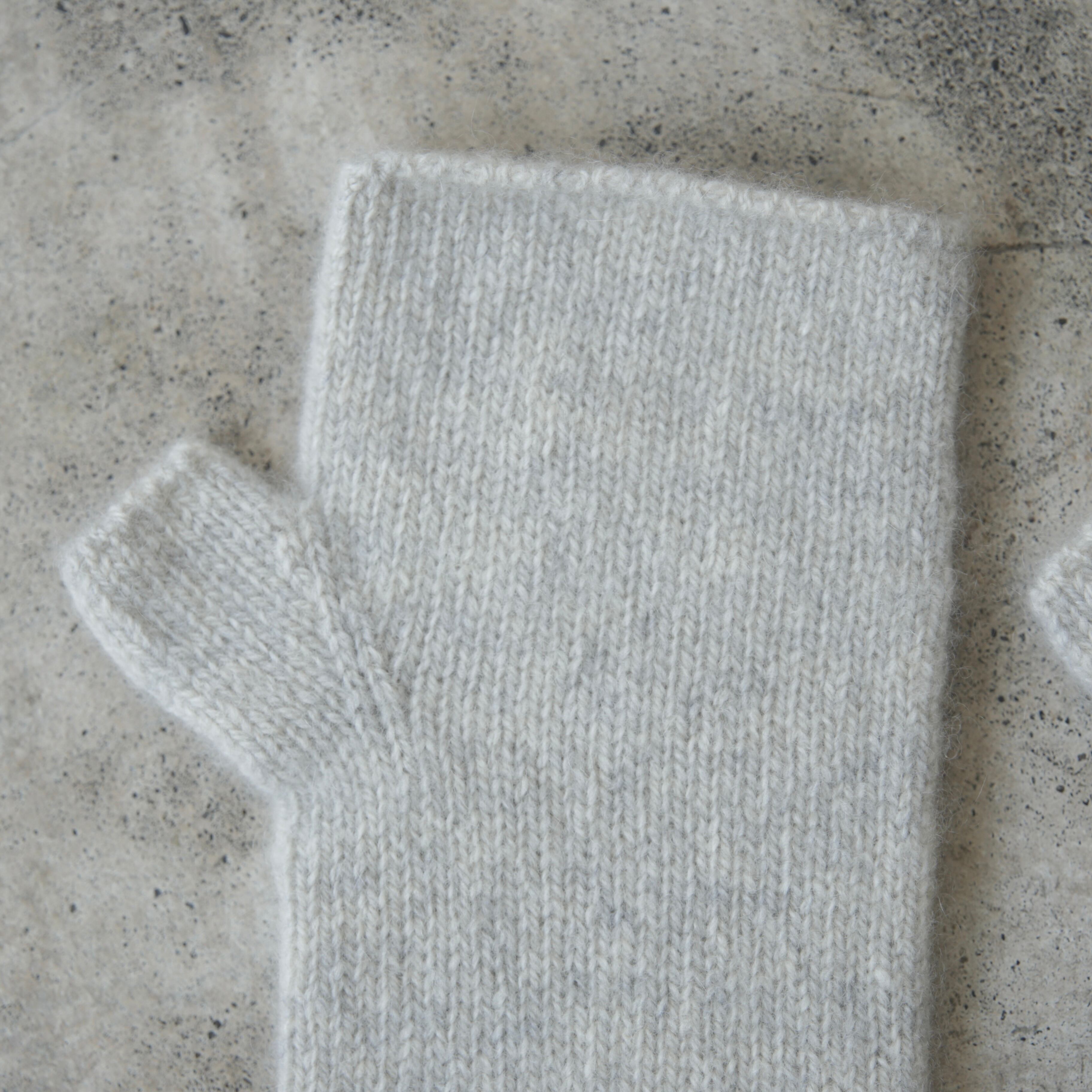 evamevaで定番でお作りしているふんわりとなめらかで柔らかい肌触りのアームウォーマーです。太めのカシミヤ糸を使用しているため程よく厚みもあり冬の寒い季節でも腕をしっかりと温めてくれます。携帯や作業をする方や運転する方は指が出せるアームウォーマータイプがお勧めです。
