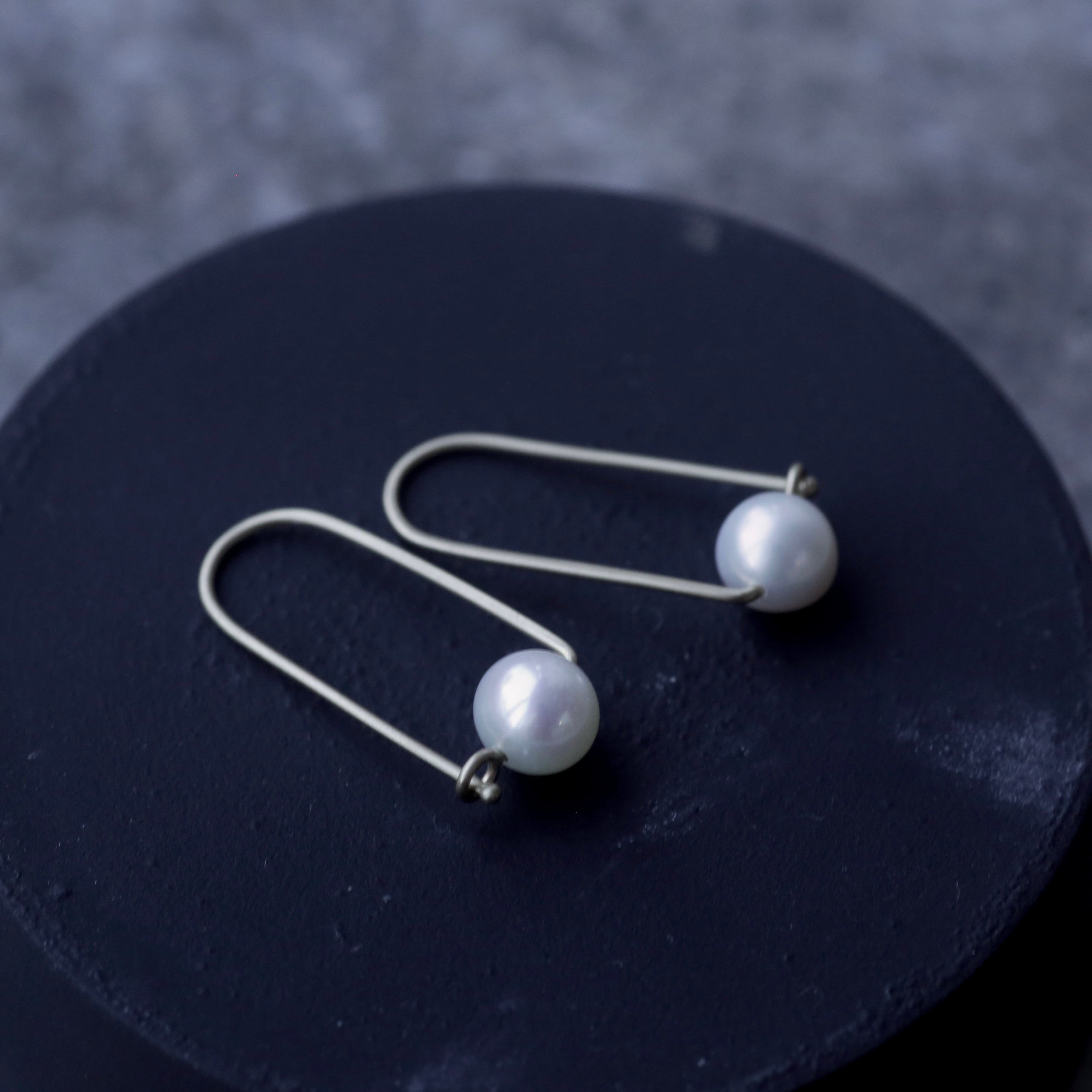 緩やかなカーブを描くデザインは、まるでブランコのようにパールを揺らし、顔まわりに優しい動きを添えてくれます。クラシックな素材ながらも、フックタイプとは異なる遊び心のあるシルエットが魅力。