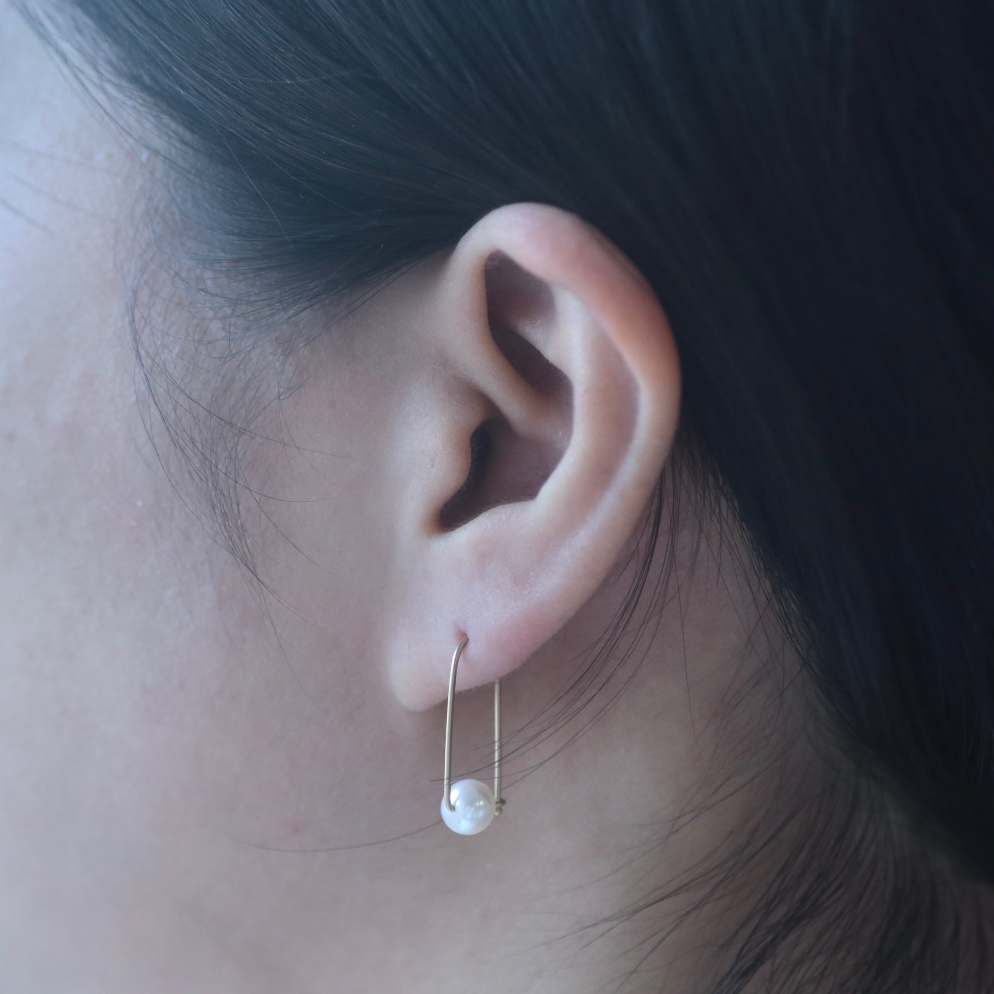 マットな14Kゴールドのワイヤーに、一粒のパールをあしらったシンプルで柔らかな印象のピアスです。