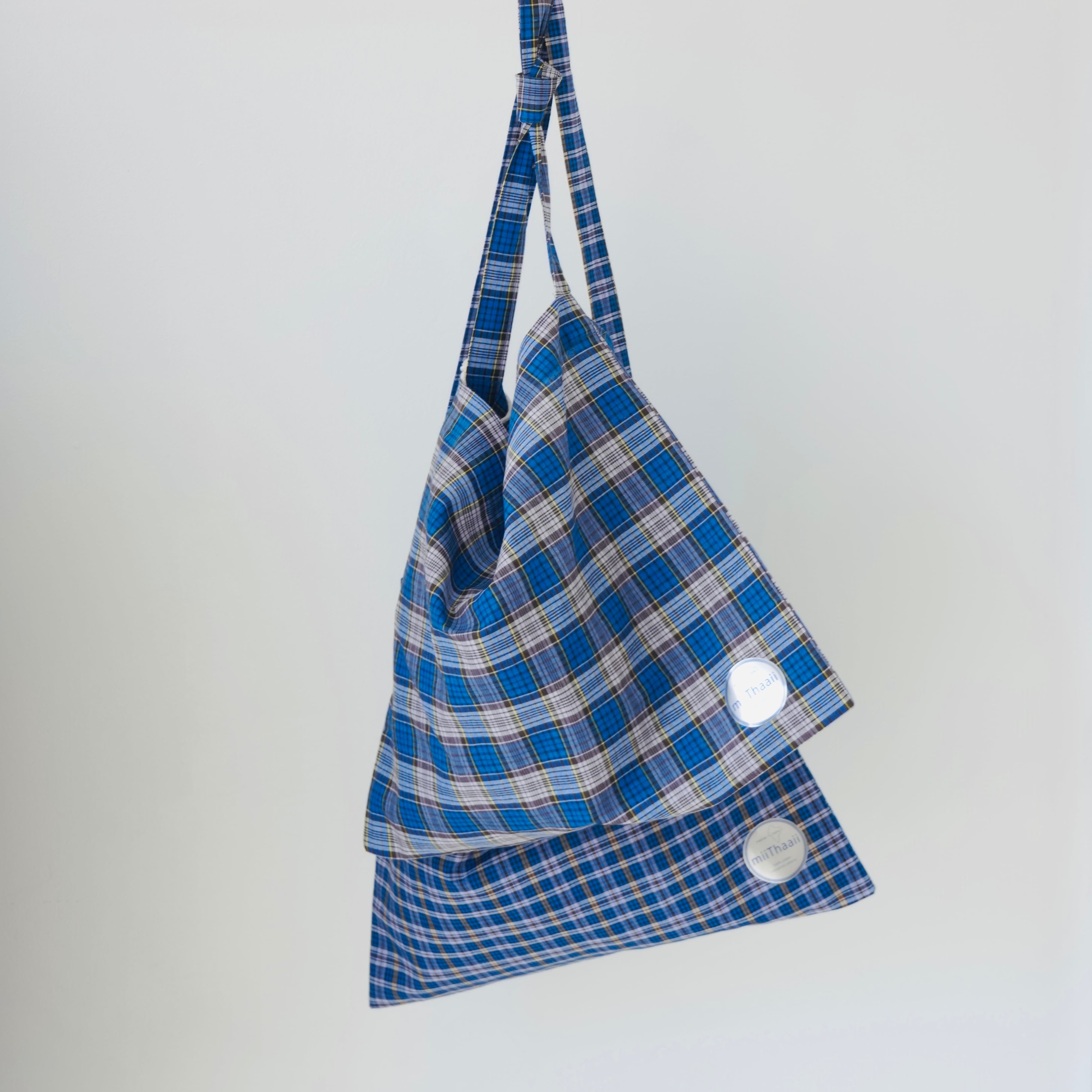 インドの伝統衣装「ルンギ」に使われるマドラスチェック生地で、 一点一点丁寧に仕立てられたバッグです。肩掛けや斜め掛け、持ち手を結んで短く持つなど、シーンに合わせてアレンジできます。