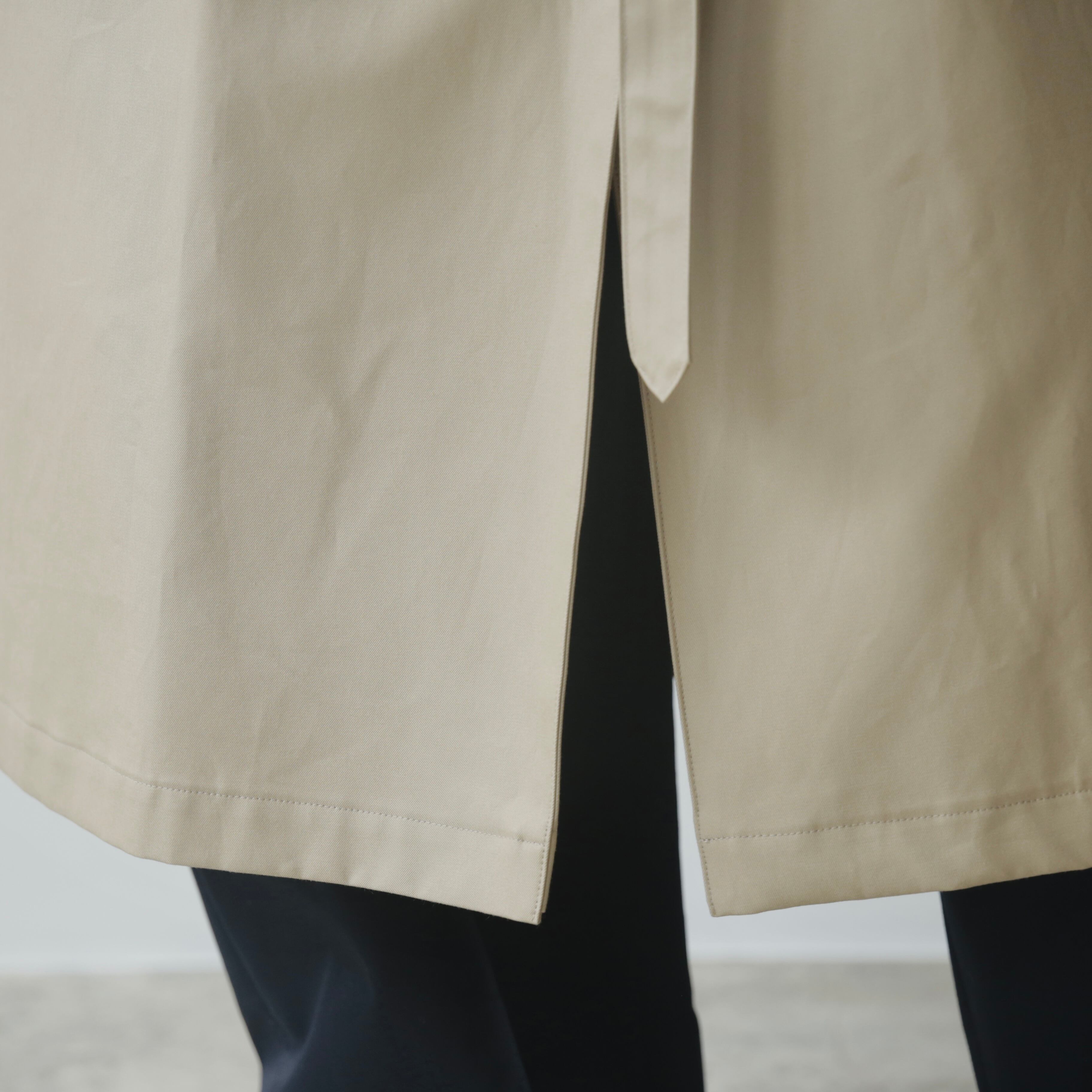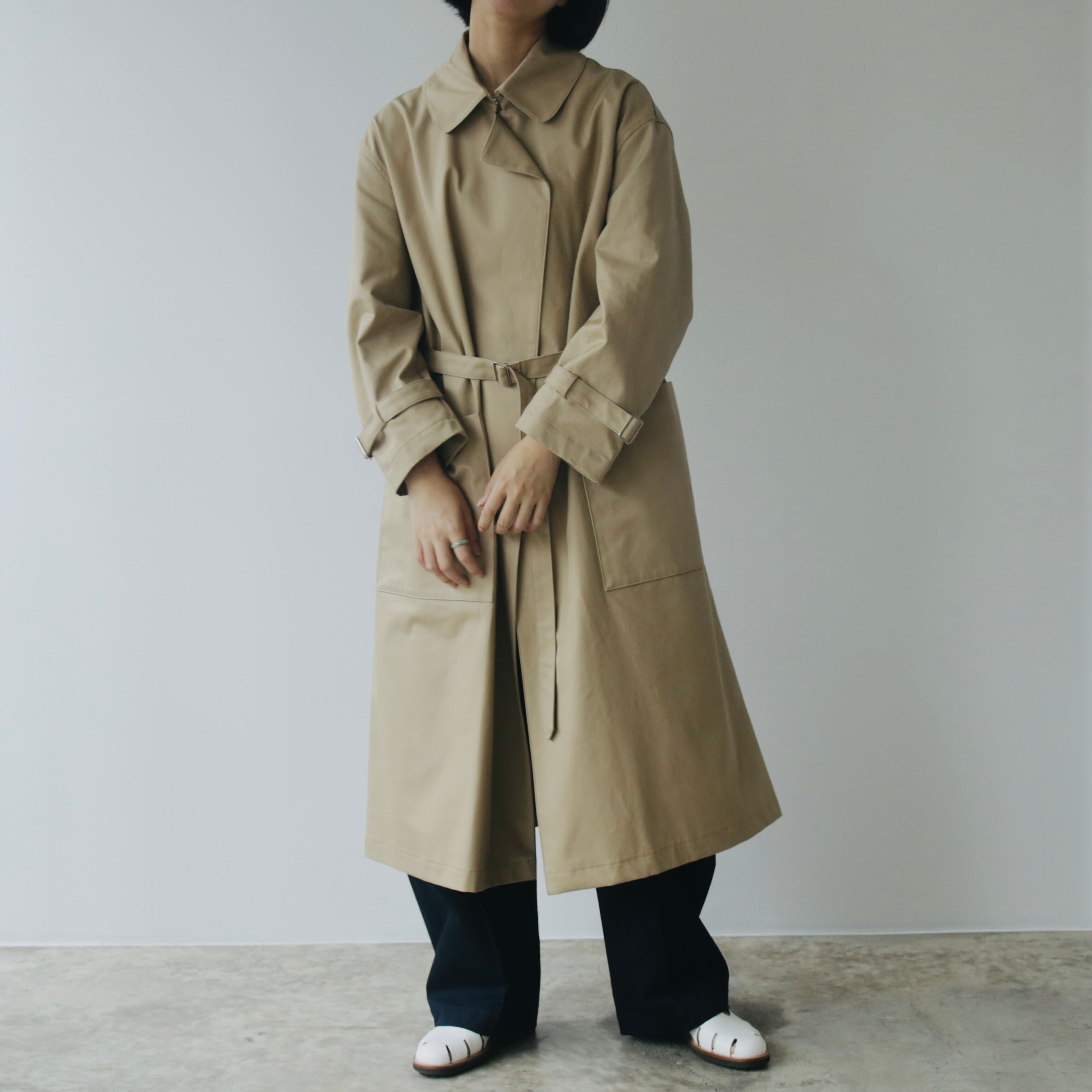 端正なトレンチコートの佇まいに、大きめの襟やポケットが加わることで、ブランドらしさが光るトレンチコート。ボタンレスのシンプルなデザインで、ウエストベルトを通すだけの仕立られています。きゅっと絞ってギャザーを寄せれば愛らしく、襟元を大きく開けばクールな印象に。着こなし方で、さまざまな表情を楽しめます。